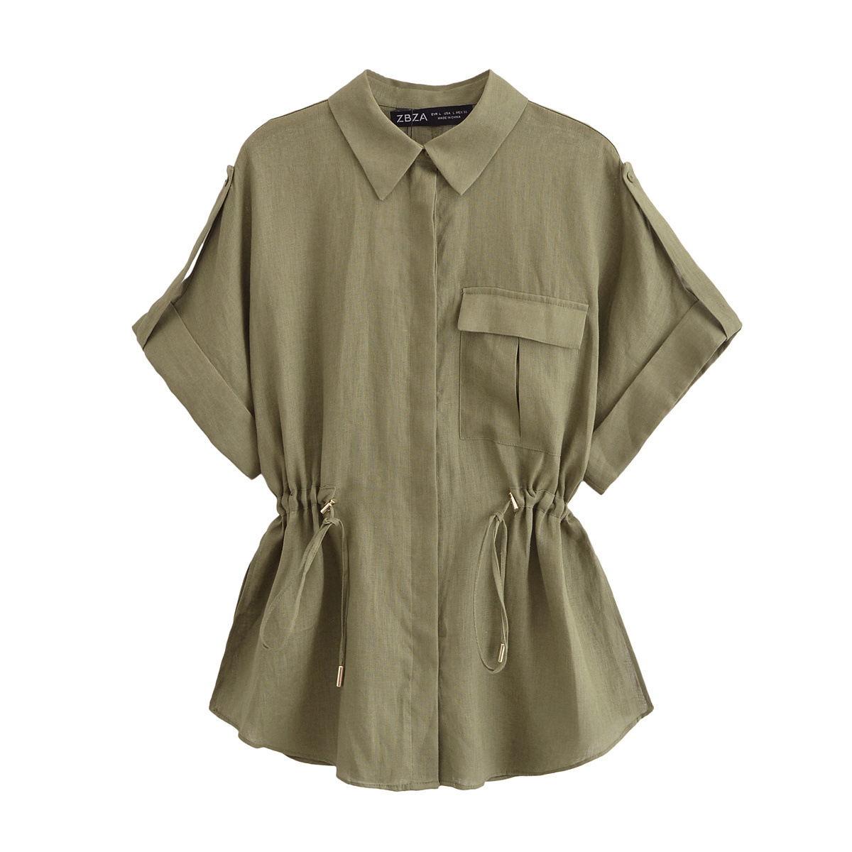 UC & ZA 유럽과 미국의 국경 간 AliExpress 여름 여성복 디자인 센스 드로우 스트링 짧은 소매 작업복 리넨 셔츠 3436707