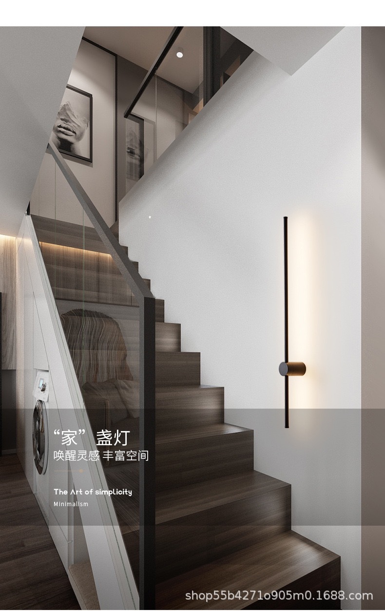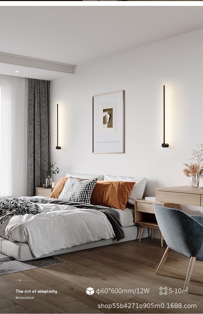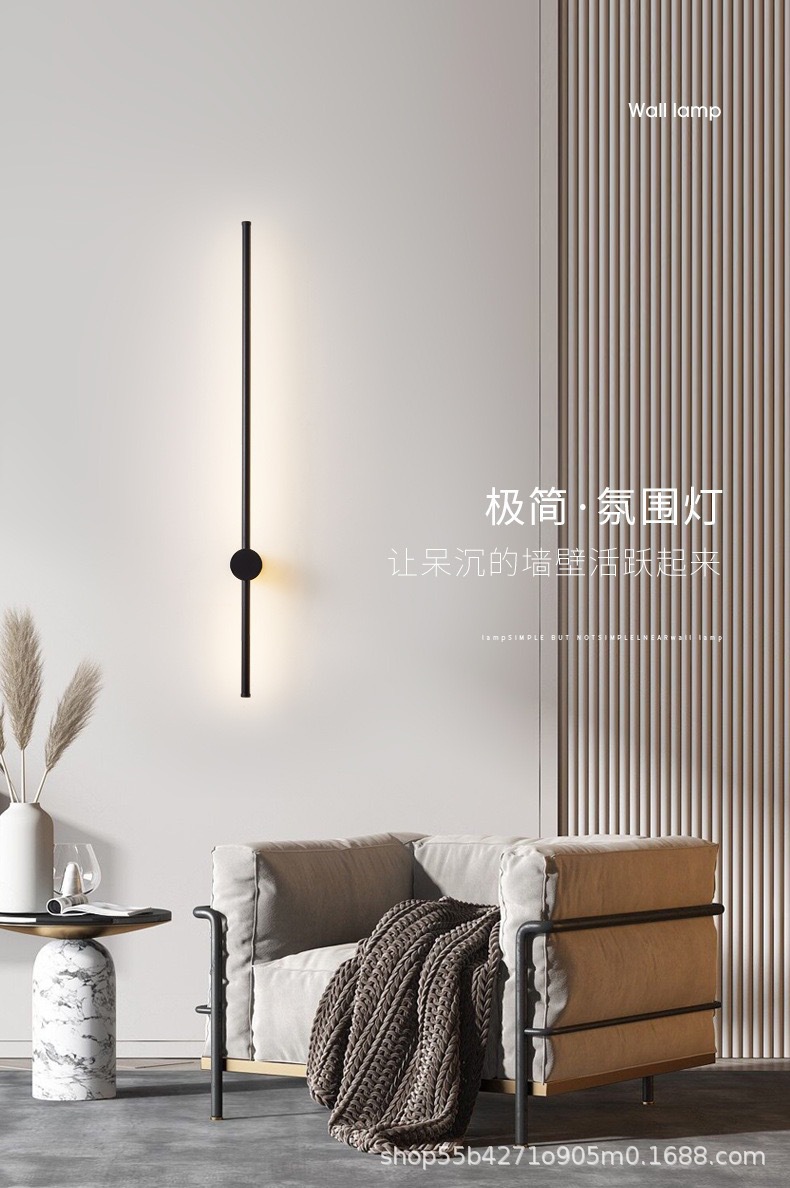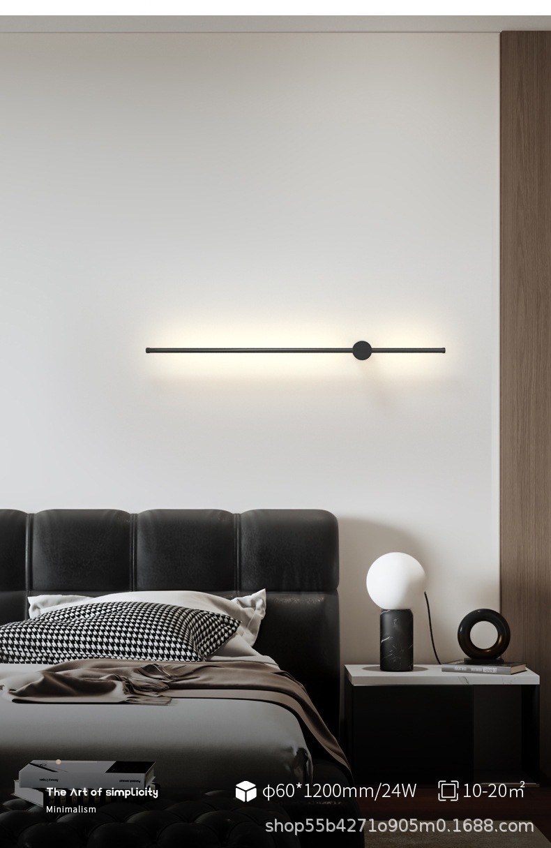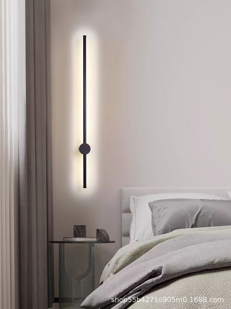 침실 한 단어 라인 벽 램프 실내 간단한 긴 벽 램프 침실 빛 고급 거실 그릴 배경 벽 대기 램프