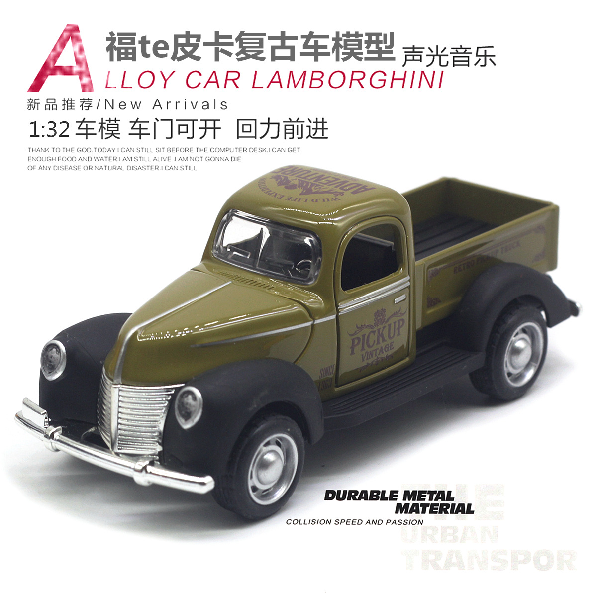 【商品名称】1:32福te 3号皮卡老爷车合金仿真模型(2开门带声光)