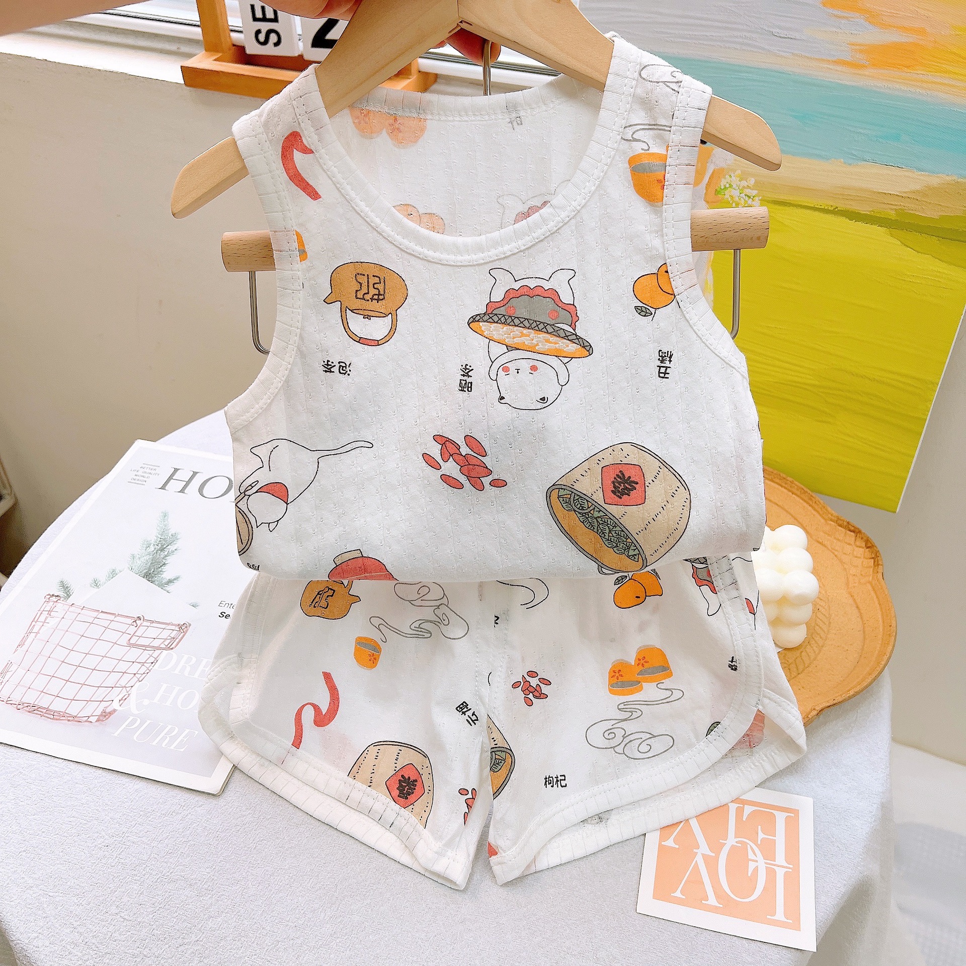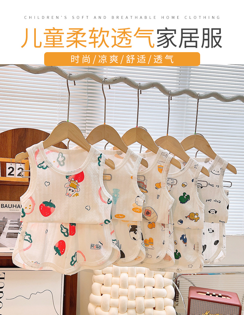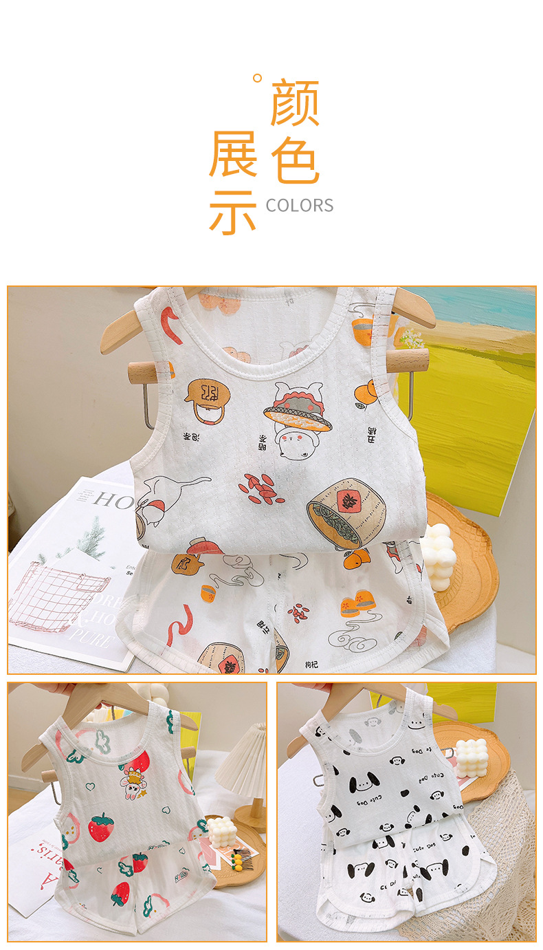 어린이 조끼 세트 여름 얇은 면화 자카드 정장 소년과 소녀 새로운 클래스 A 스포츠 정장 도매스토어 가기