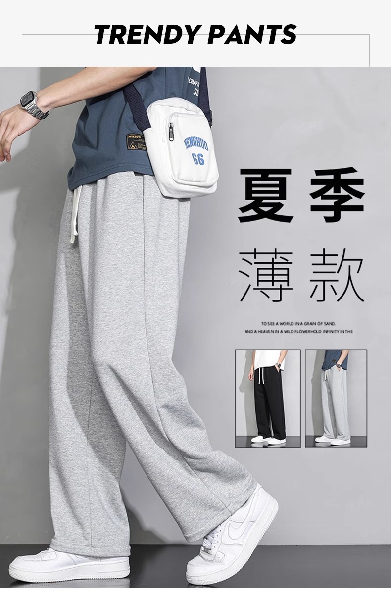그레이 스웨트 팬츠 남자 여름 얇은 스트레이트 루즈 올 매치 더깅 와이드 레그 스포츠 바지 소년 캐주얼 롱 바지
