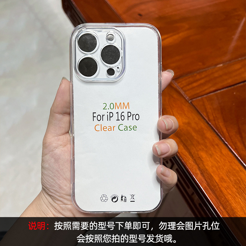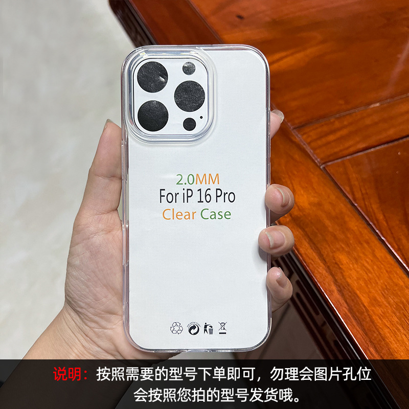2.0 iphone16 휴대 전화 케이스에 적합한 두꺼운 투명 쉘 17 큰 구멍 apple 15 실리콘 14 보호 커버 7 도매