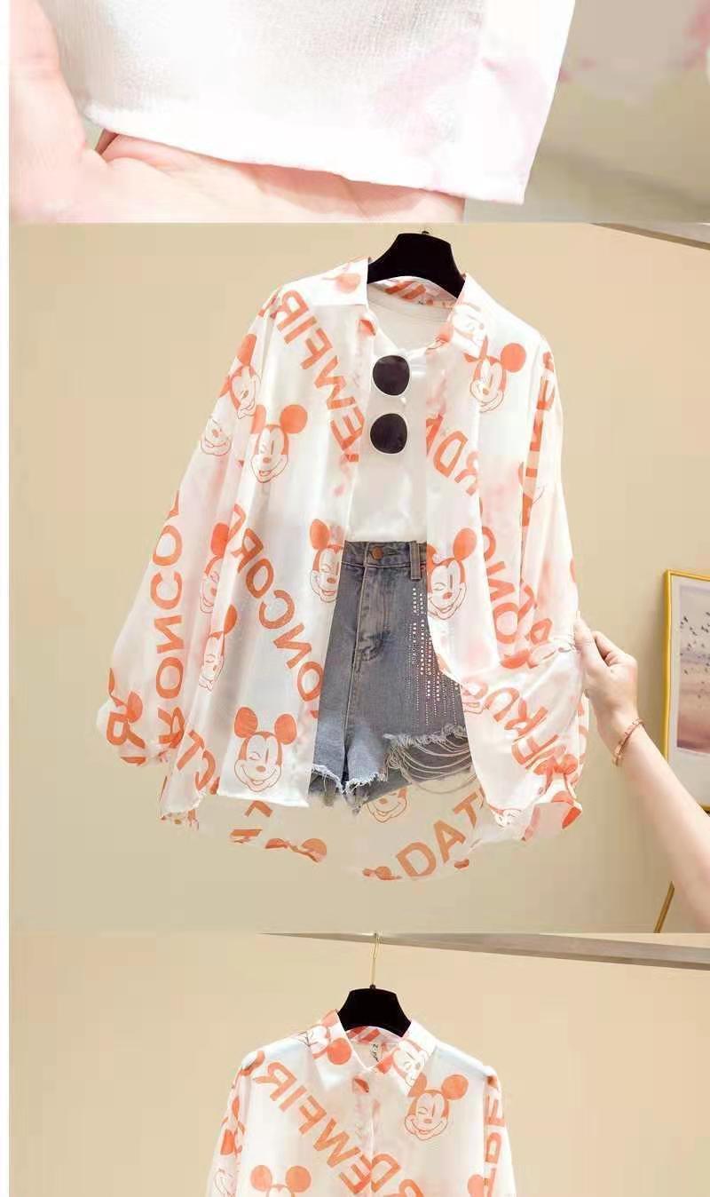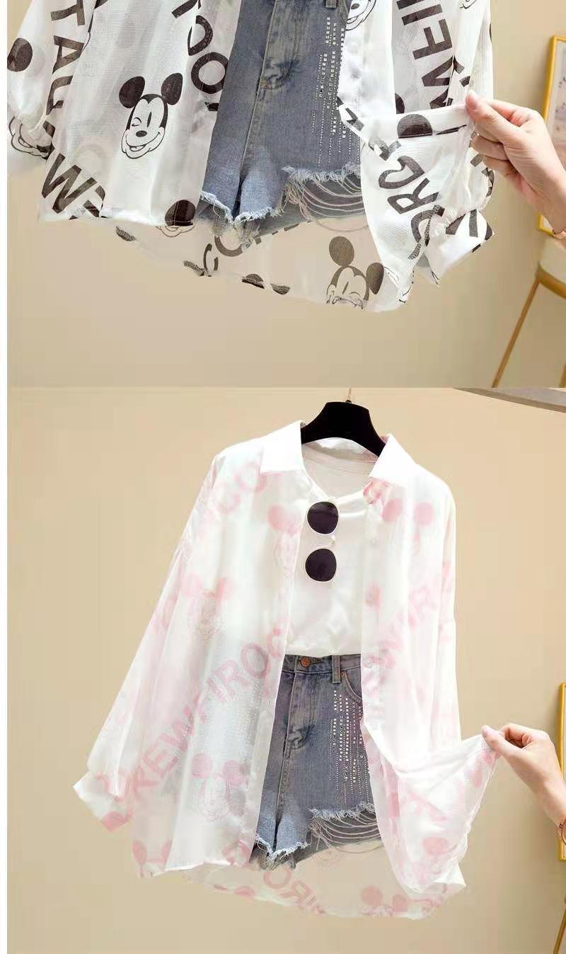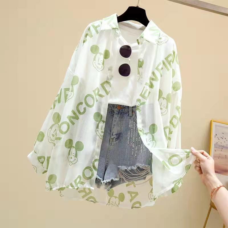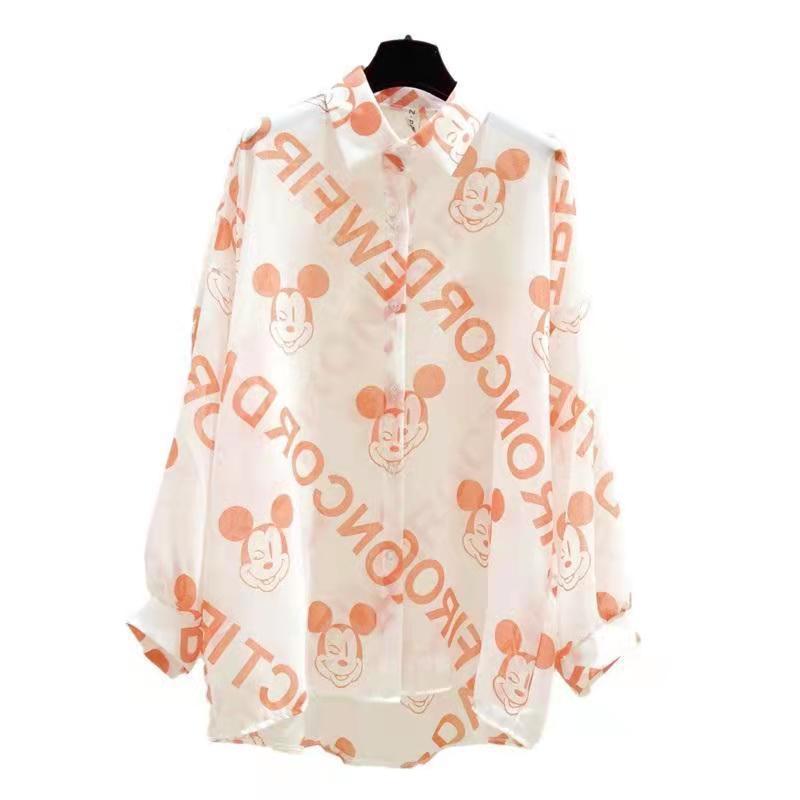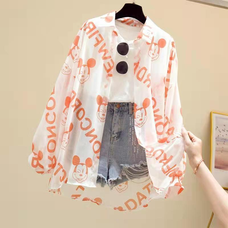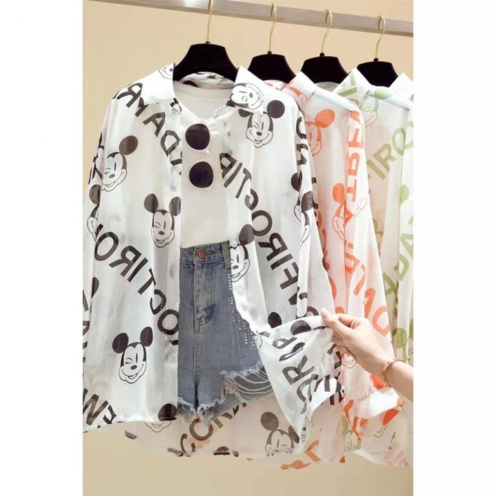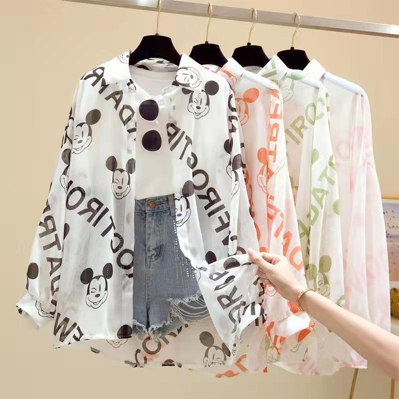 아카데미 스타일의 미키 인쇄 얇은 태양 보호 셔츠 여성의 여름 새로운 느슨한 올 매치 레이드 백 한국식 코트스토어 가기