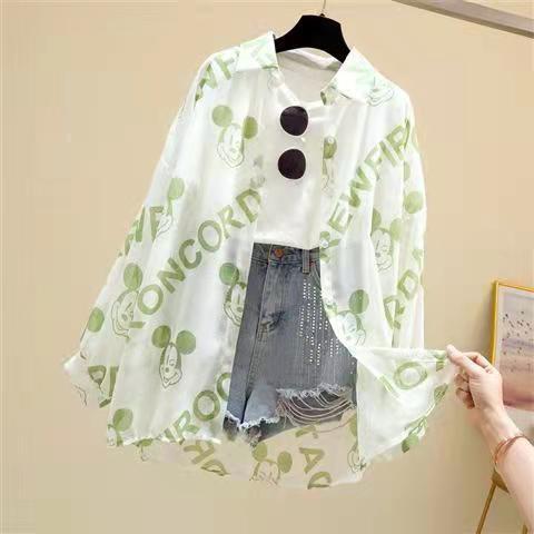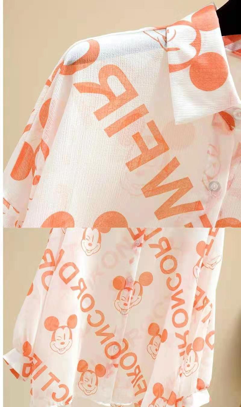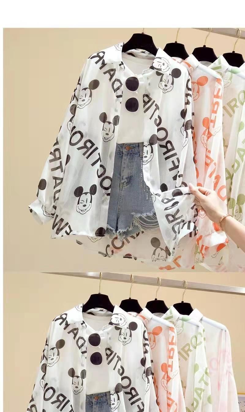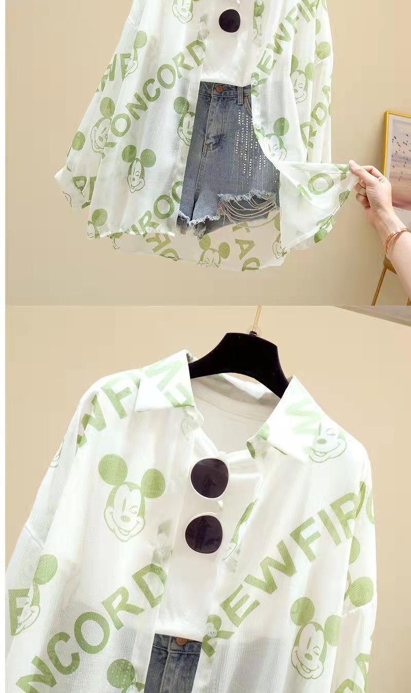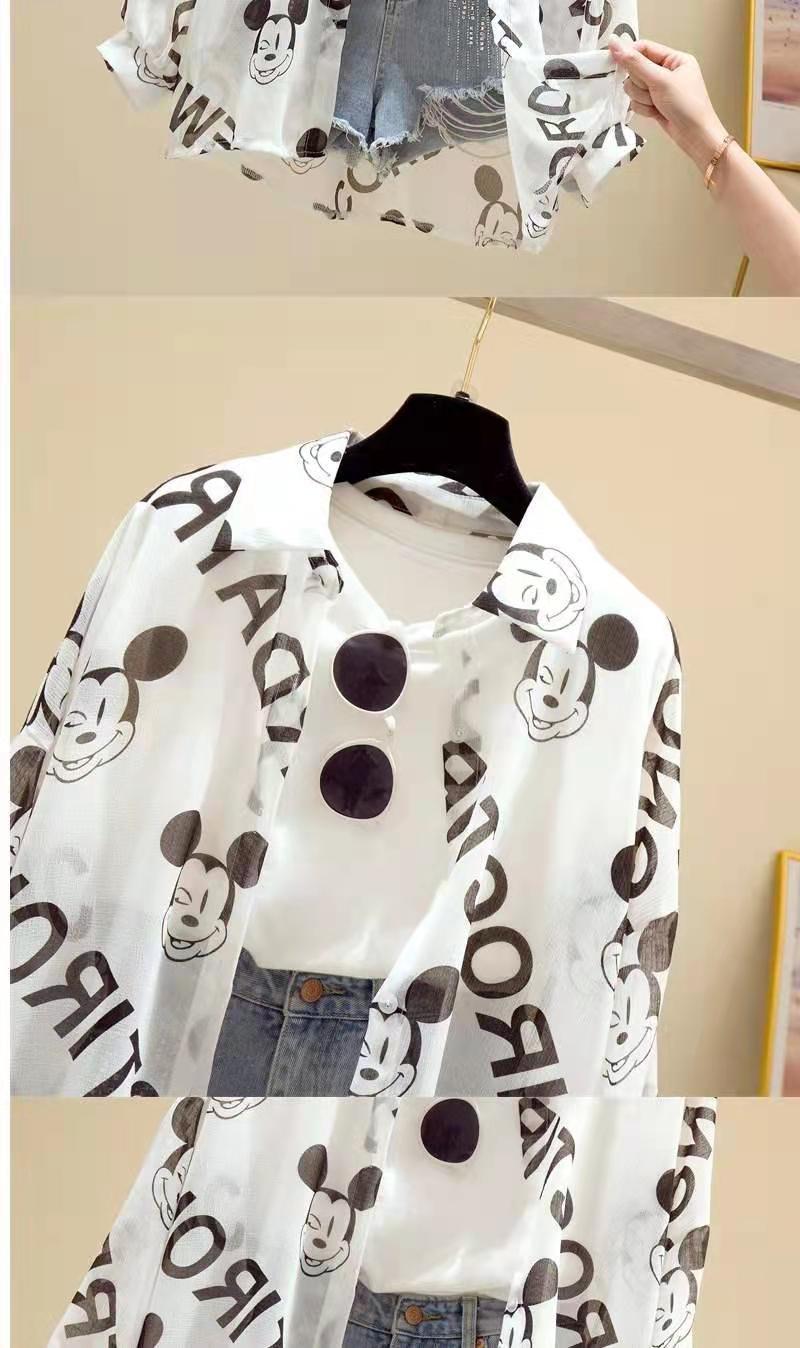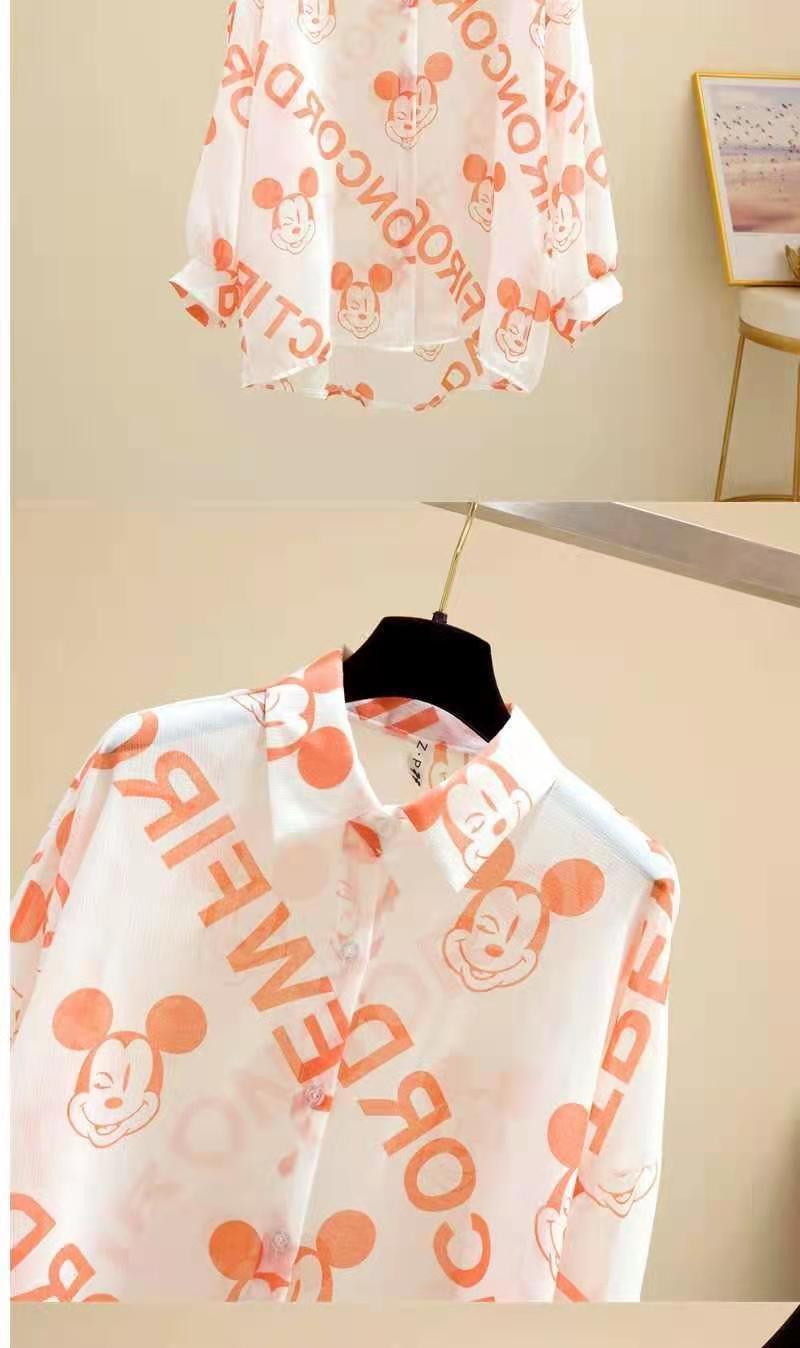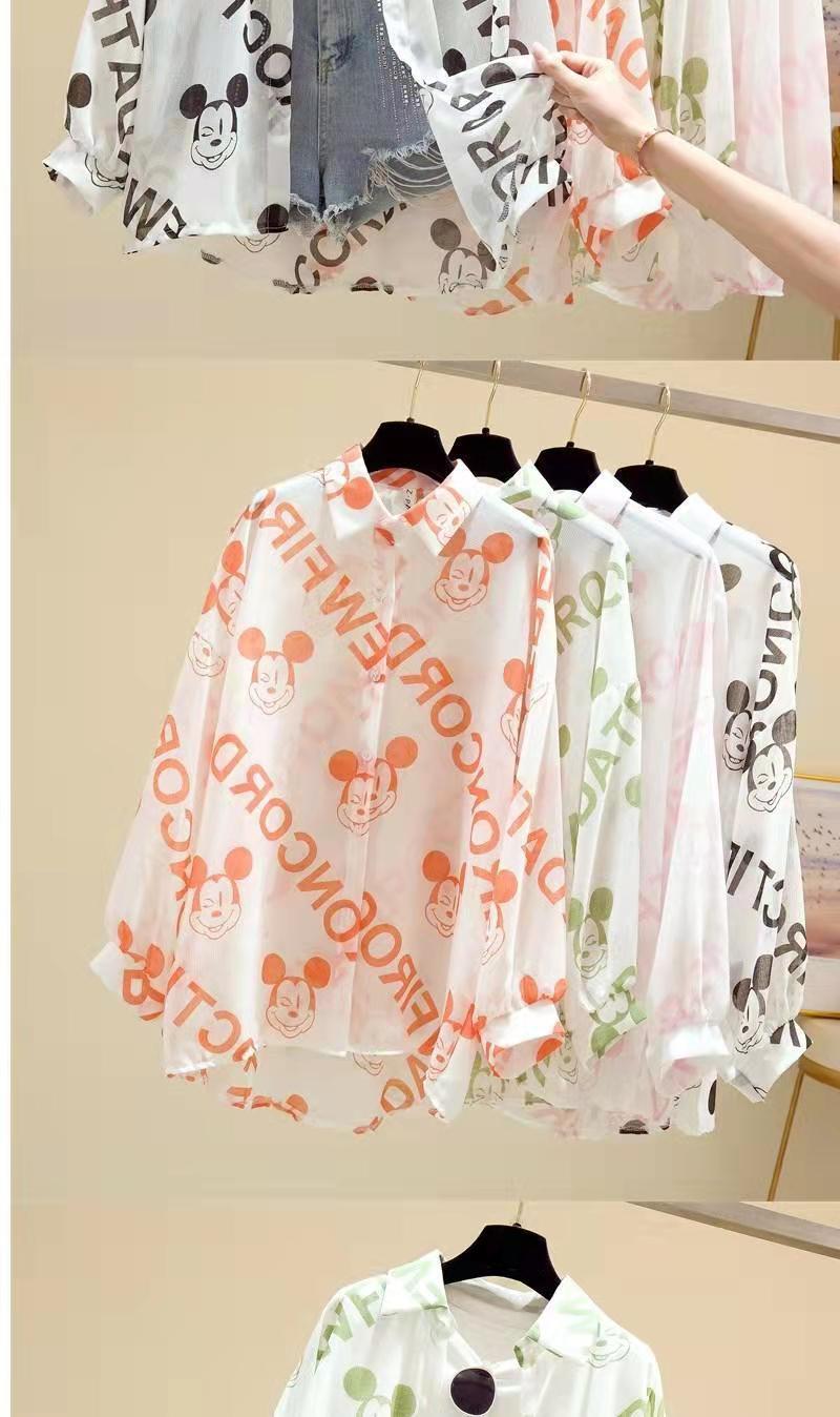 아카데미 스타일의 미키 인쇄 얇은 태양 보호 셔츠 여성의 여름 새로운 느슨한 올 매치 레이드 백 한국식 코트스토어 가기