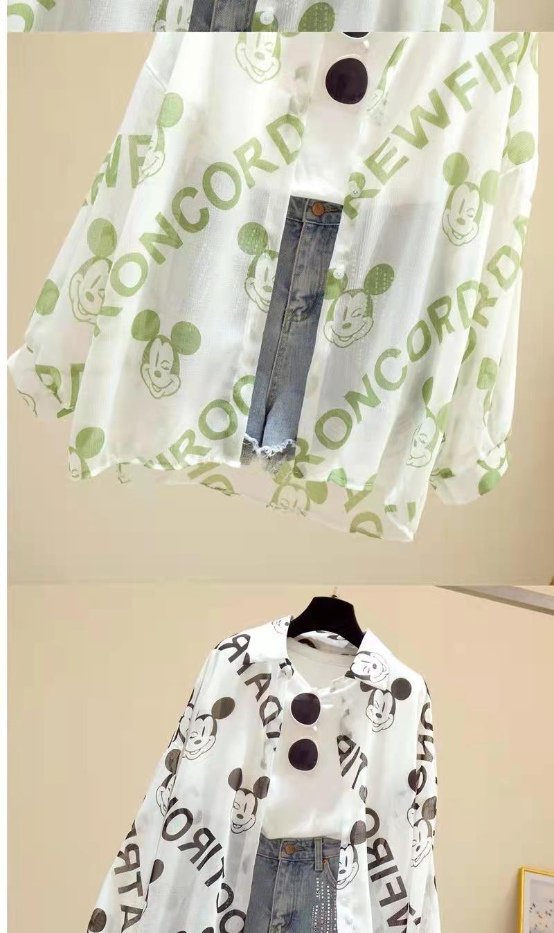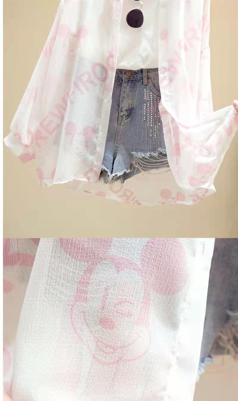 아카데미 스타일의 미키 인쇄 얇은 태양 보호 셔츠 여성의 여름 새로운 느슨한 올 매치 레이드 백 한국식 코트