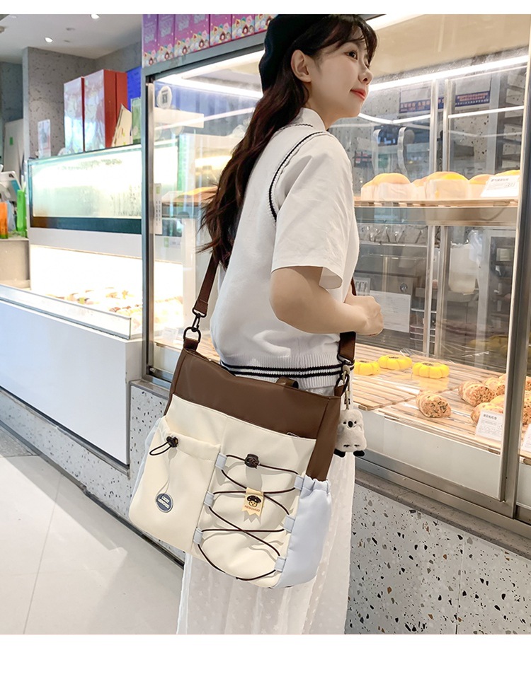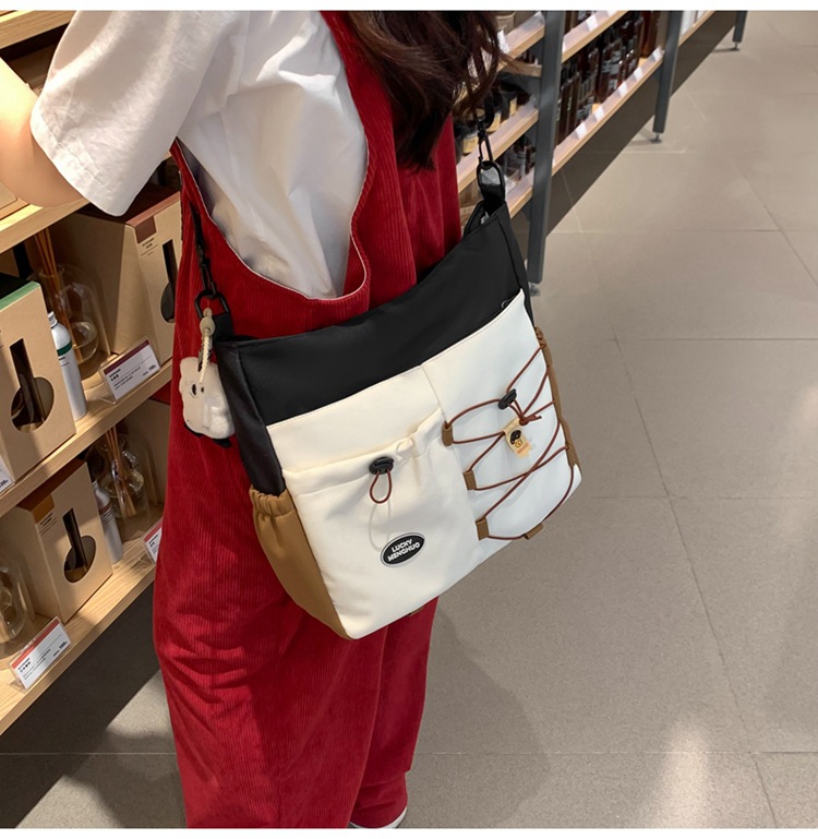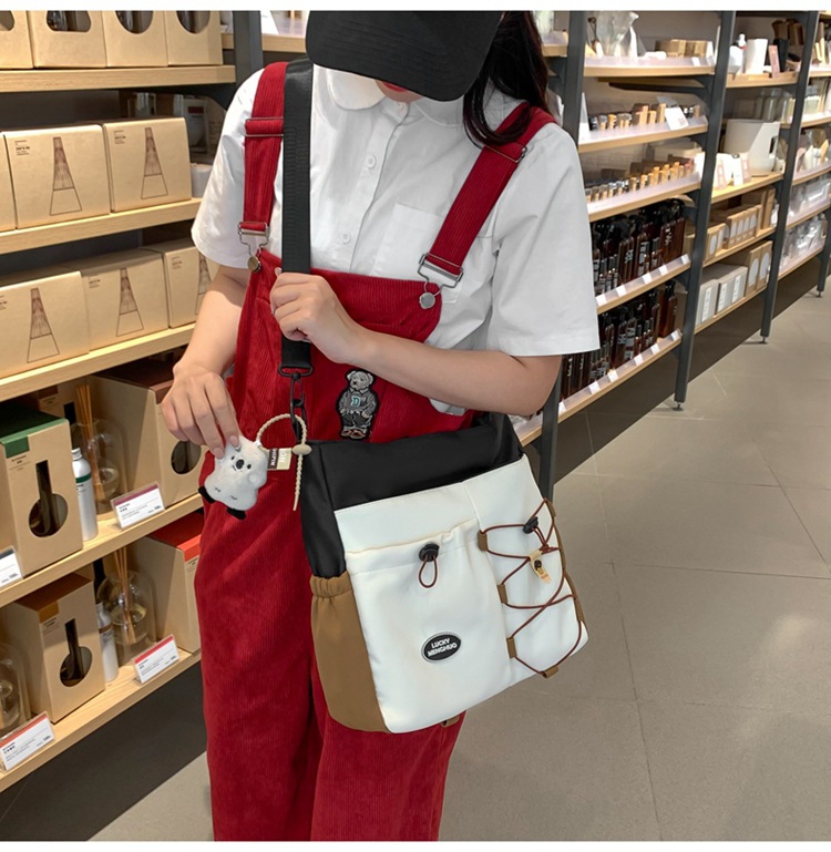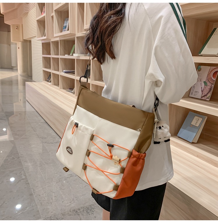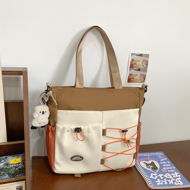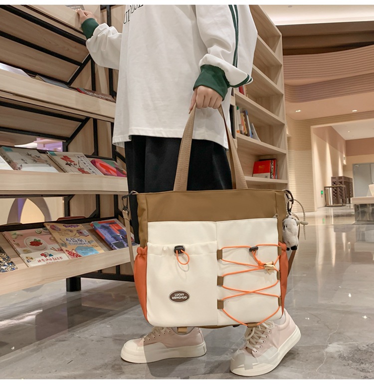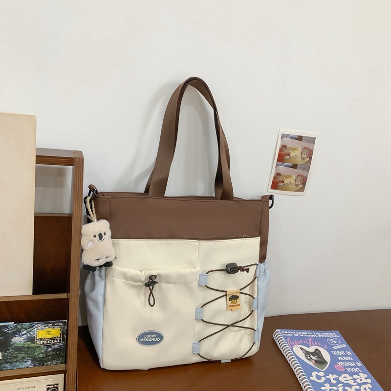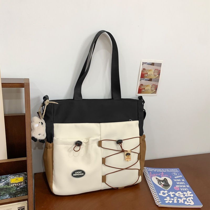 가정교사 가방 여성 학생 간단한 클래스 어깨 가방 짠 그림 작은 신선한 스타일 핸드백 대비 컬러 통근 토트 백