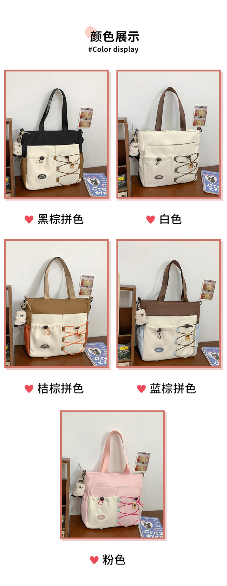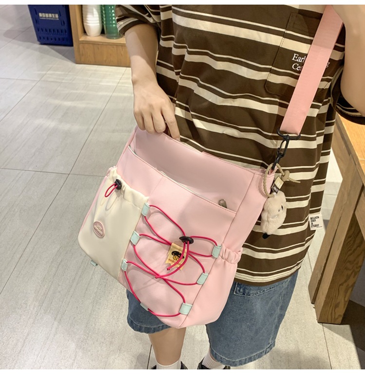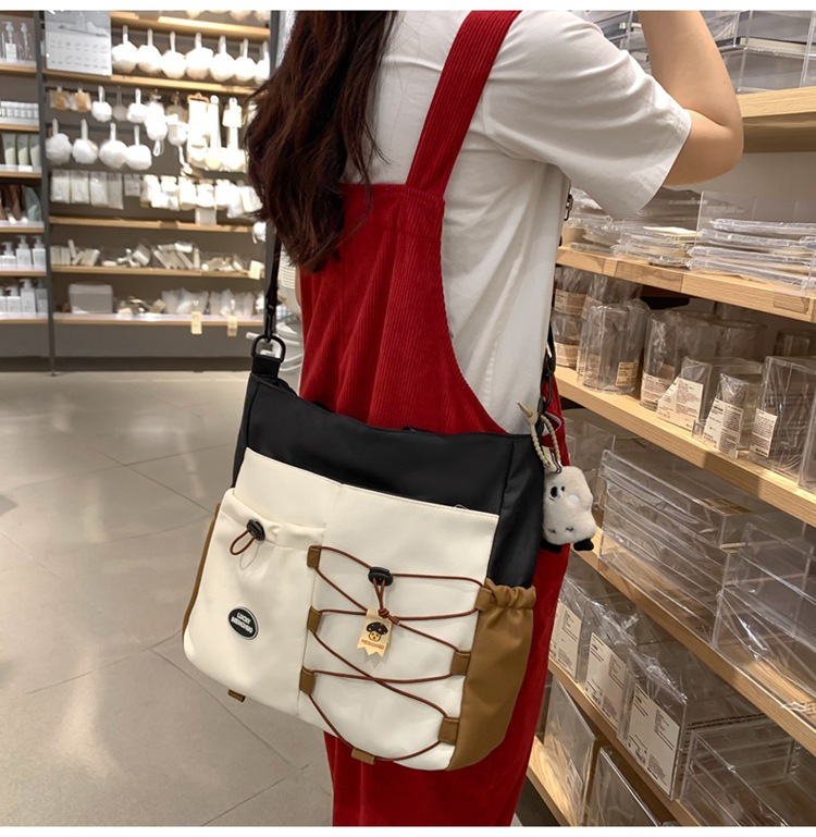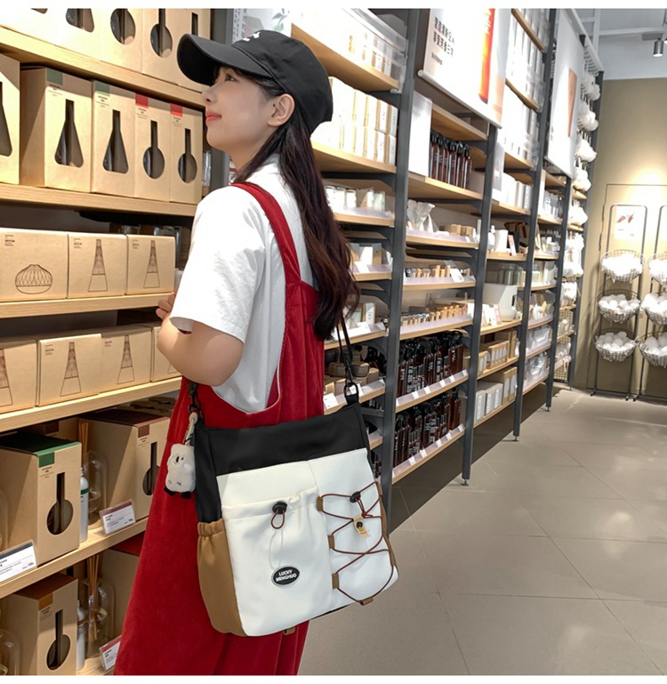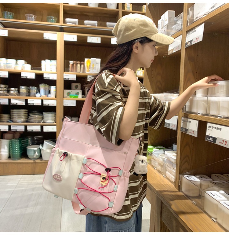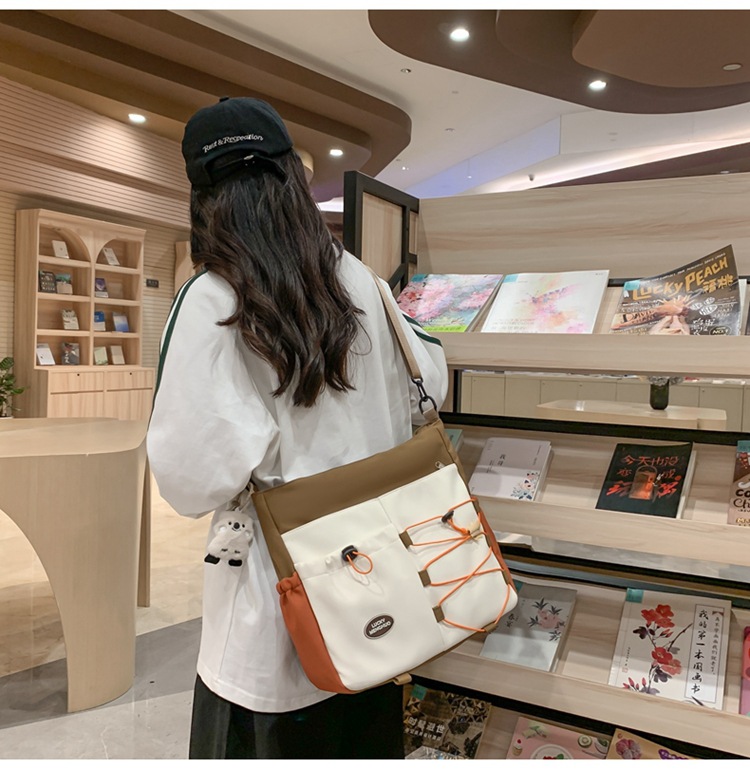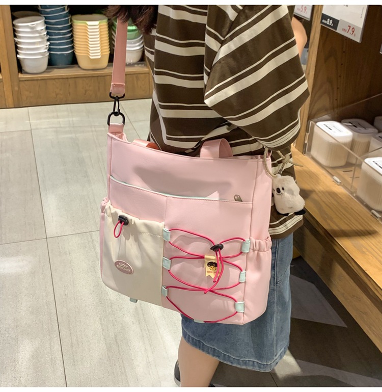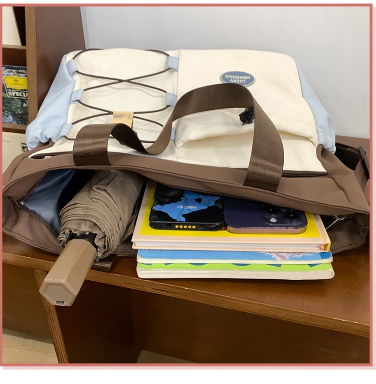 가정교사 가방 여성 학생 간단한 클래스 어깨 가방 짠 그림 작은 신선한 스타일 핸드백 대비 컬러 통근 토트 백스토어 가기
