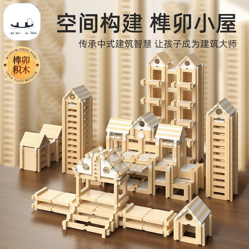 어린이 목조 건물 블록 중국 장형 및 테논 조립 구조 루반 건축가 대형 입자 건물 블록 집 장난감스토어 가기
