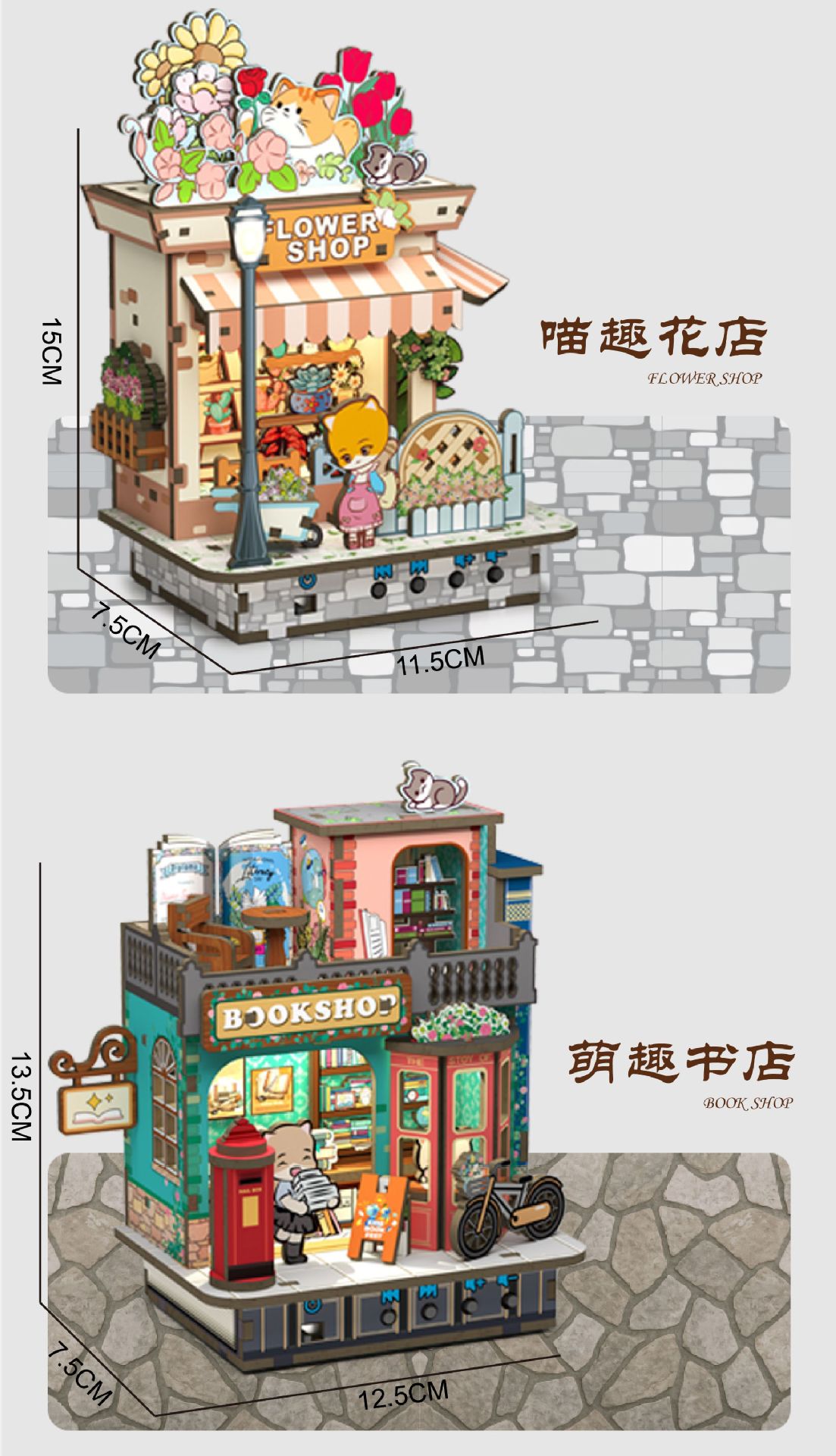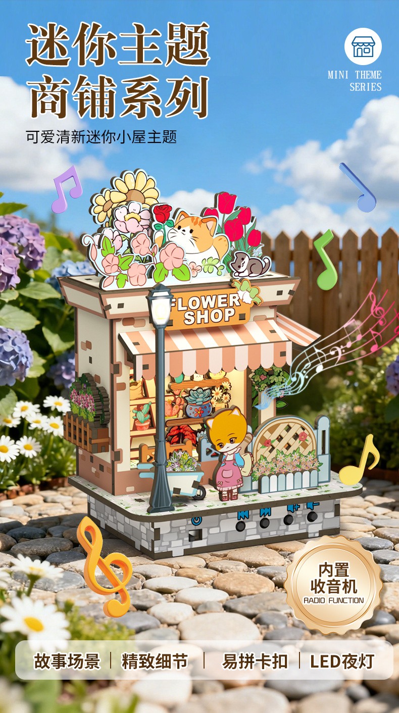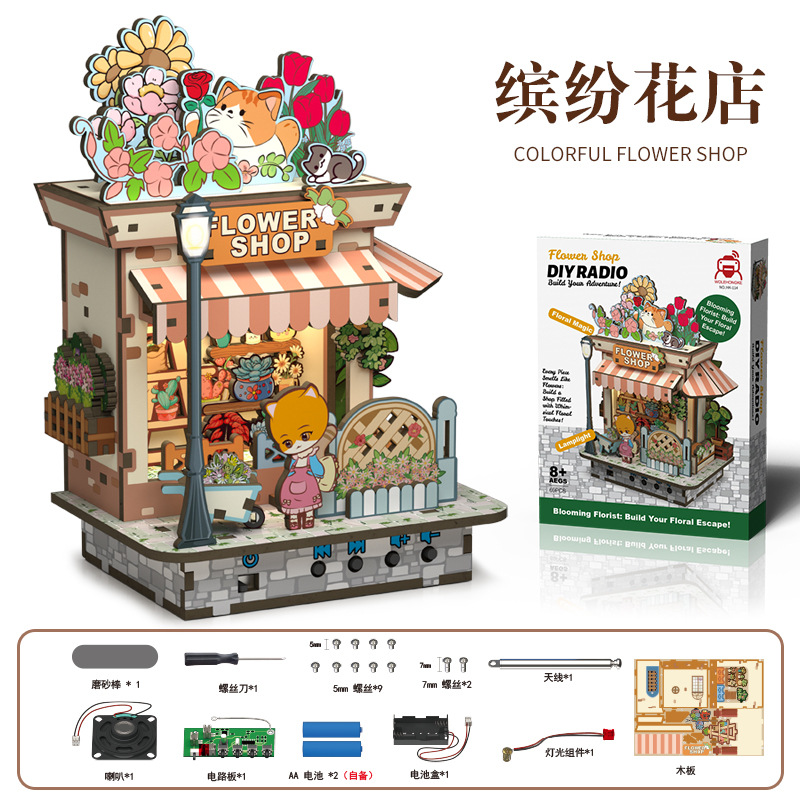 • 라디오 기능 + 조명을 갖춘 Meow Fun 꽃집