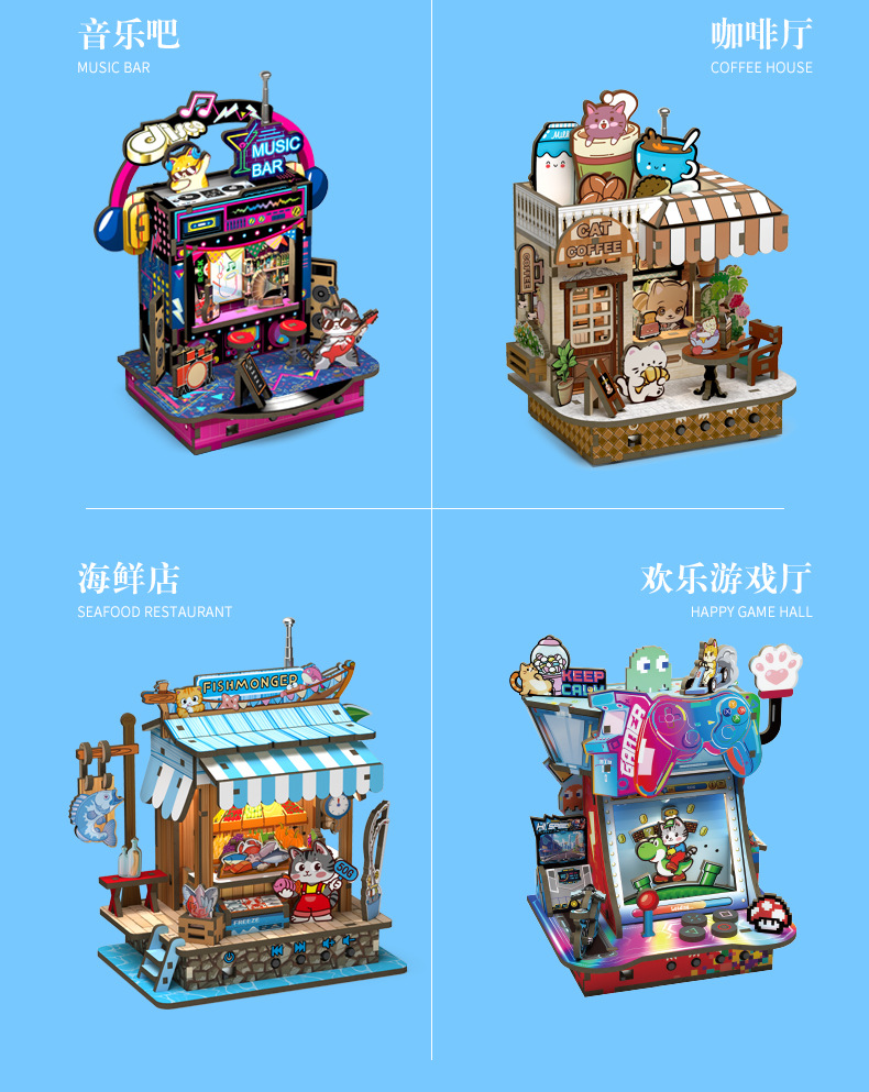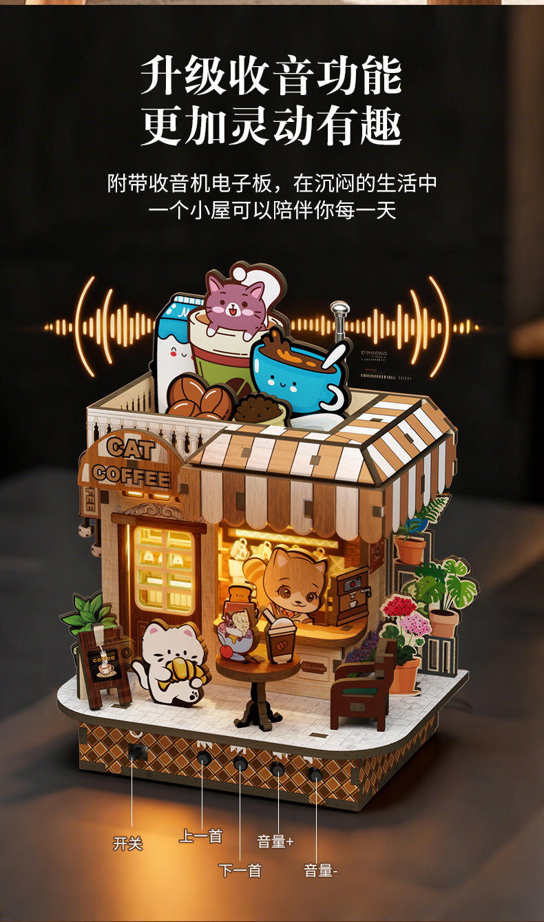 • 라디오 기능 + 조명을 갖춘 고양이 카페