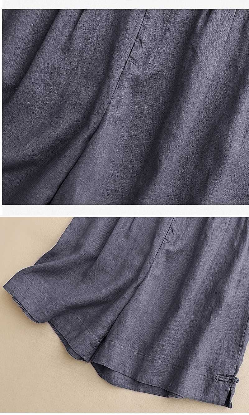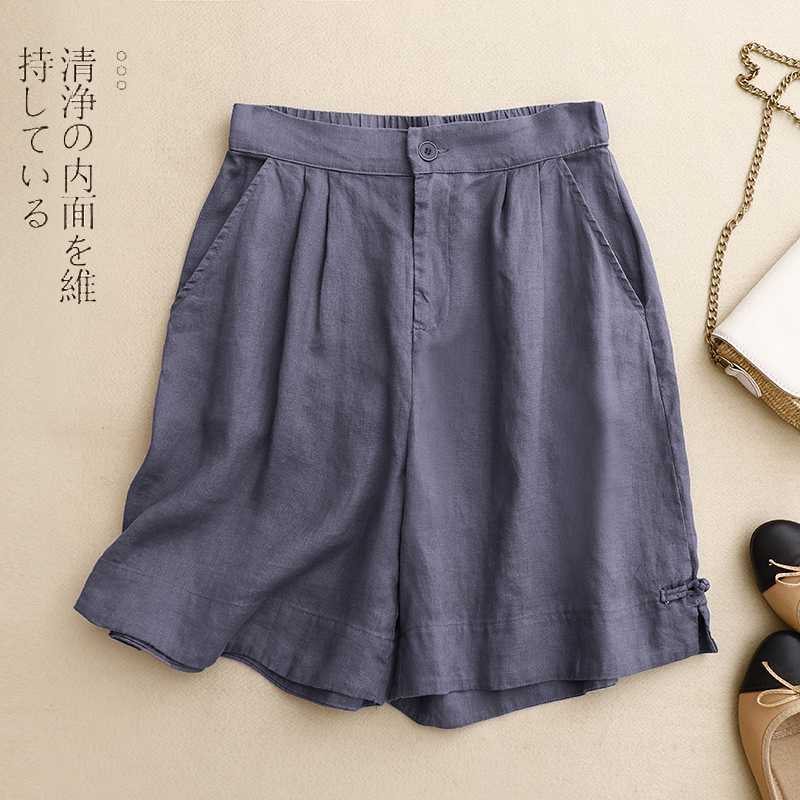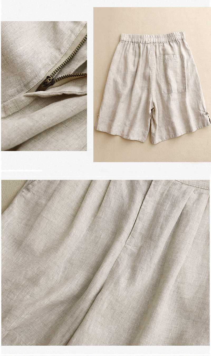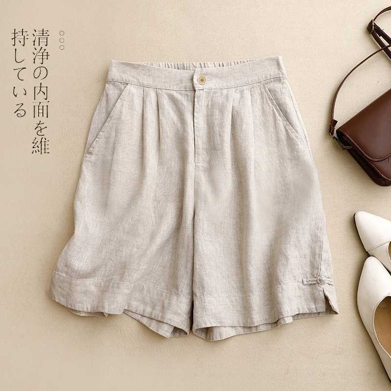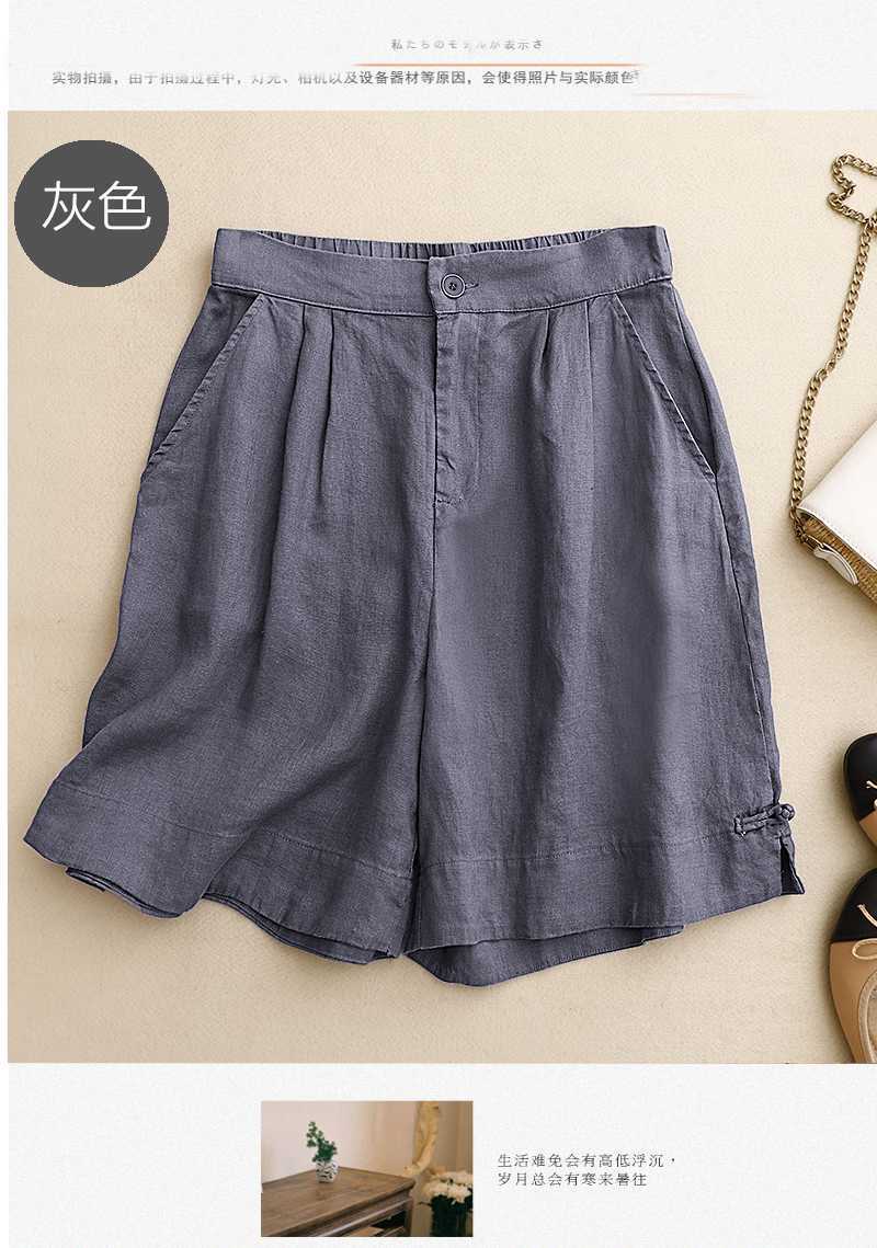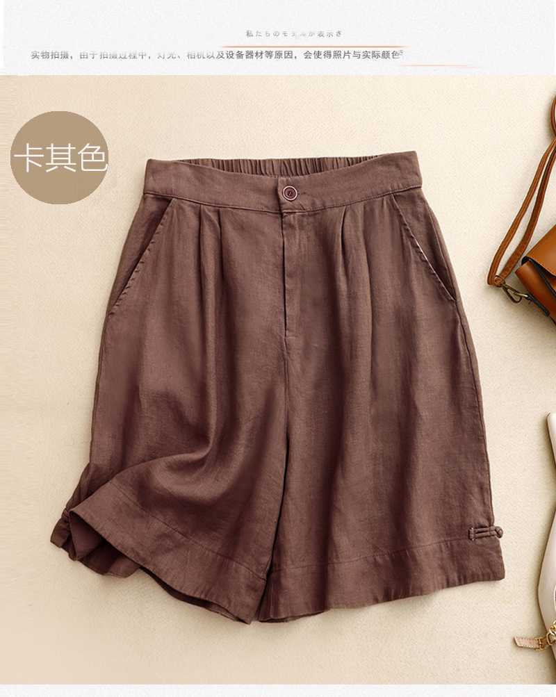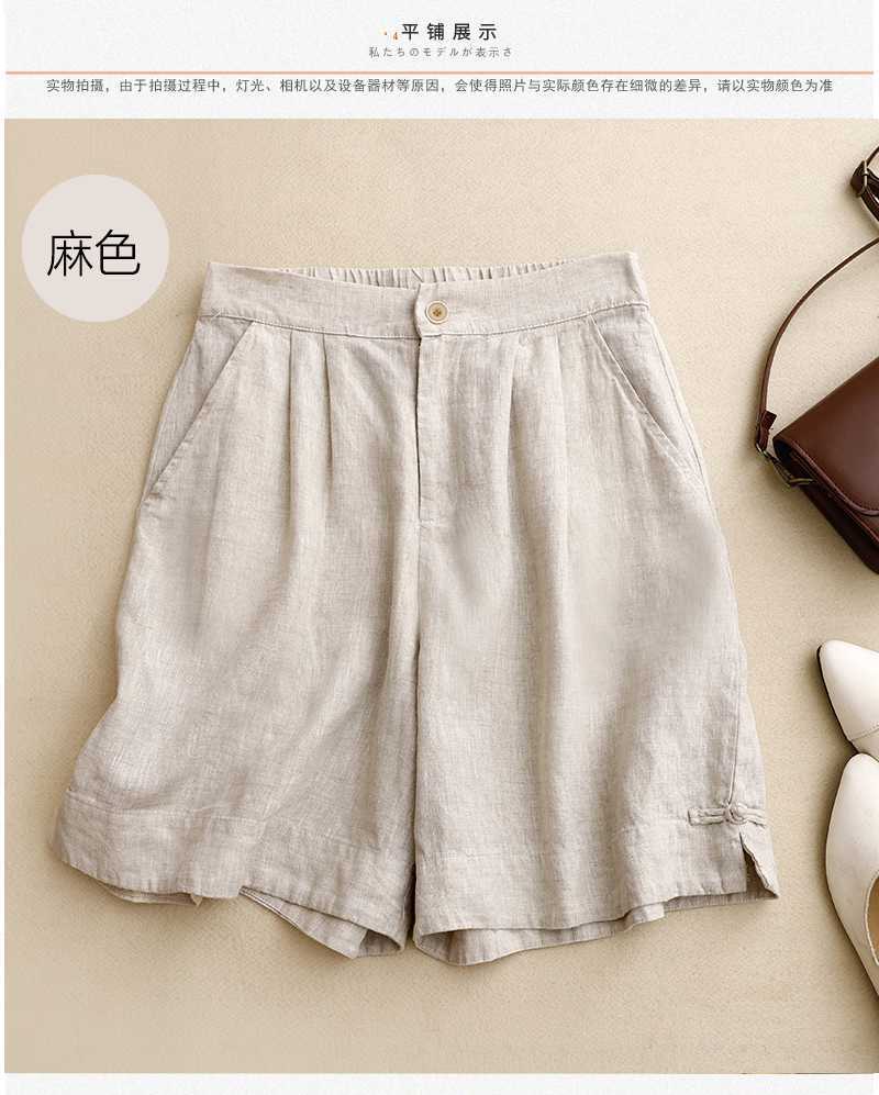 리얼 샷 2024 여름 새로운 와이드 레그 5 점 바지 여성용 루즈 레트로 캐주얼 코튼 리넨 반바지 외부 착용 높은 허리 바지스토어 가기