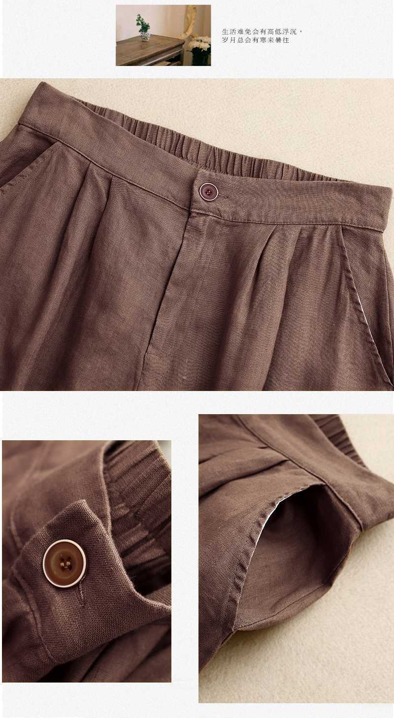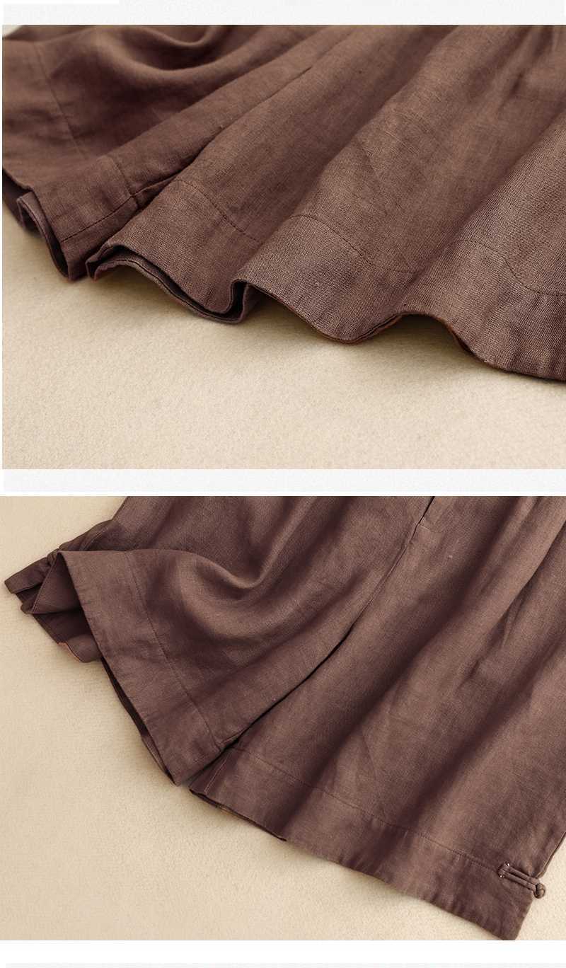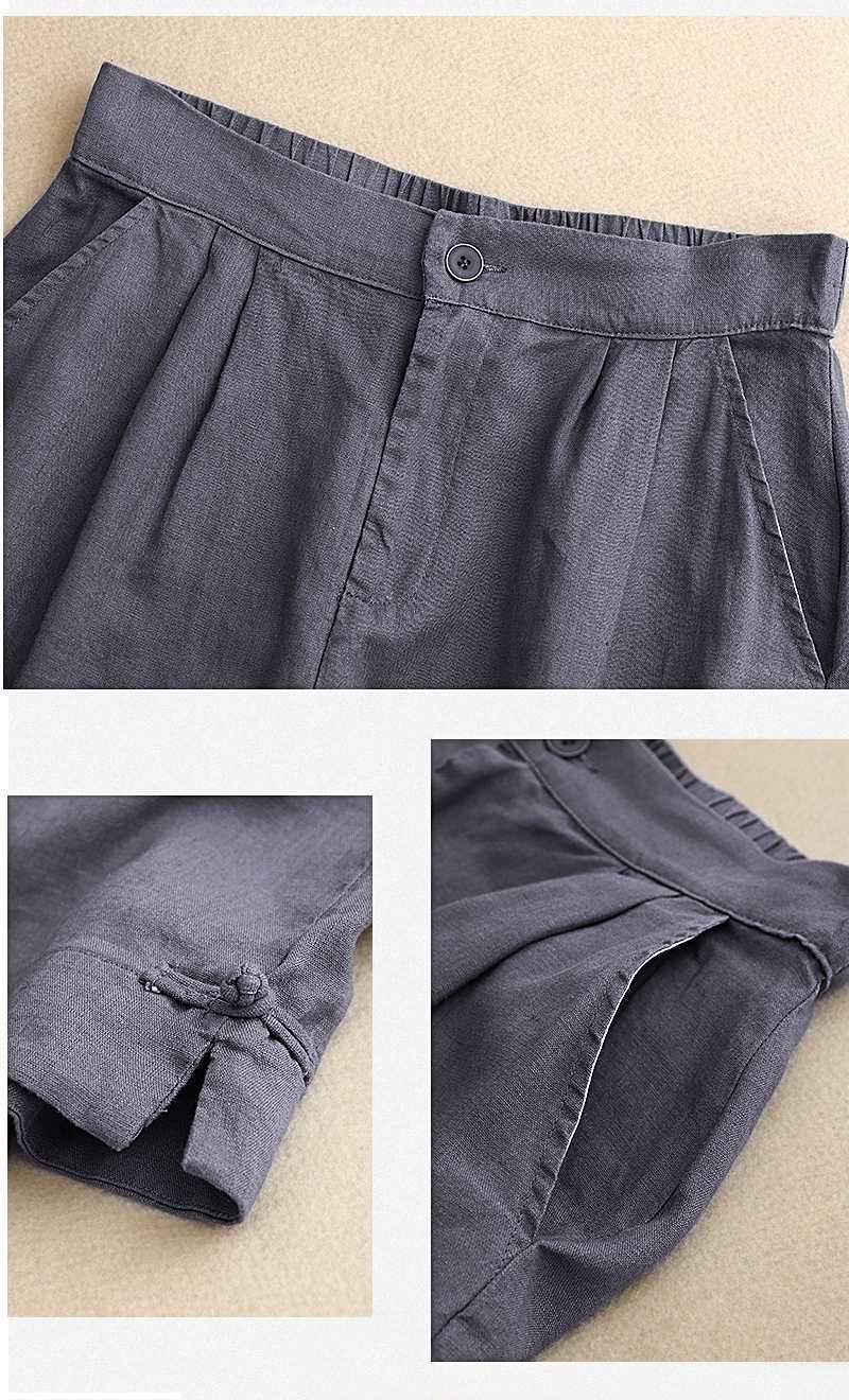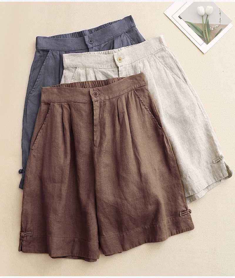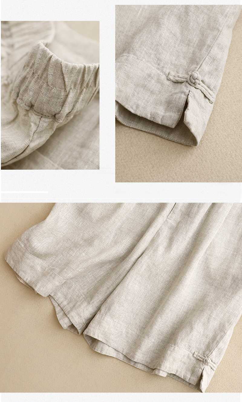 리얼 샷 2024 여름 새로운 와이드 레그 5 점 바지 여성용 루즈 레트로 캐주얼 코튼 리넨 반바지 외부 착용 높은 허리 바지스토어 가기