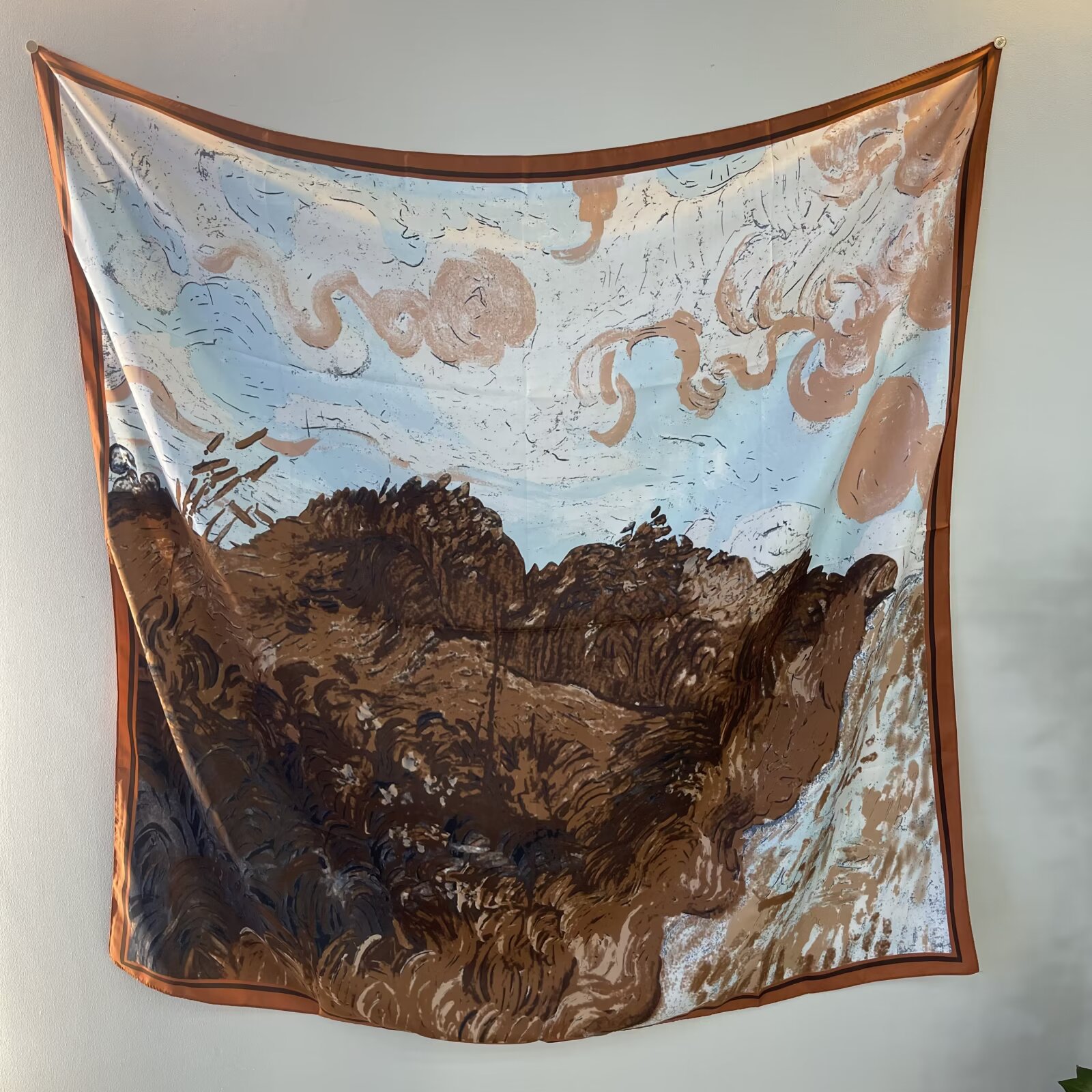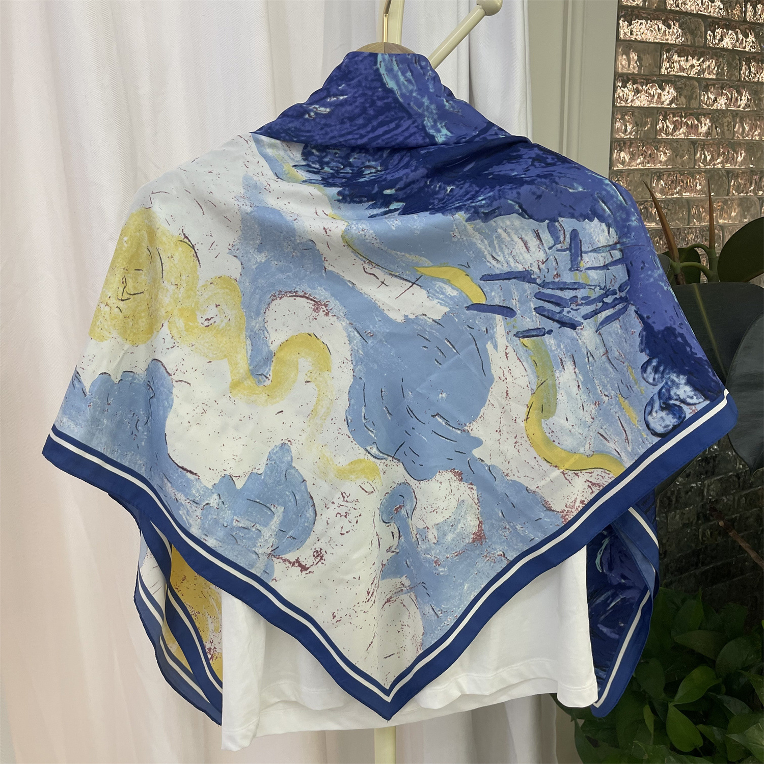 2024 새로운 국경 110 t 인쇄 헤드 스카프 하이 센스 선 스크린 스퀘어 올 매치 스카프 목도리 도매 여성스토어 가기
