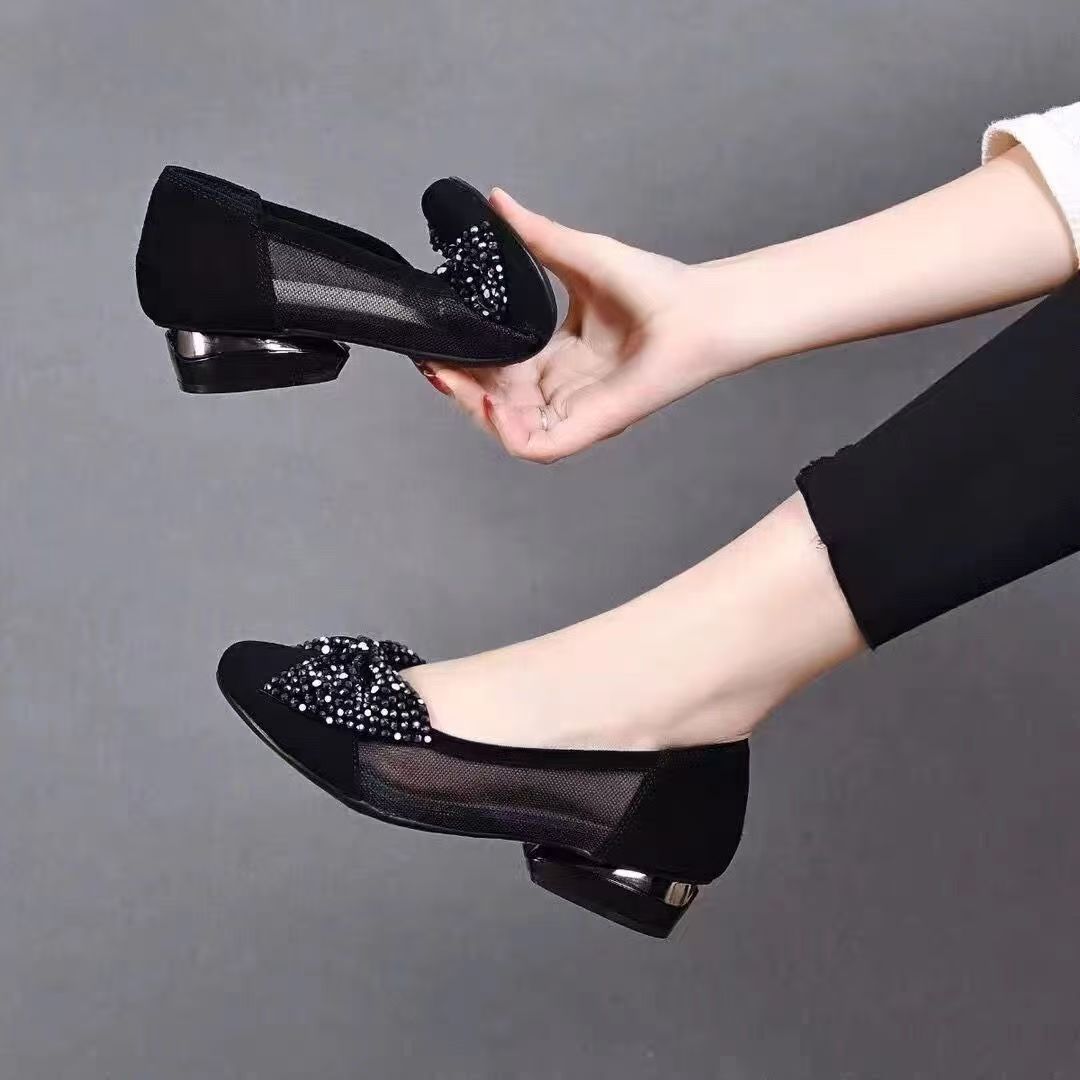 여성 라운드 발가락 신발 2024 봄과 여름 새로운 라인스톤 활 신발 미끄럼 얕은 입 게으른 신발 한국식 작업 신발스토어 가기