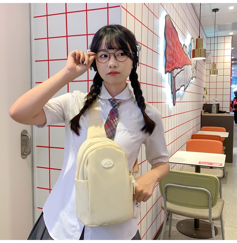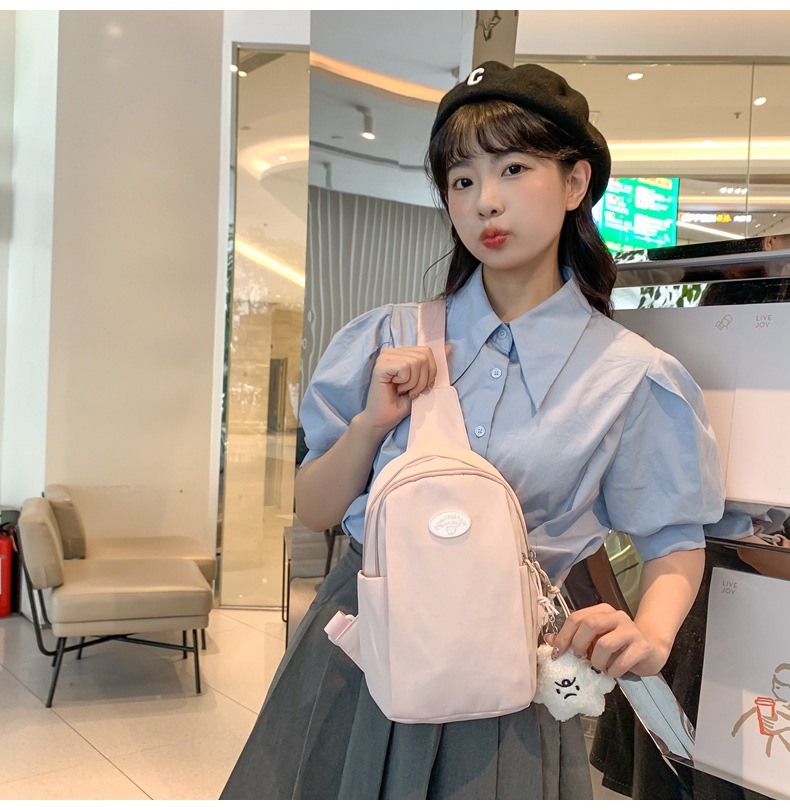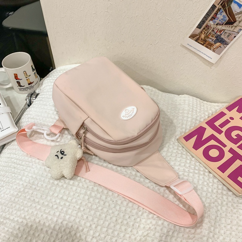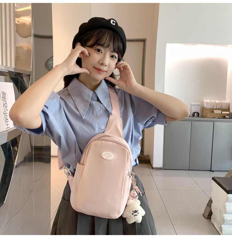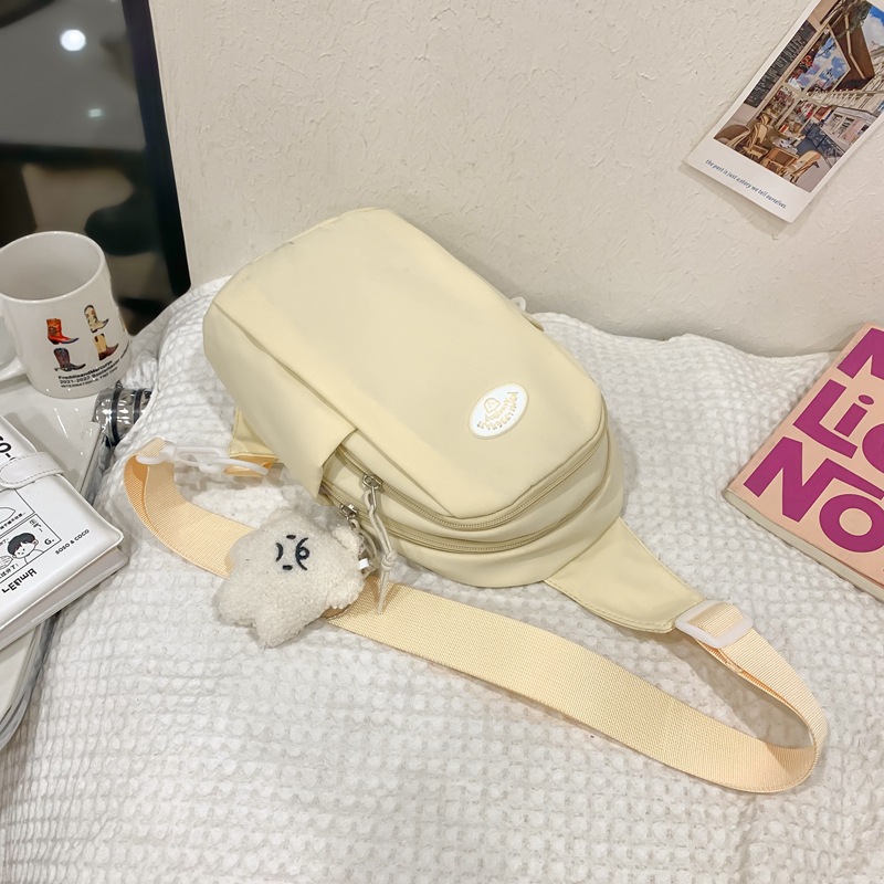귀여운 크림 베어 가슴 가방 일본 스타일 Instagram 스타일 신선한 스타일 학생 올 매치 허리 가방 모리 스타일 소녀 틈새 크로스 바디 백
