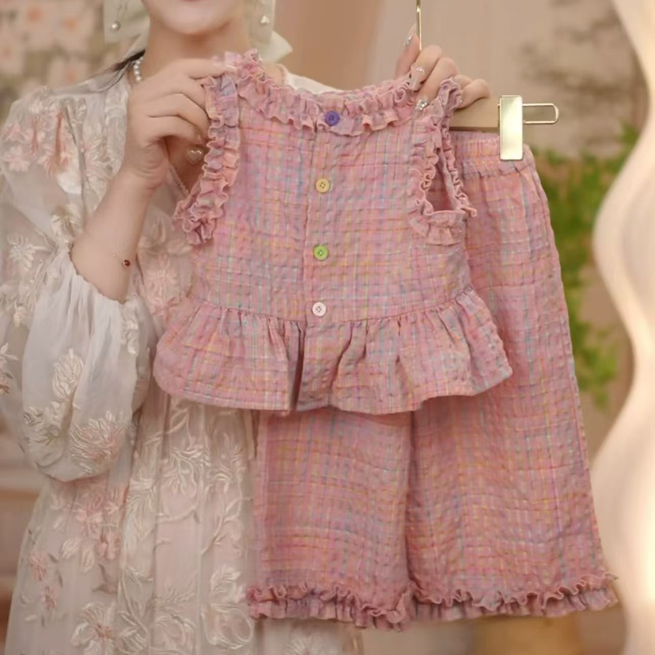 어린이 착용 소녀 세트 어린이 Xingyuan 2024 새로운 여름 아기 세련된 캐주얼 유행 2 피스 유행 여름 원피스