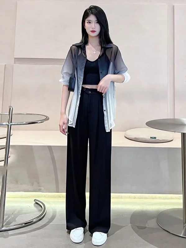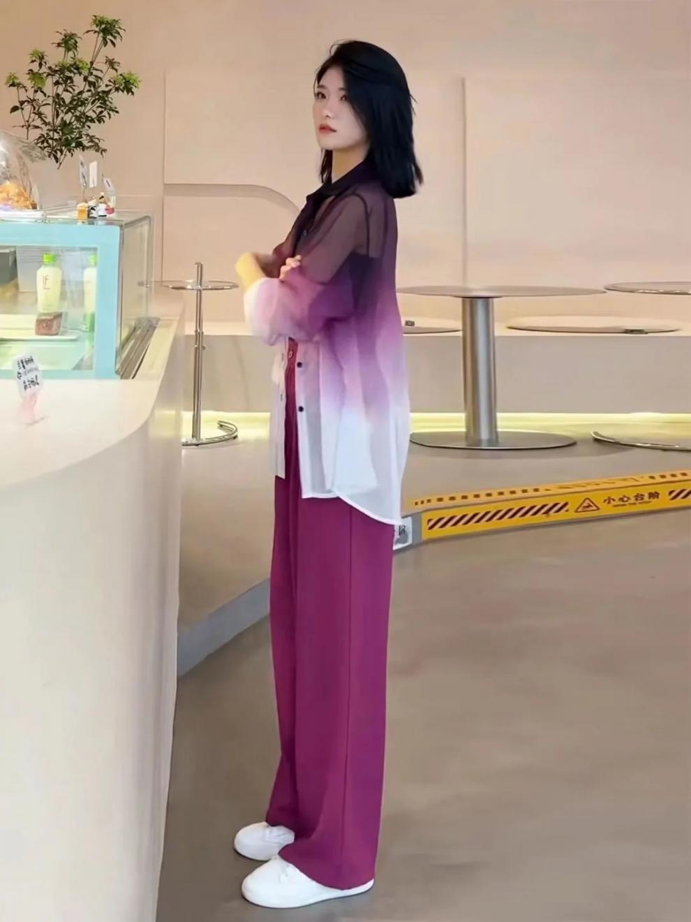 선스크린 POLO 칼라 여성 여름 긴팔 쉬폰 셔츠 경량 그라디언트 카디건 시스루 탑 트렌디스토어 가기