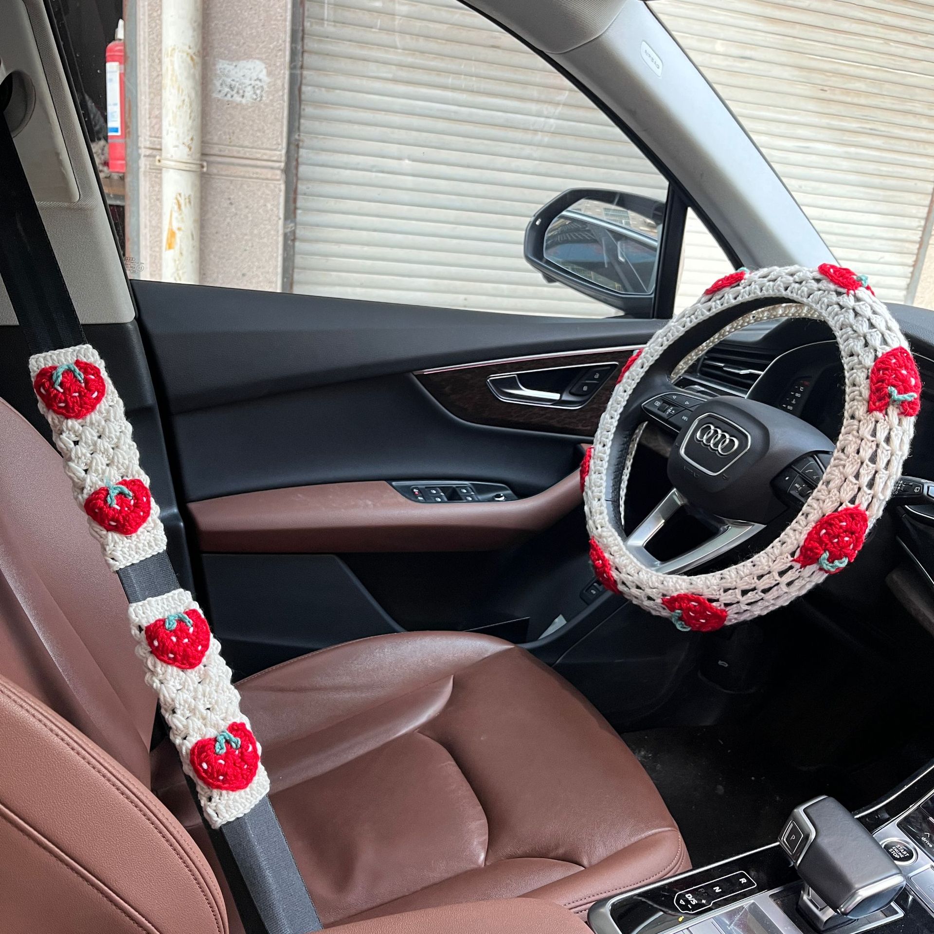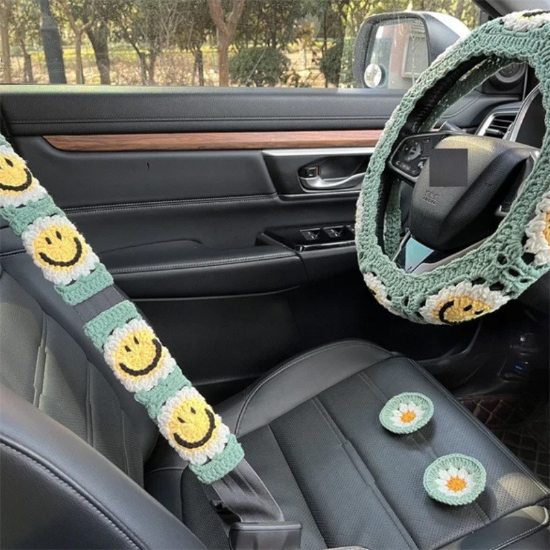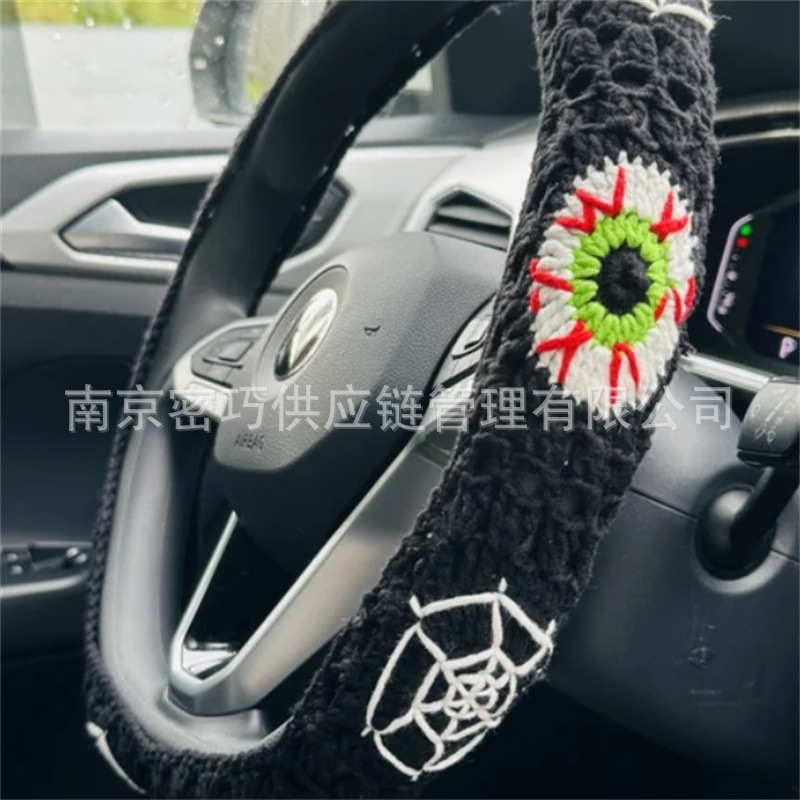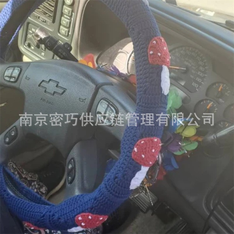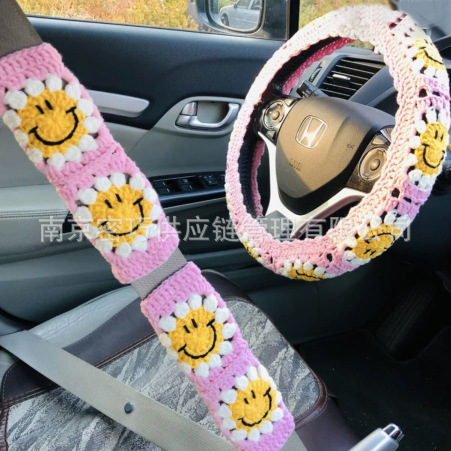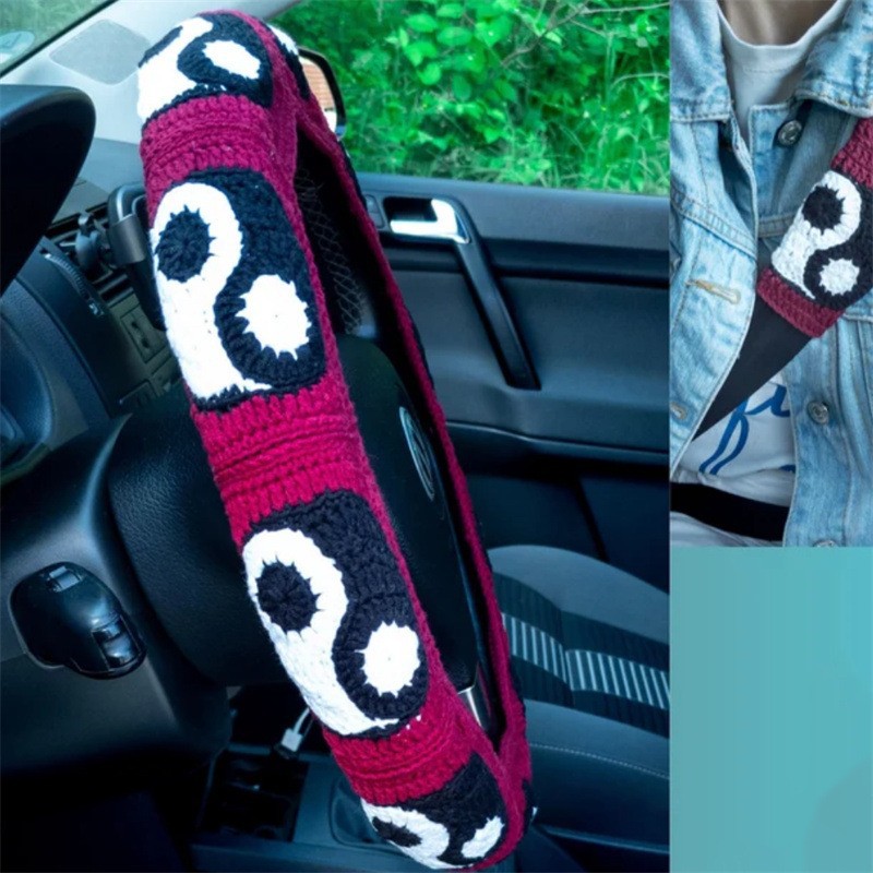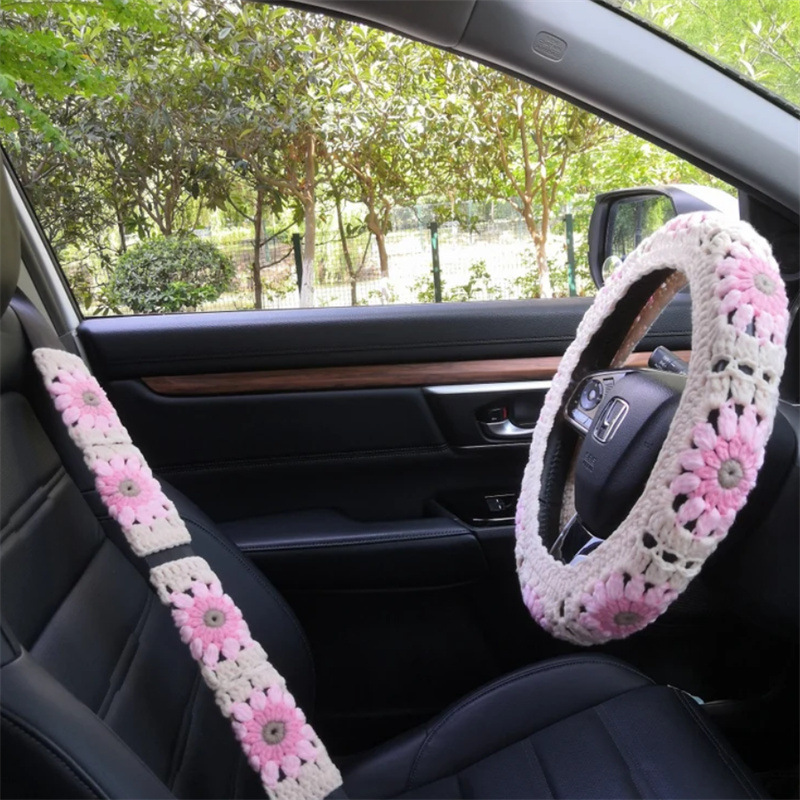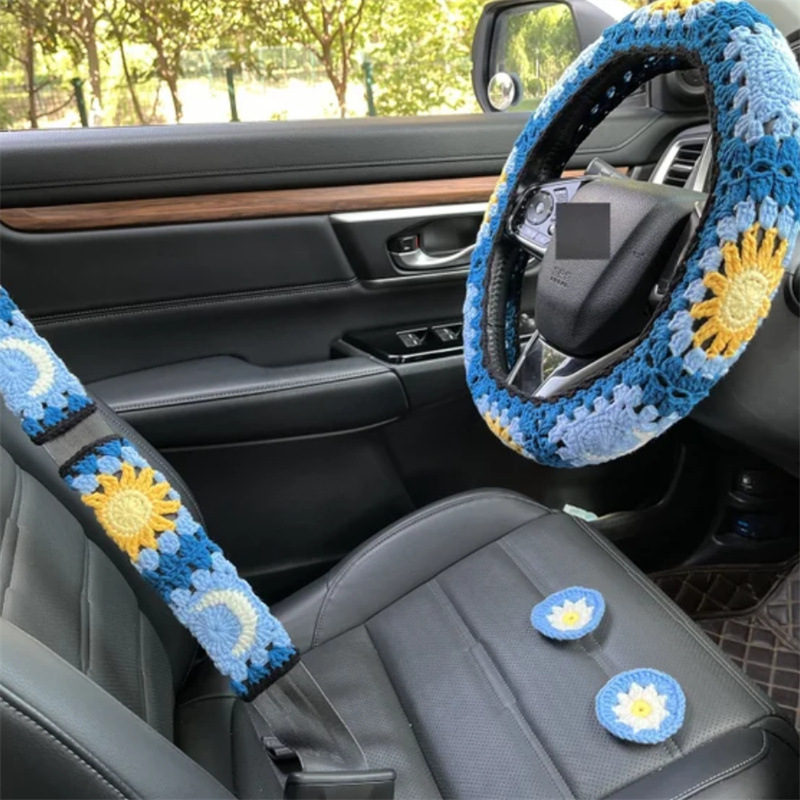 2025 국경 간 신제품 손으로 짠 스티어링 휠 커버 크리 에이 티브 귀여운 보헤미안 스타일 할머니 격자 안전 벨트 커버