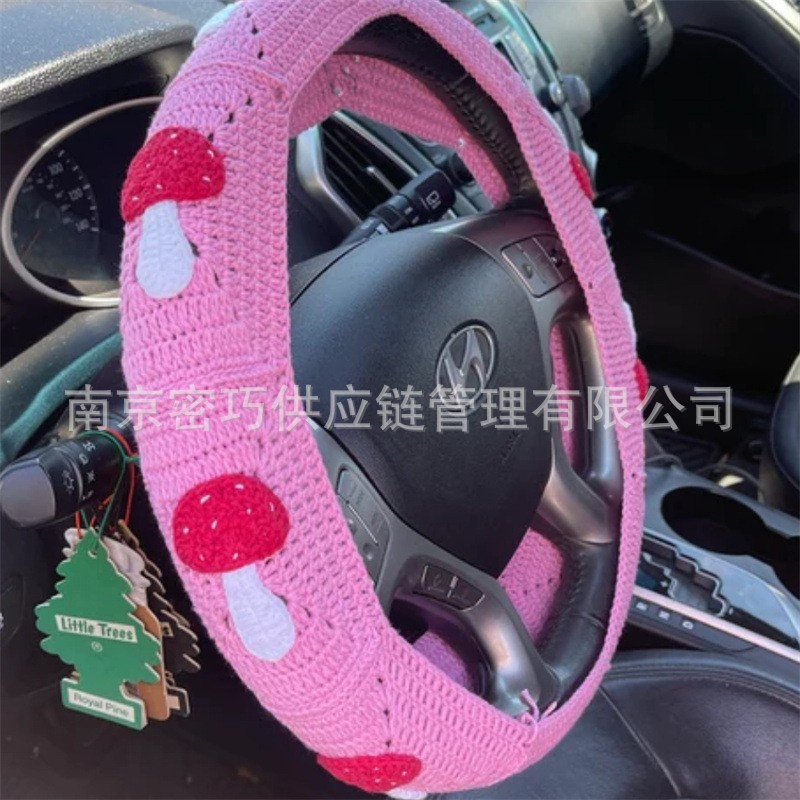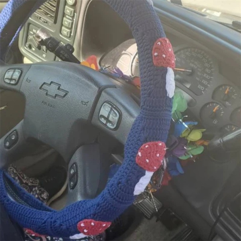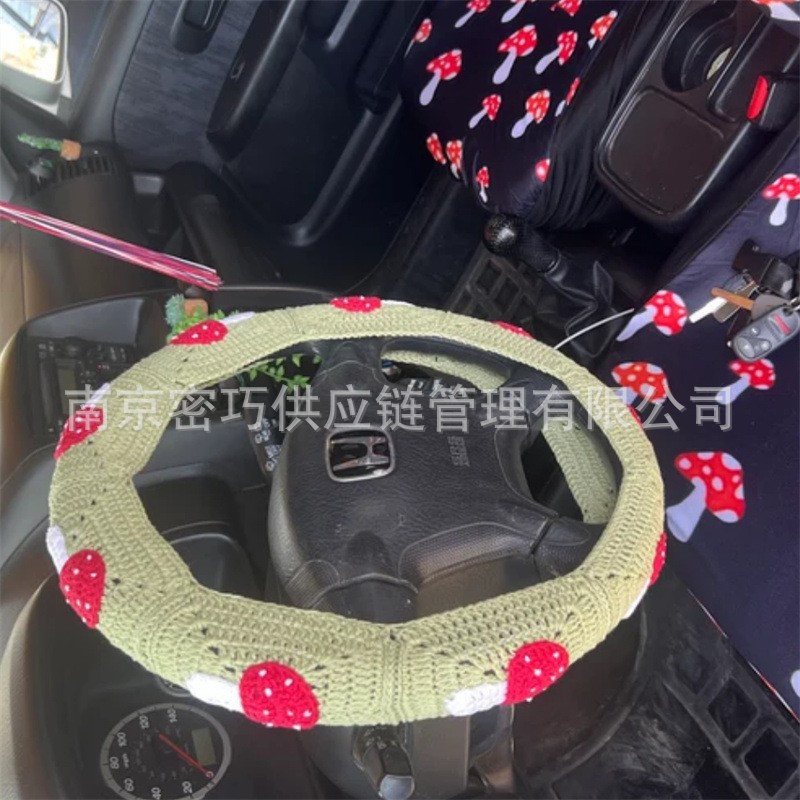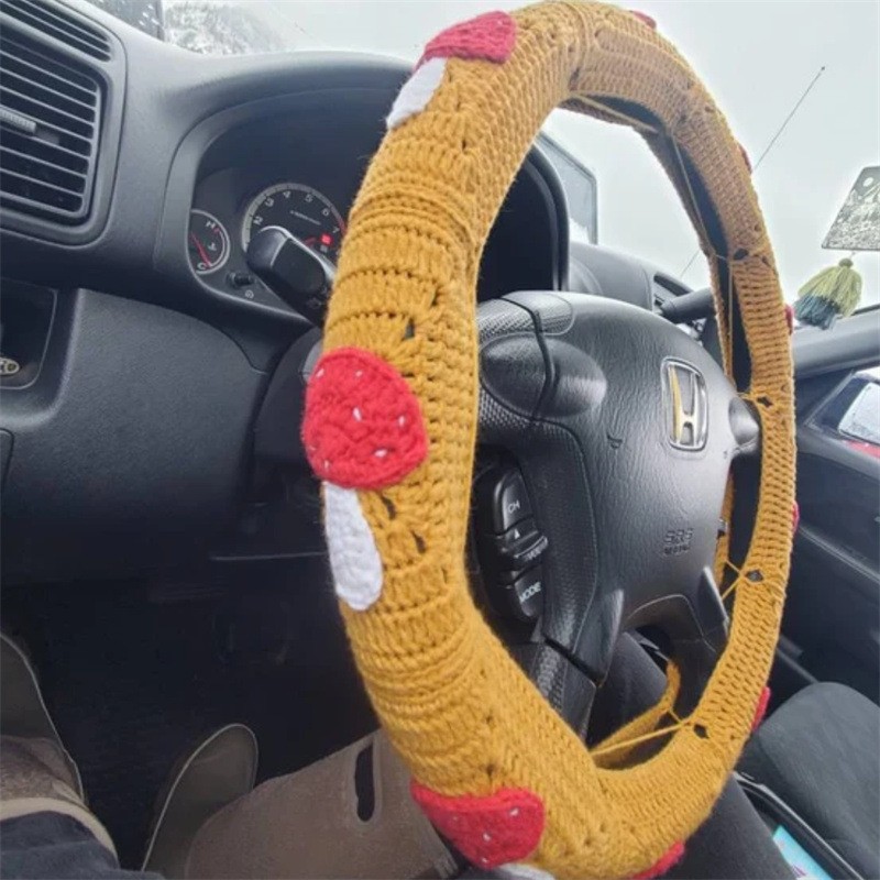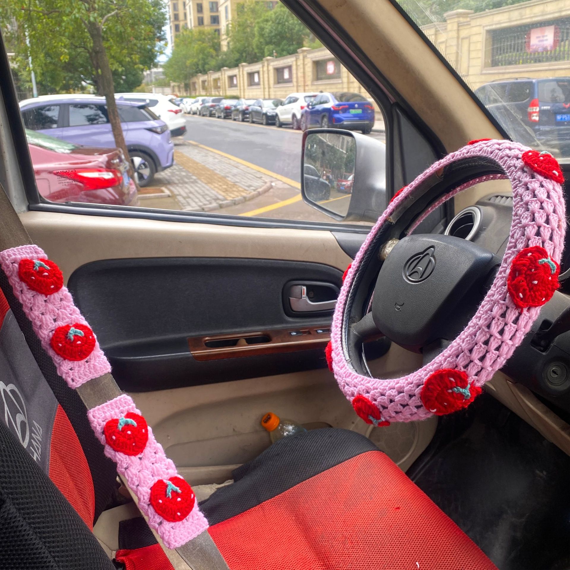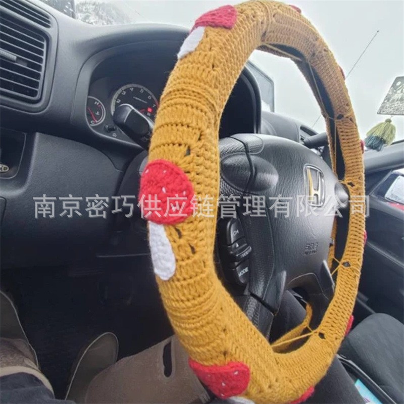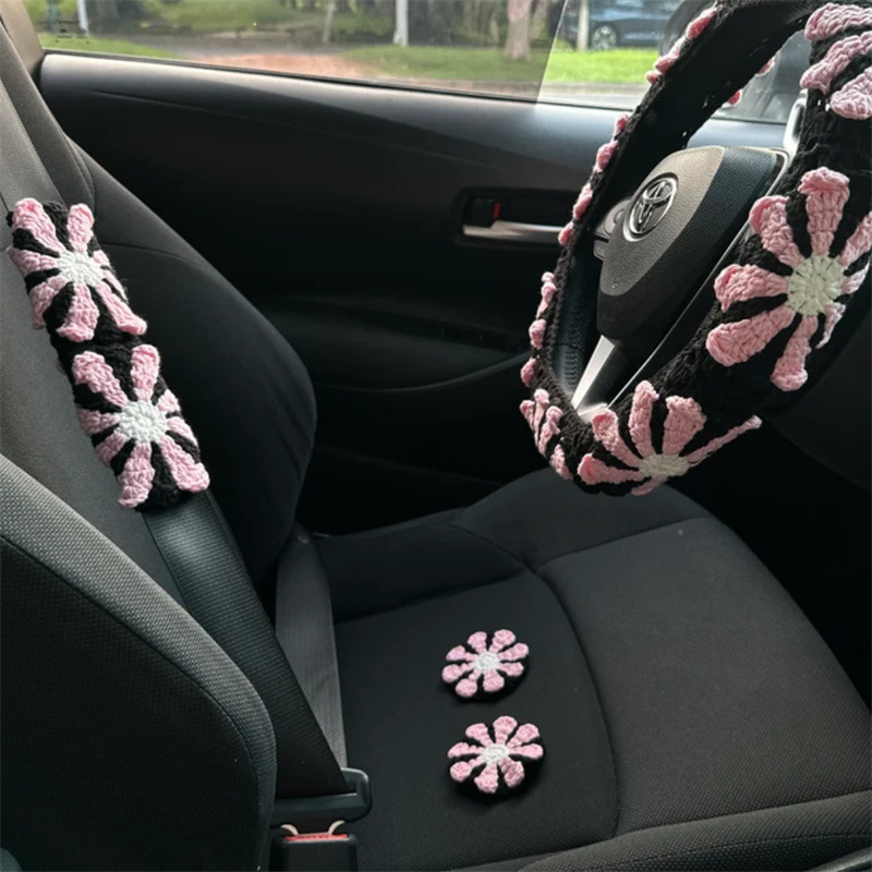 2025 국경 간 신제품 손으로 짠 스티어링 휠 커버 크리 에이 티브 귀여운 보헤미안 스타일 할머니 격자 안전 벨트 커버