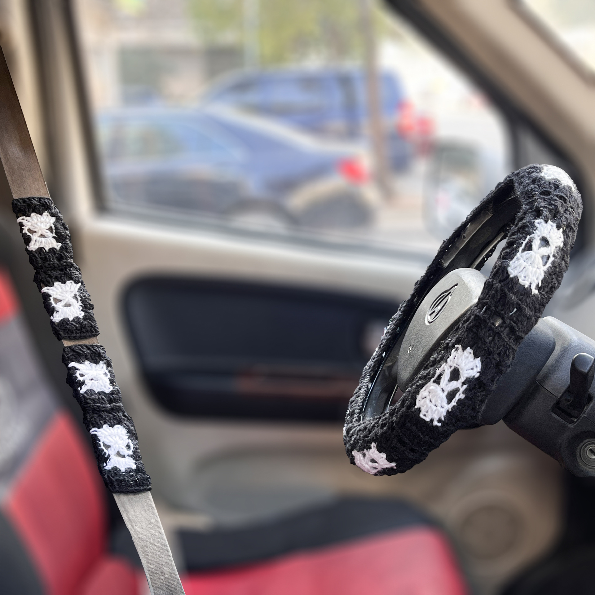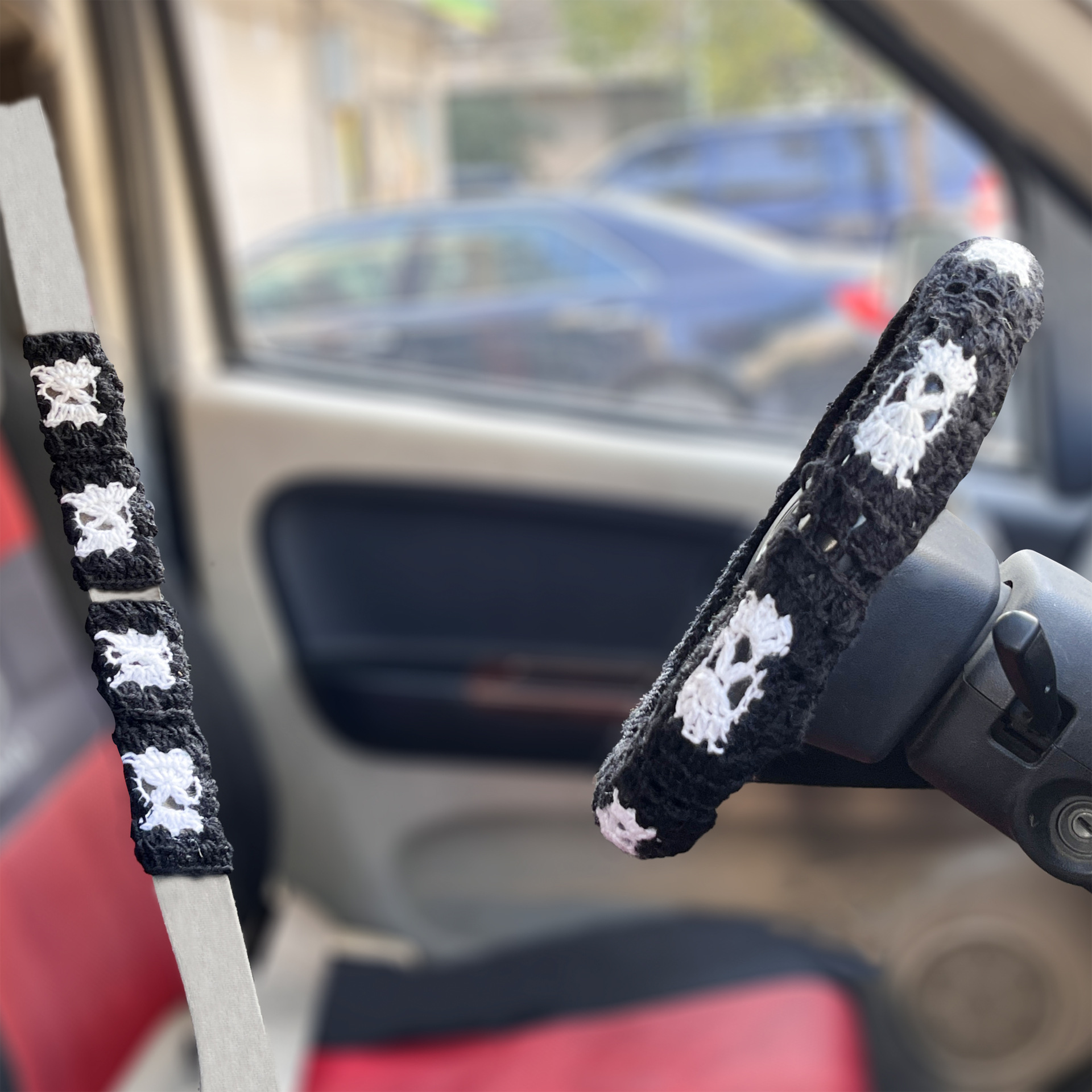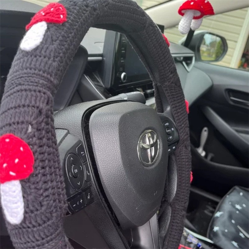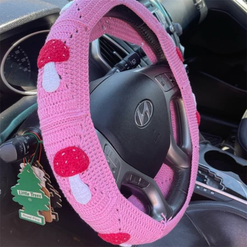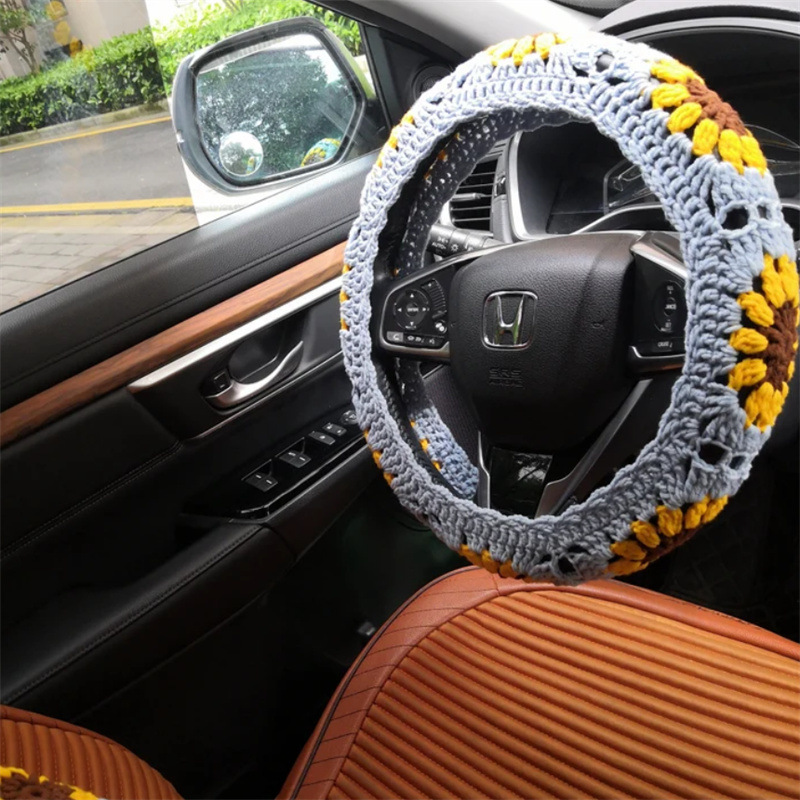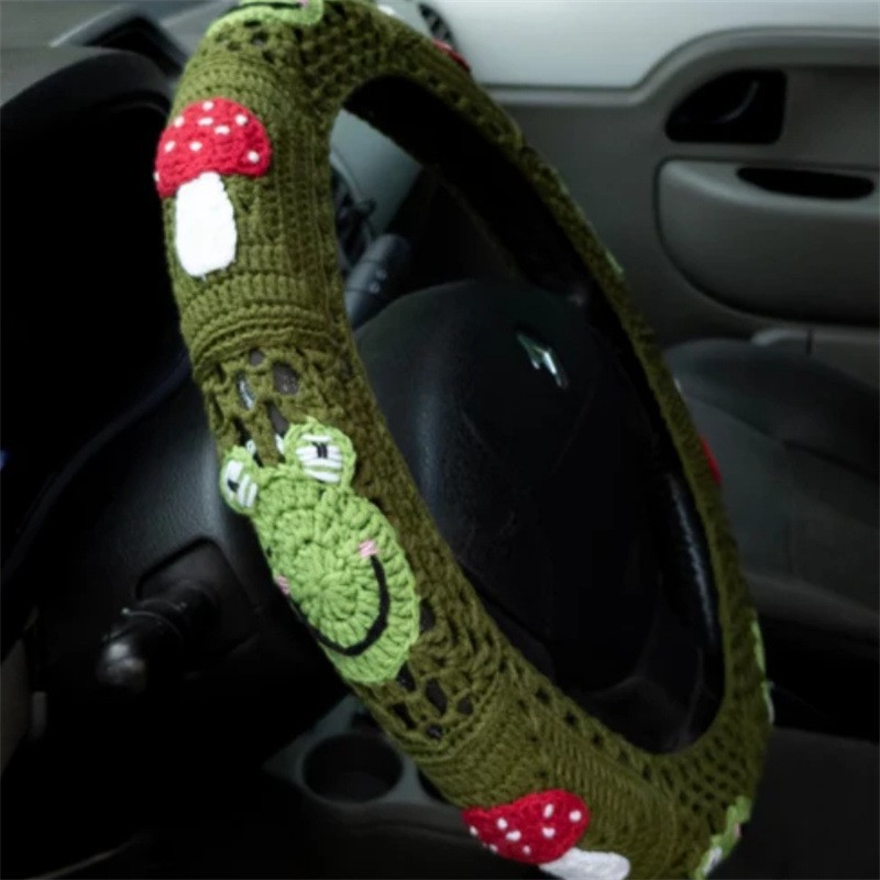 2025 국경 간 신제품 손으로 짠 스티어링 휠 커버 크리 에이 티브 귀여운 보헤미안 스타일 할머니 격자 안전 벨트 커버