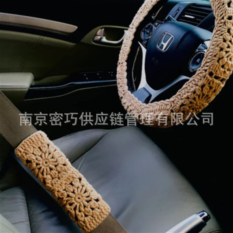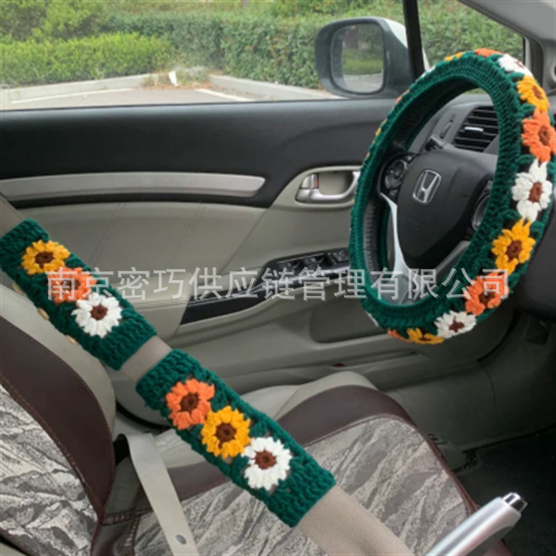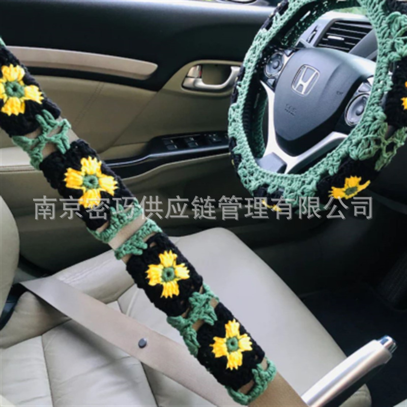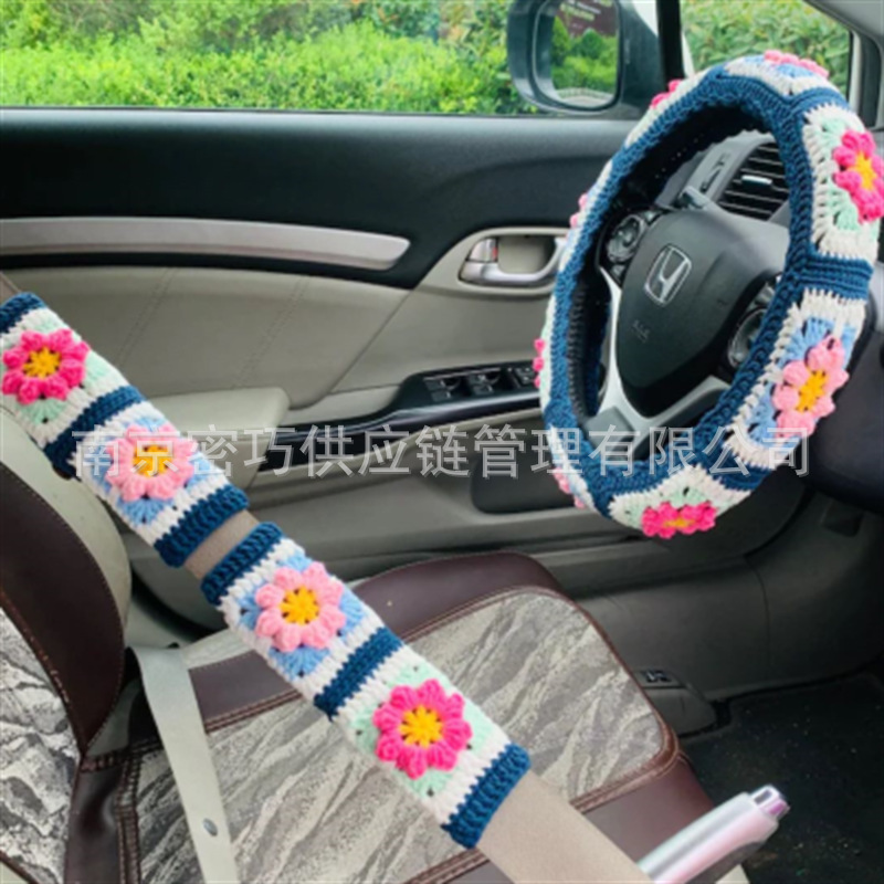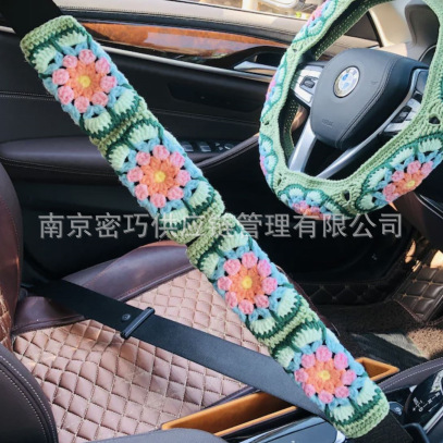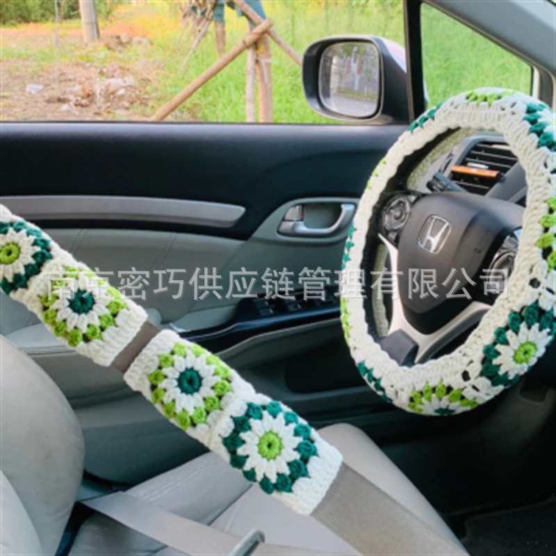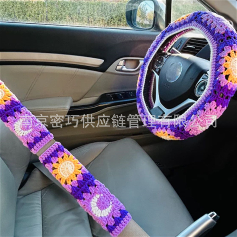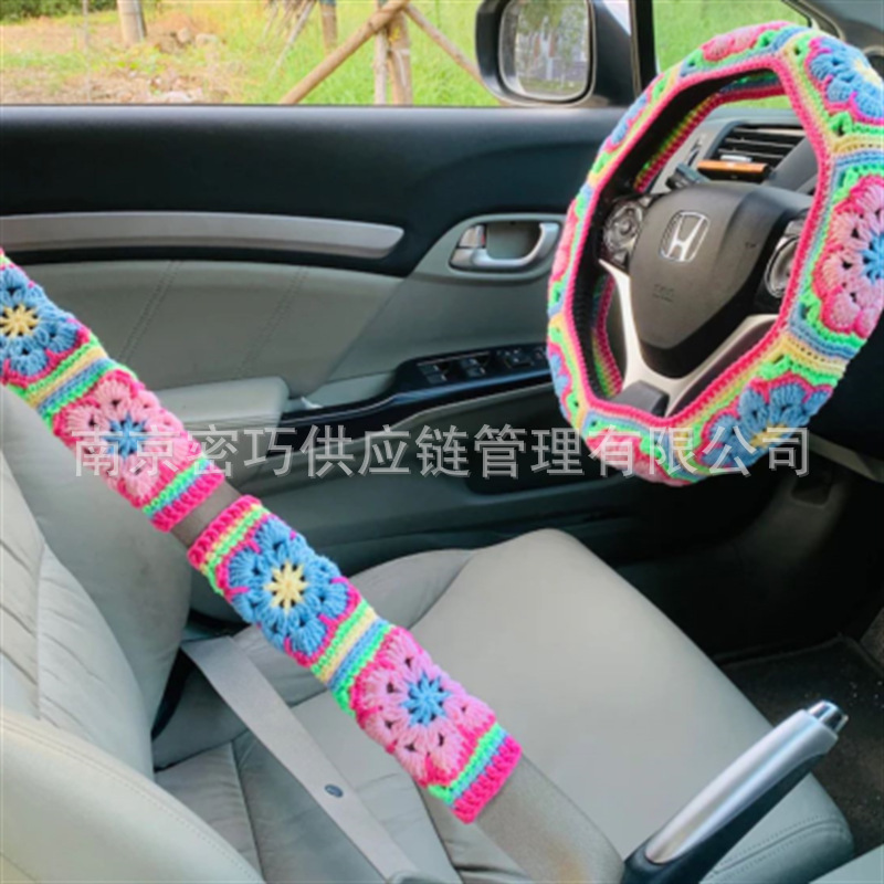 2025 국경 간 신제품 손으로 짠 스티어링 휠 커버 크리 에이 티브 귀여운 보헤미안 스타일 할머니 격자 안전 벨트 커버스토어 가기