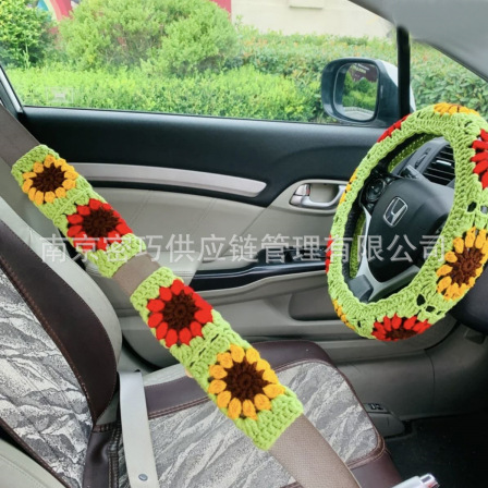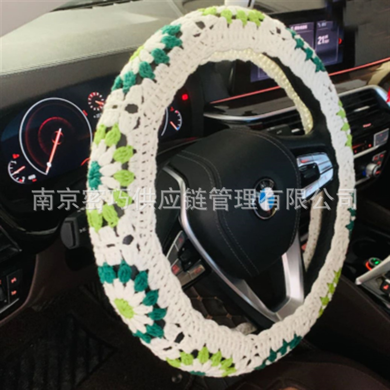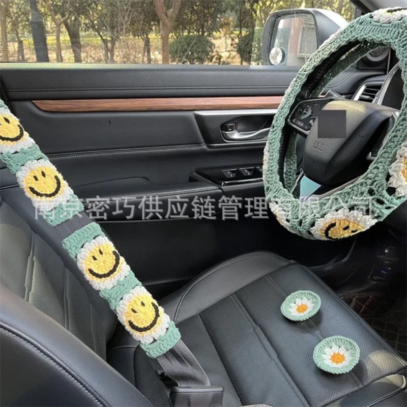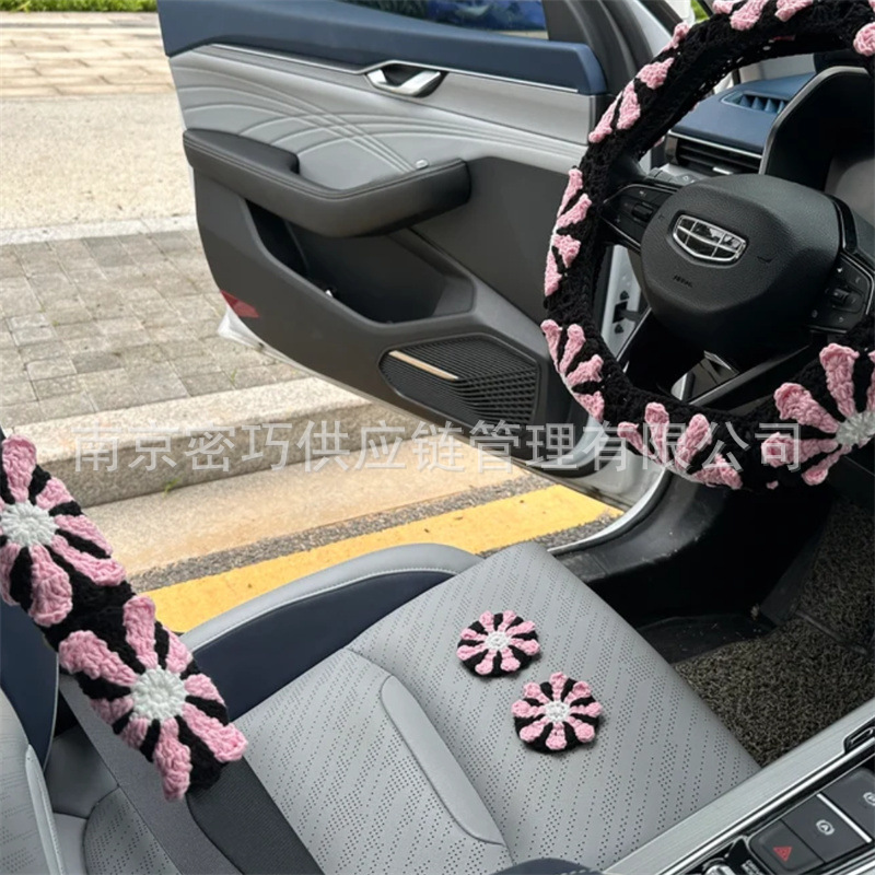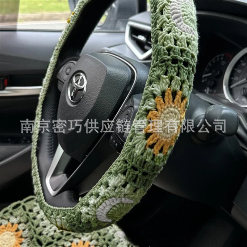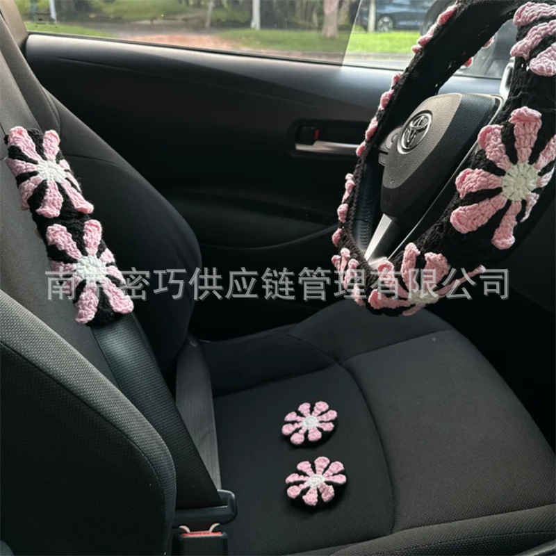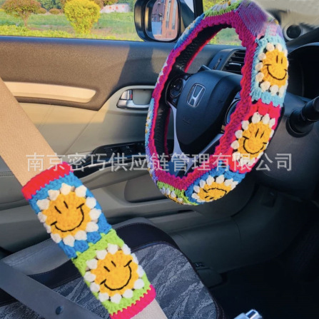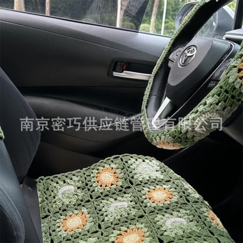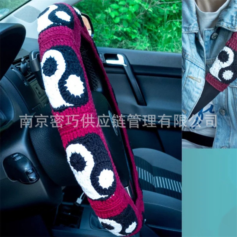 2025 국경 간 신제품 손으로 짠 스티어링 휠 커버 크리 에이 티브 귀여운 보헤미안 스타일 할머니 격자 안전 벨트 커버스토어 가기