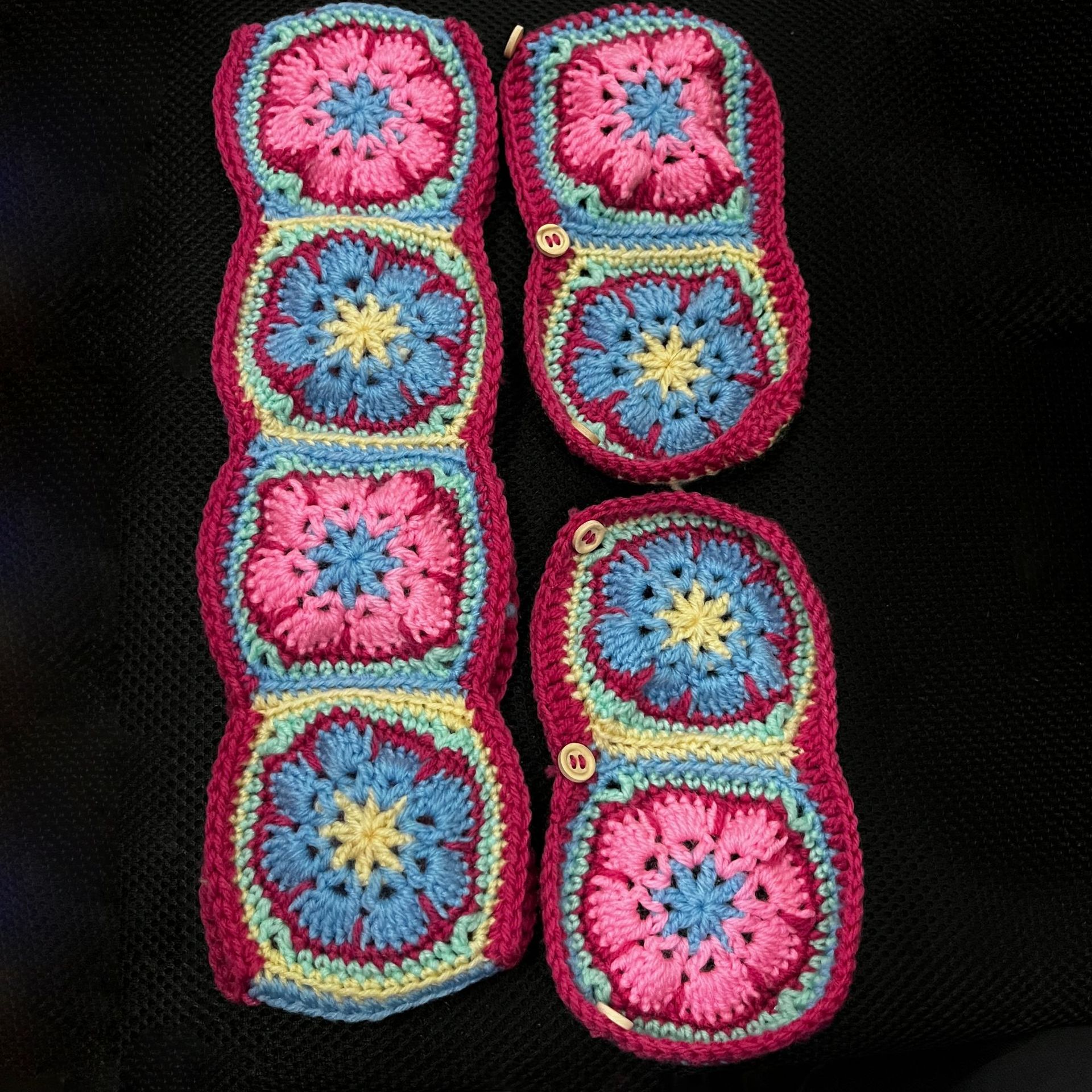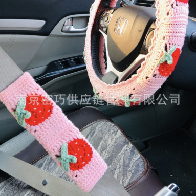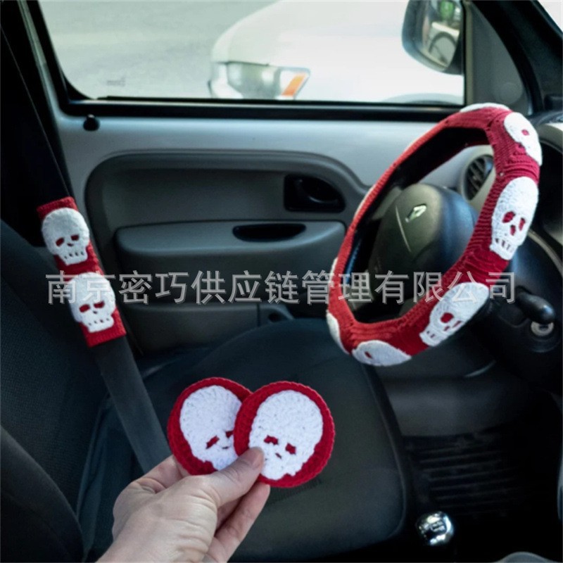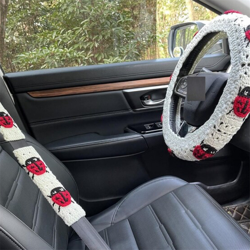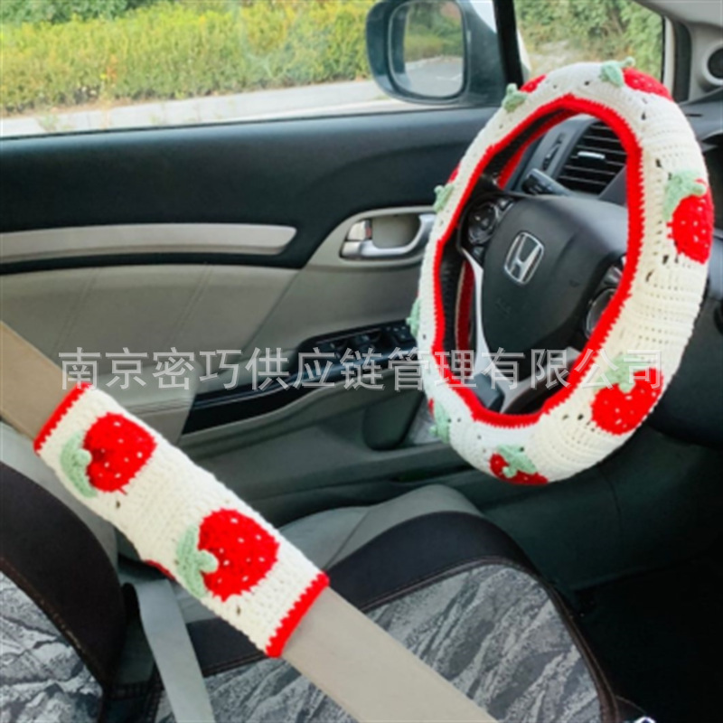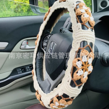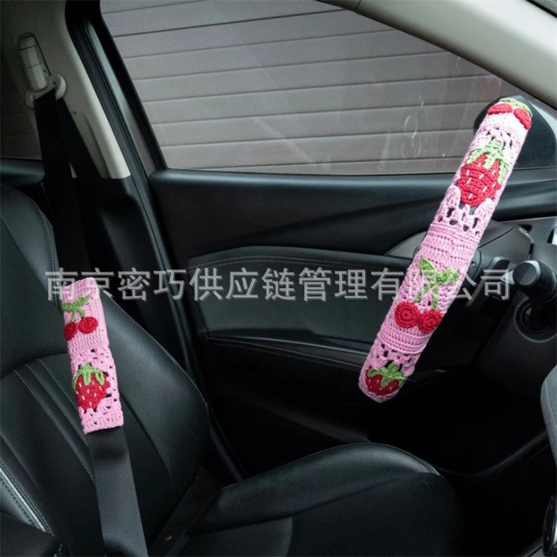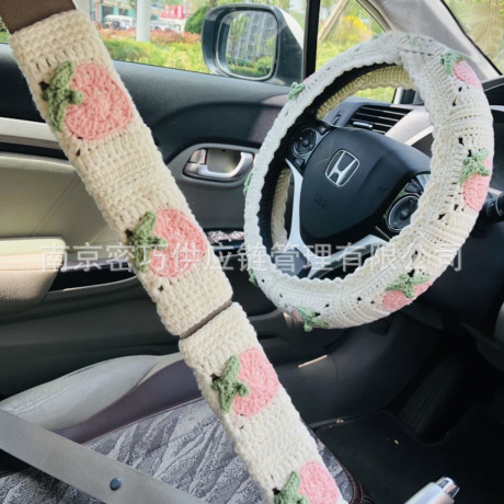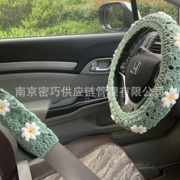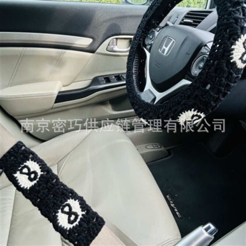 2025 국경 간 신제품 손으로 짠 스티어링 휠 커버 크리 에이 티브 귀여운 보헤미안 스타일 할머니 격자 안전 벨트 커버스토어 가기