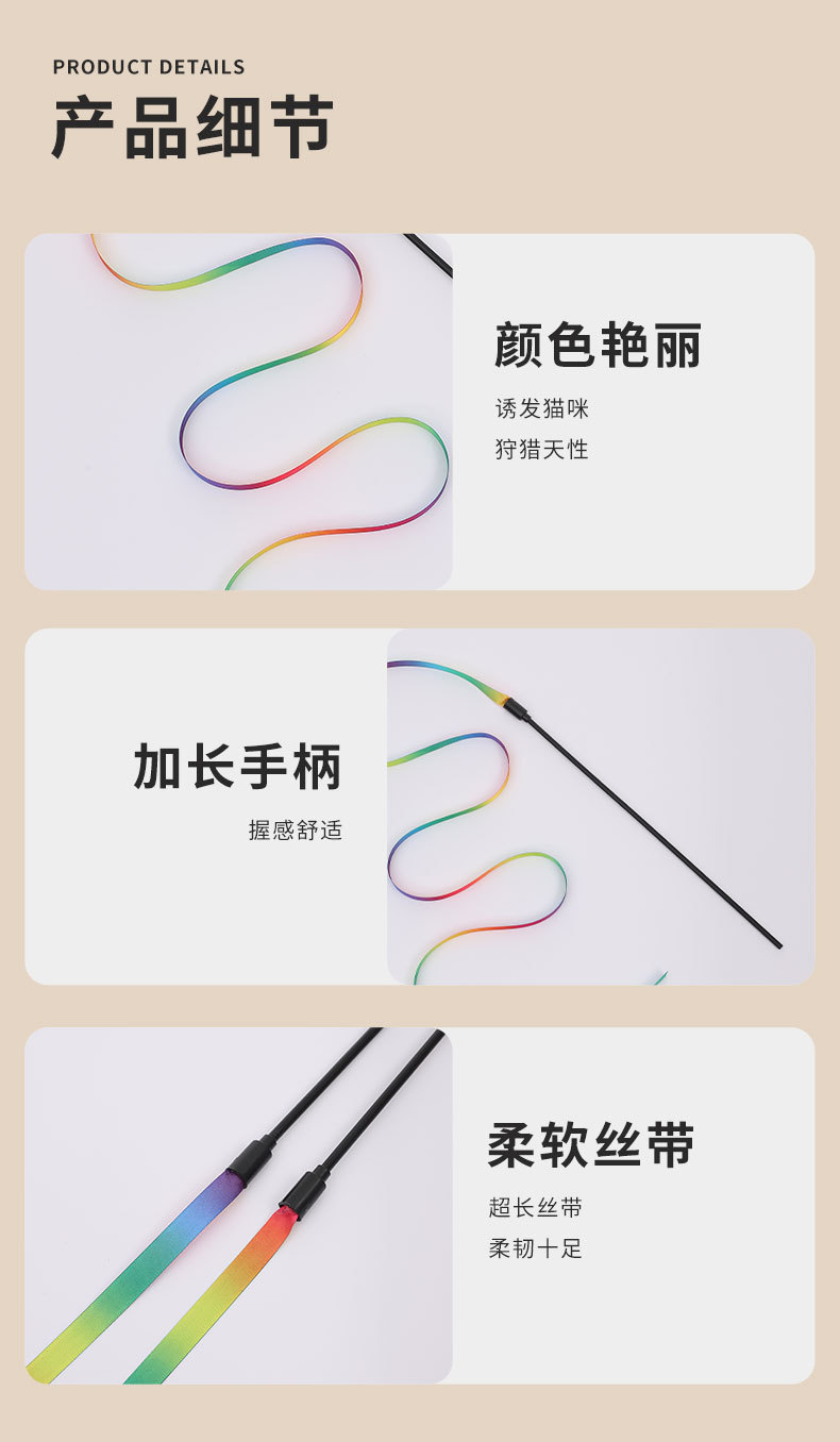 • 테이 고양이 스틱 무지개 웨빙 60cm