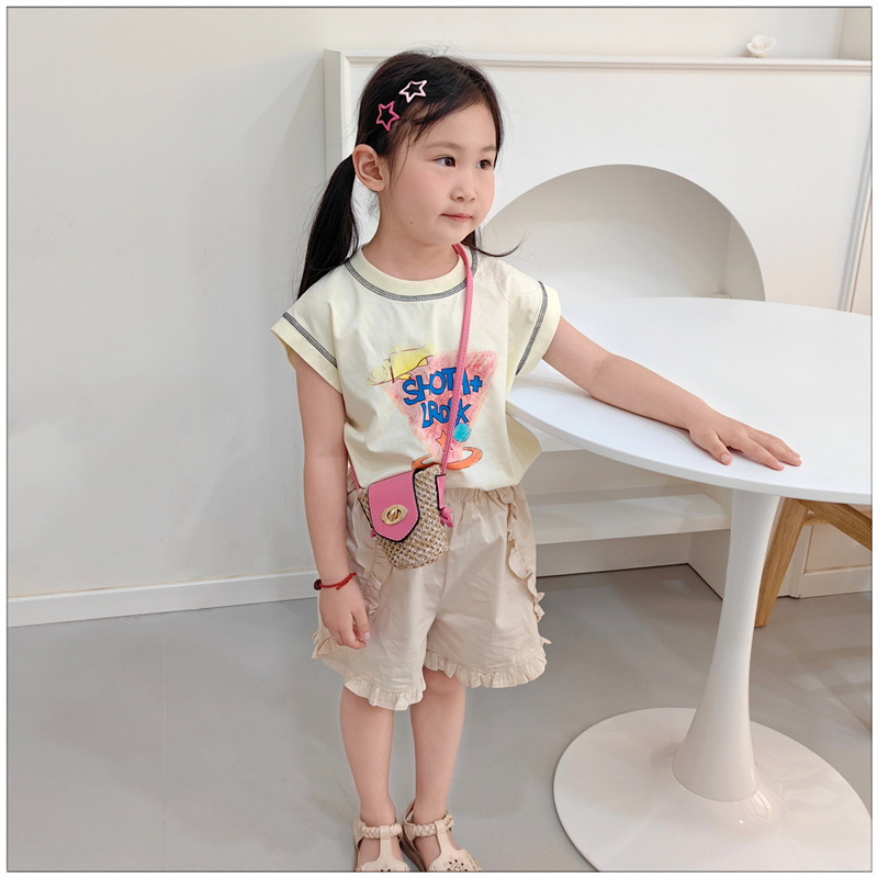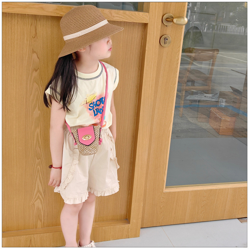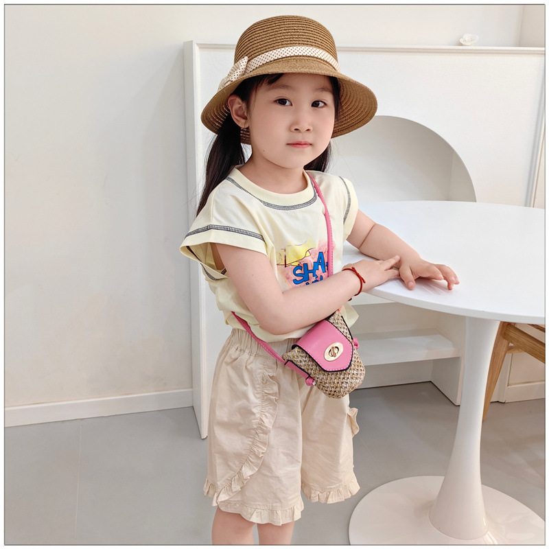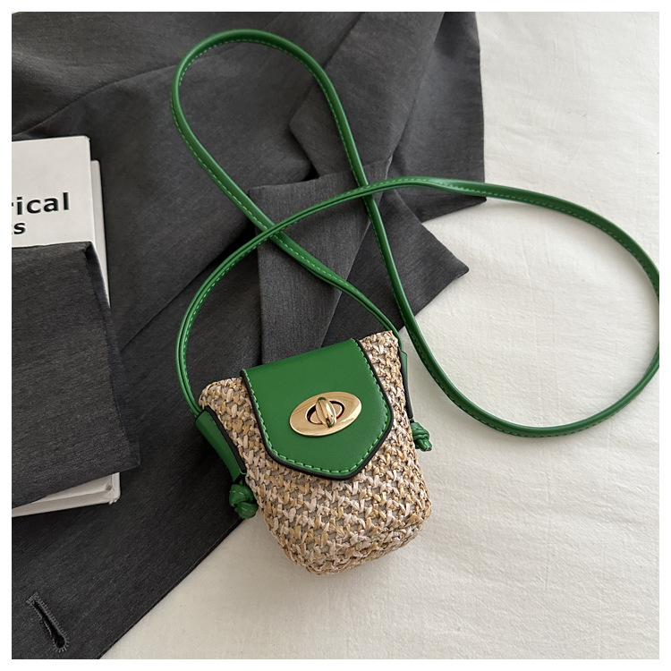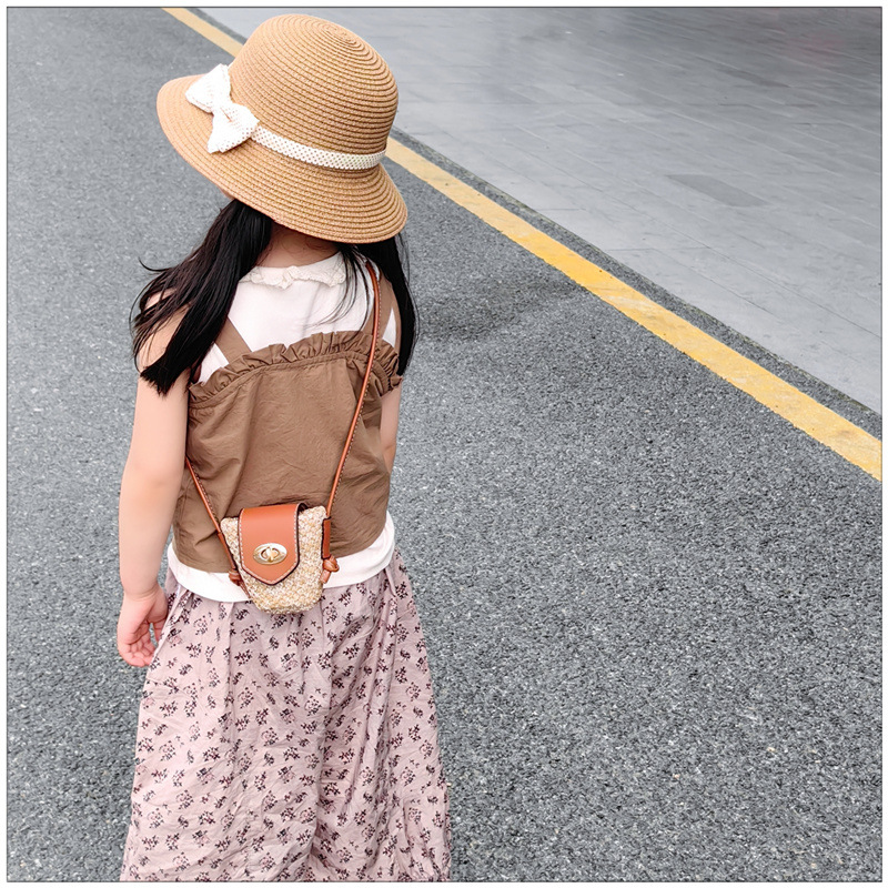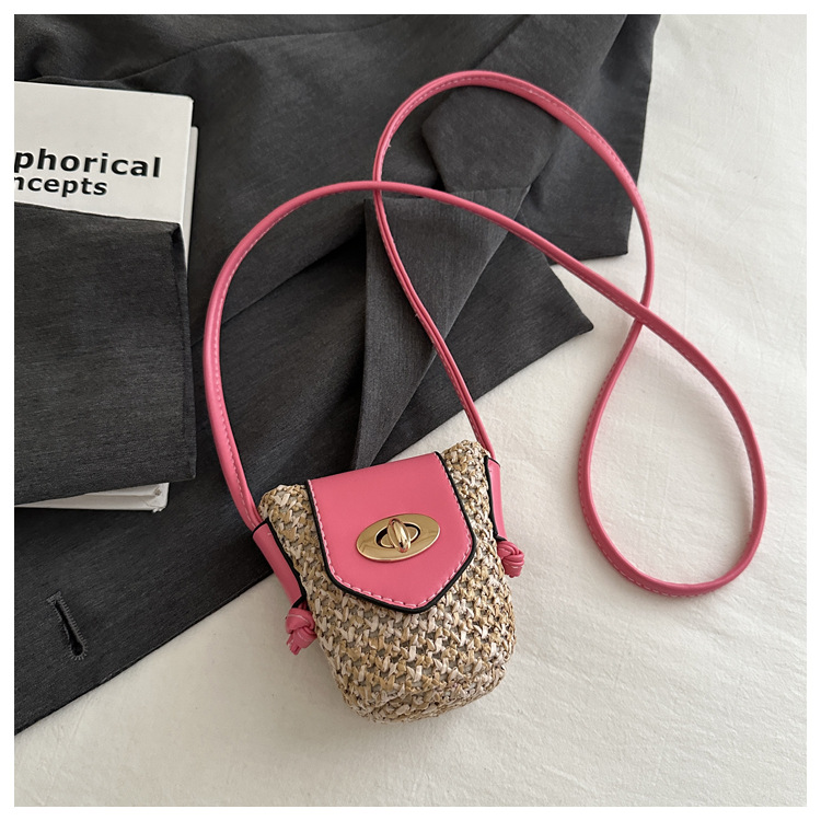 빈티지 짠 소녀의 어깨 가방 스타일리스트 미니 키즈 크로스 바디 백 2024 여름 새로운 어린이 밀짚 짠 가방