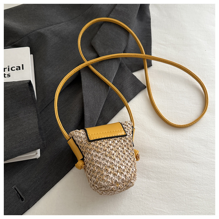 빈티지 짠 소녀의 어깨 가방 스타일리스트 미니 키즈 크로스 바디 백 2024 여름 새로운 어린이 밀짚 짠 가방스토어 가기