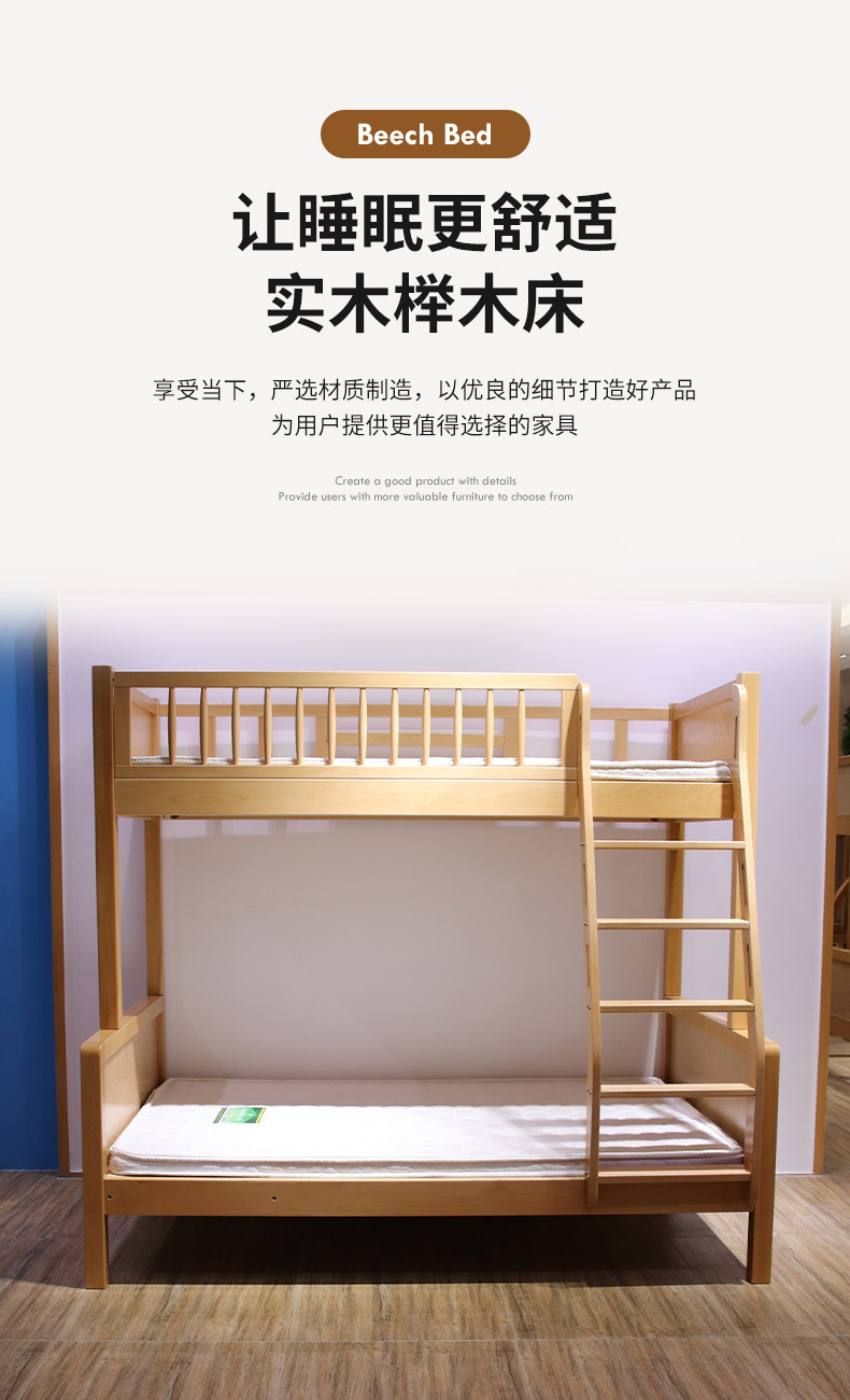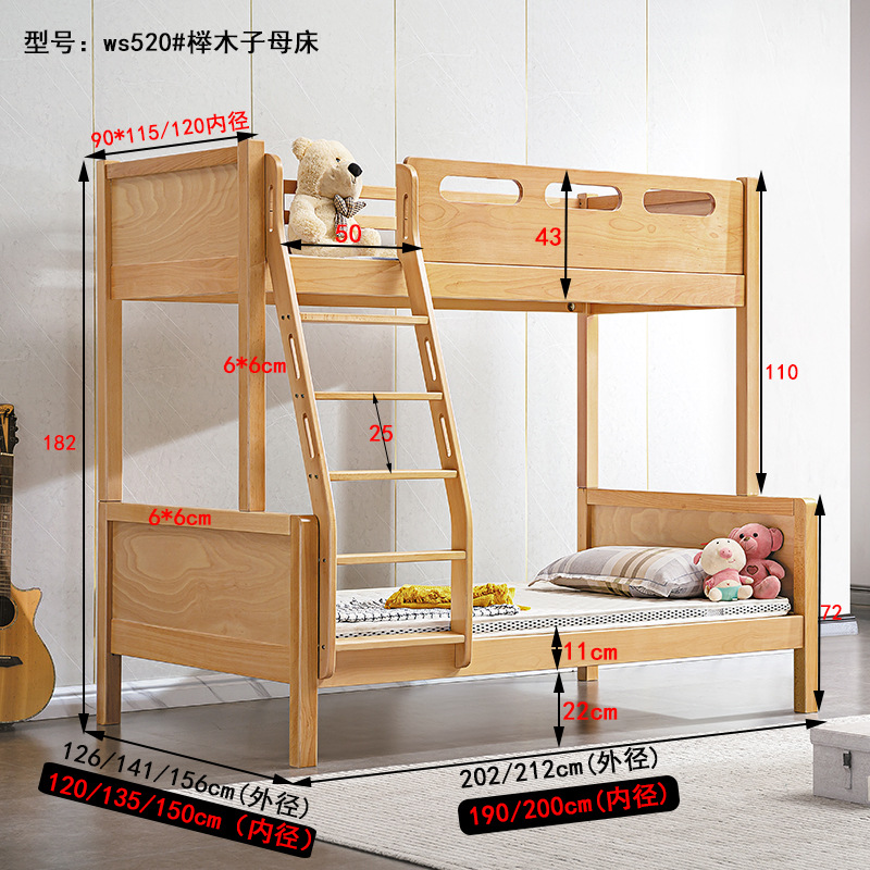 Hua Shuai 가구 모든 단단한 나무 너도밤 나무 침대 성인 높고 낮은 침대 안개 모형 및 어린이와 청소년을위한 Tenon Bunk 침대스토어 가기