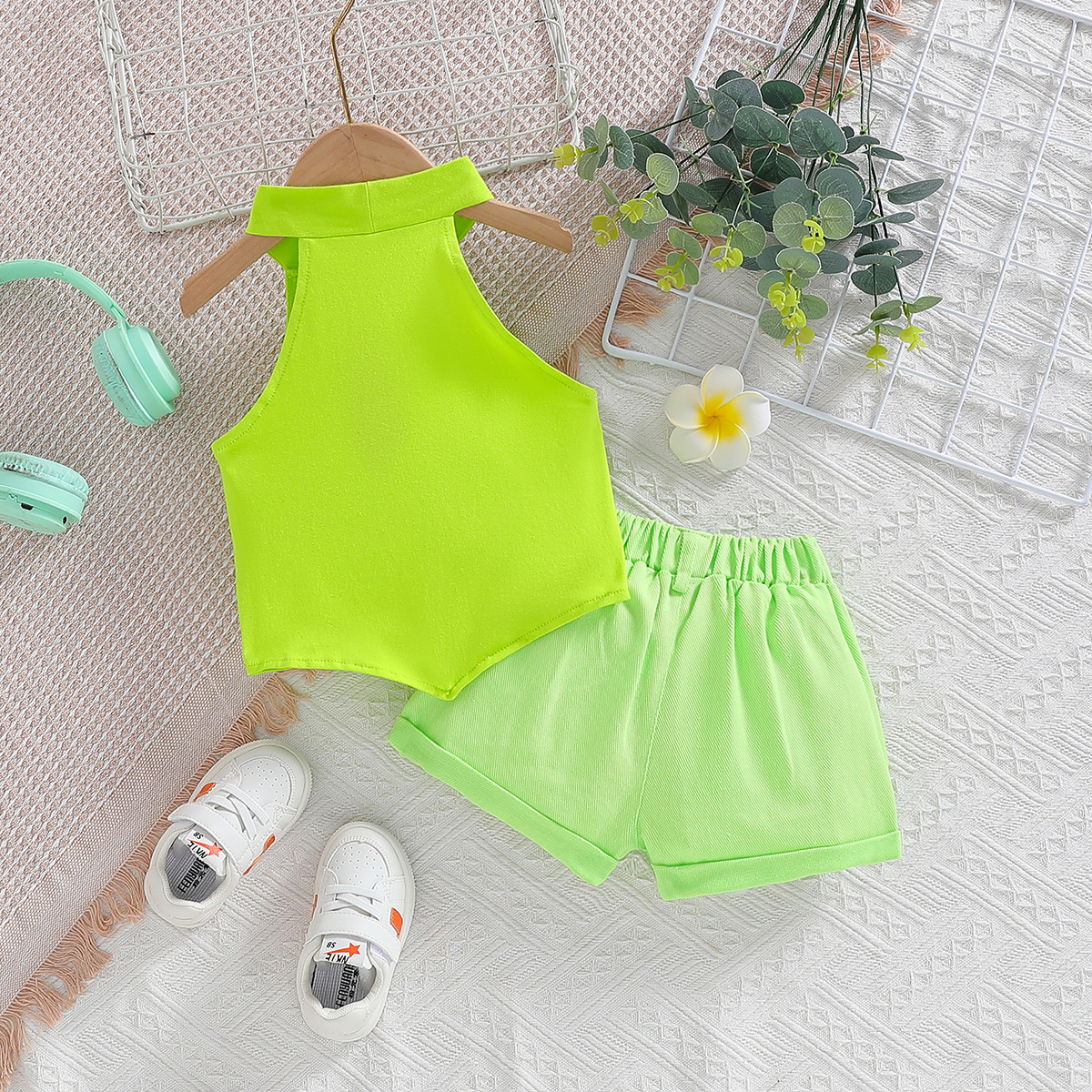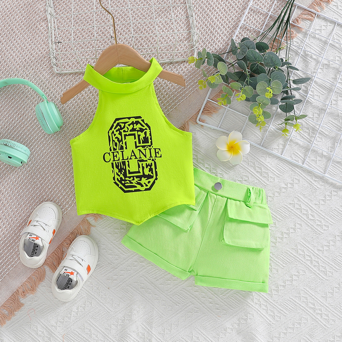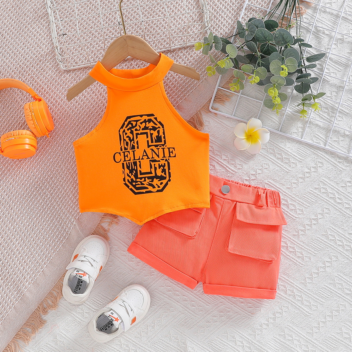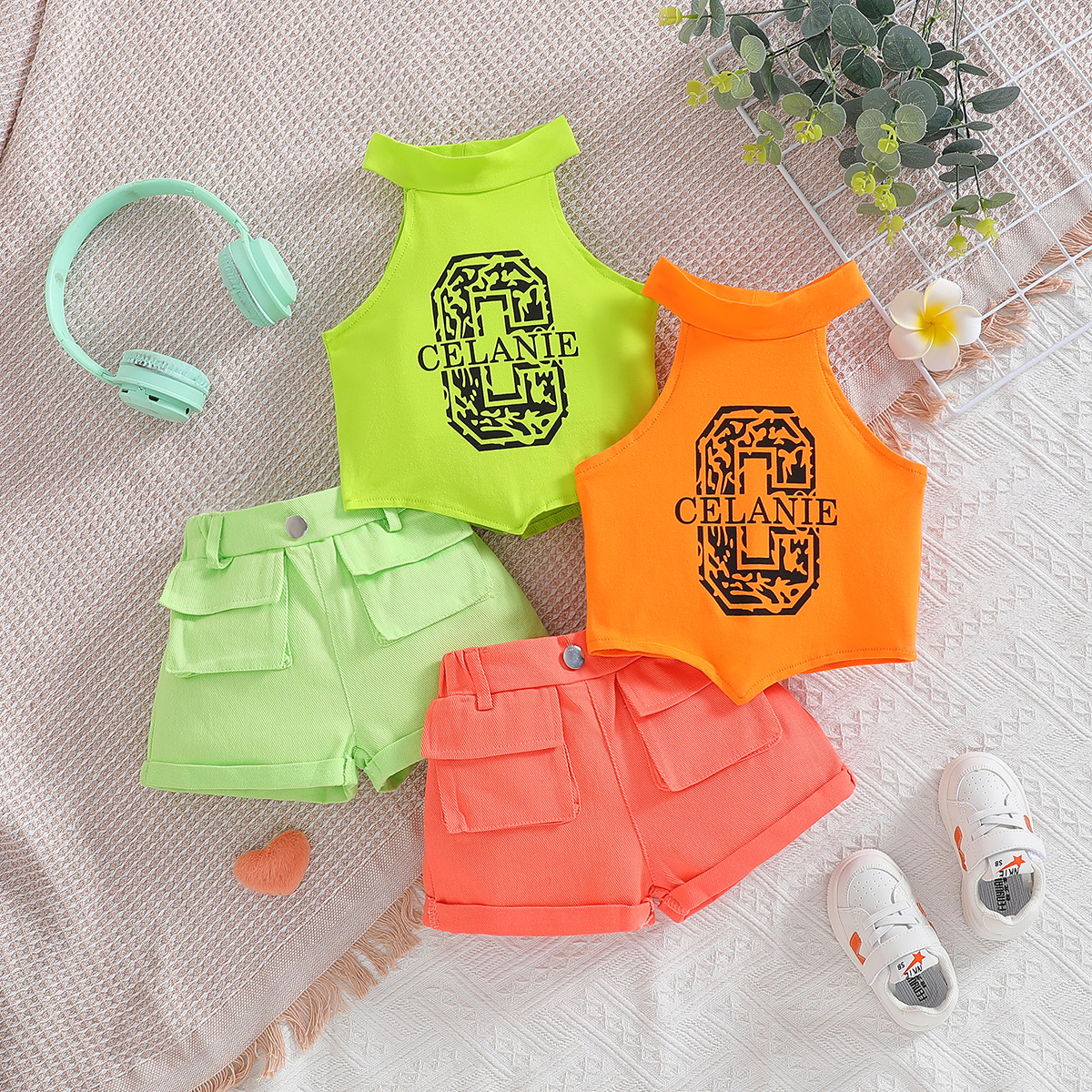 국경 간 아동복 2024 여름 소녀 세트 유럽과 미국 스타일 패션 걸스 민소매 조끼 데님 반바지 투피스 세트