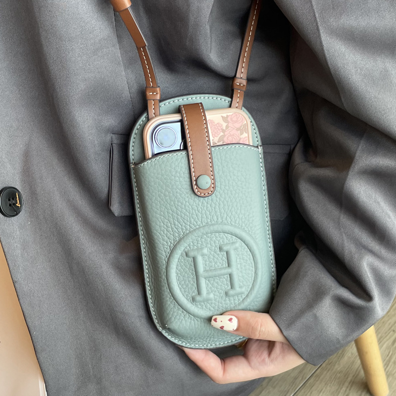유럽풍 레트로 스타일 휴대폰 가방, 1등급 소가죽 크로스백, 출퇴근용 학생 다용도 숄더백, 여성용 다이아몬드 패턴