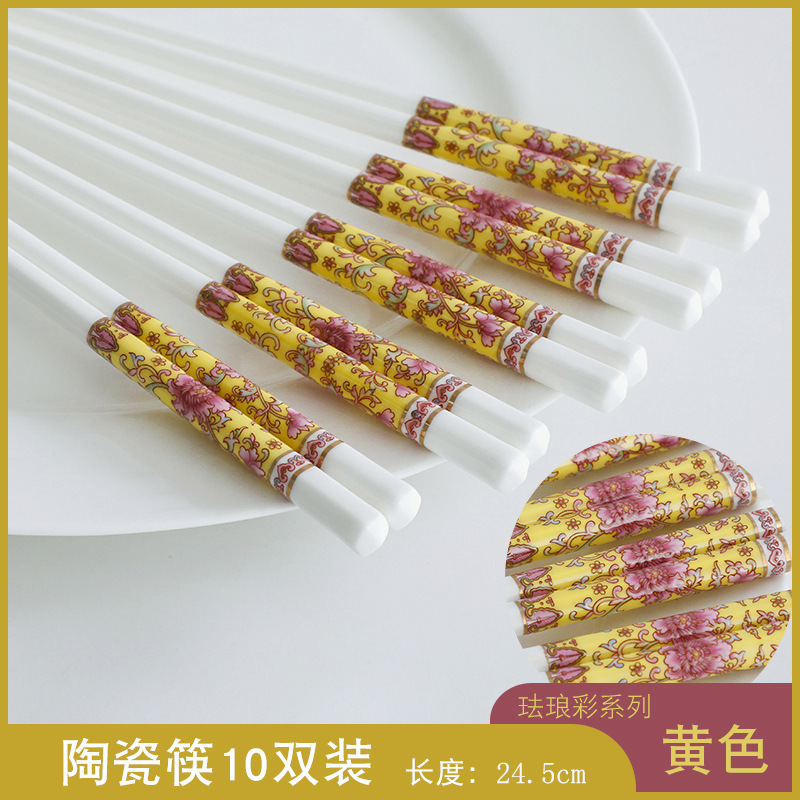 • 에나멜 세라믹 젓가락 10 쌍-황제 노란색