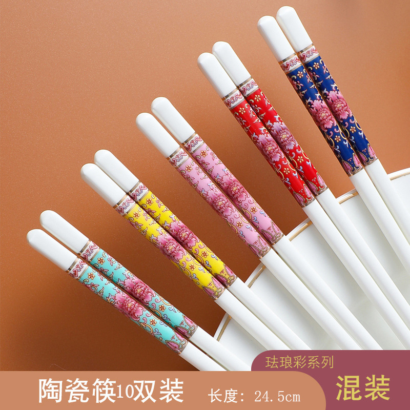 • 에나멜 컬러 세라믹 젓가락 10 쌍 혼합