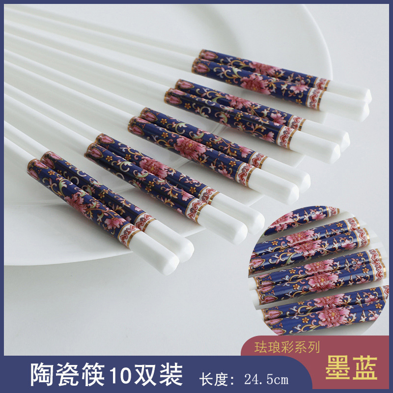 • 에나멜 컬러 세라믹 젓가락 10 쌍-사파이어 블루