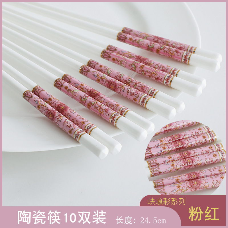 • 에나멜 컬러 세라믹 젓가락 10 쌍-루즈 파우더