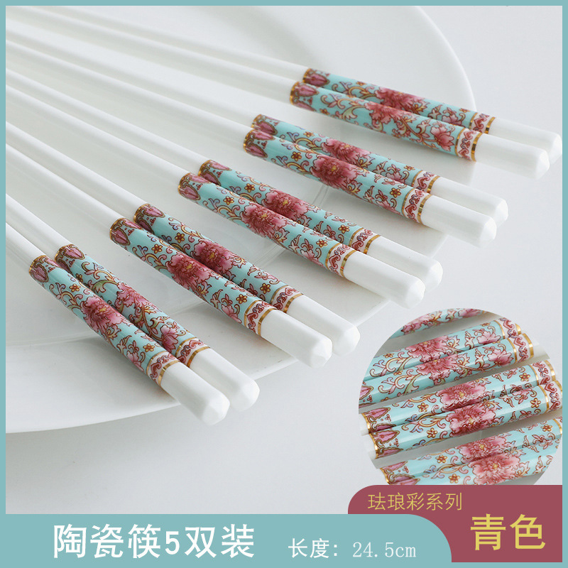 • 에나멜 세라믹 젓가락 5 쌍-사파이어 블루