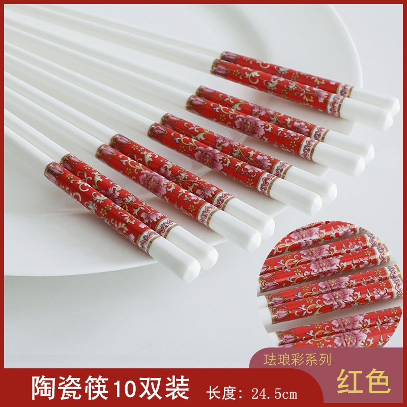 • 에나멜 컬러 세라믹 젓가락 10 쌍-중국 빨강