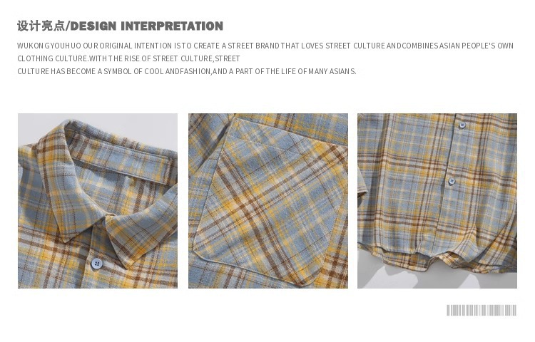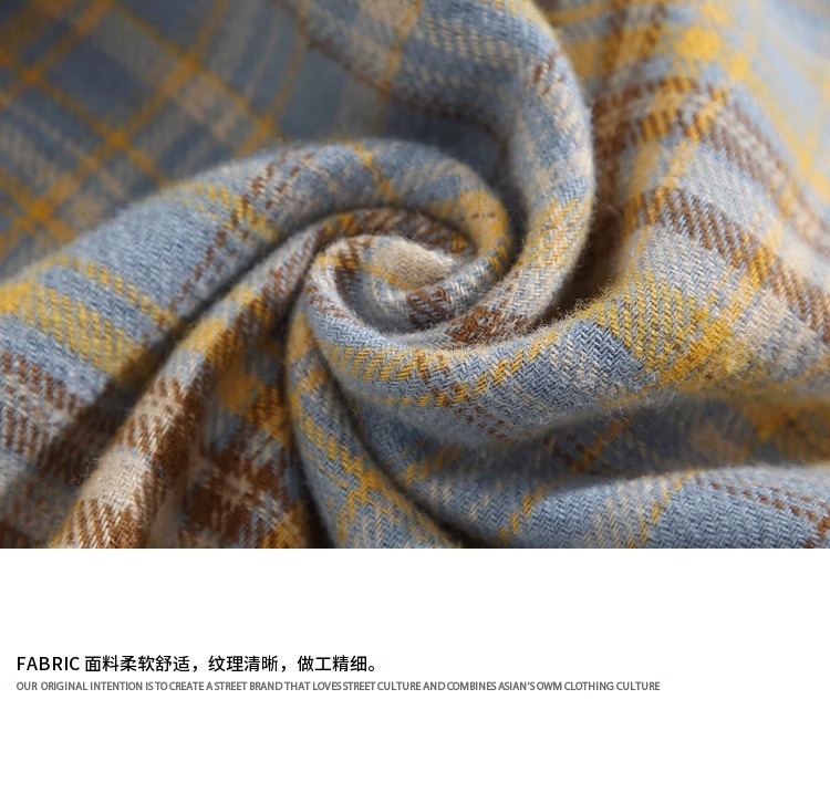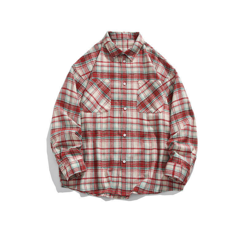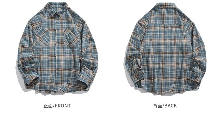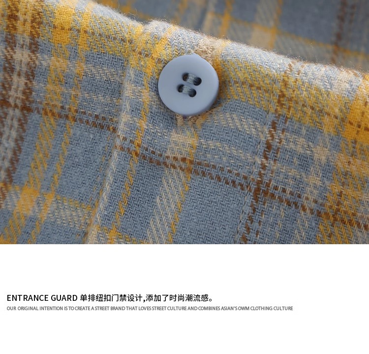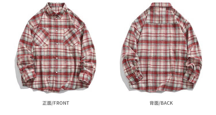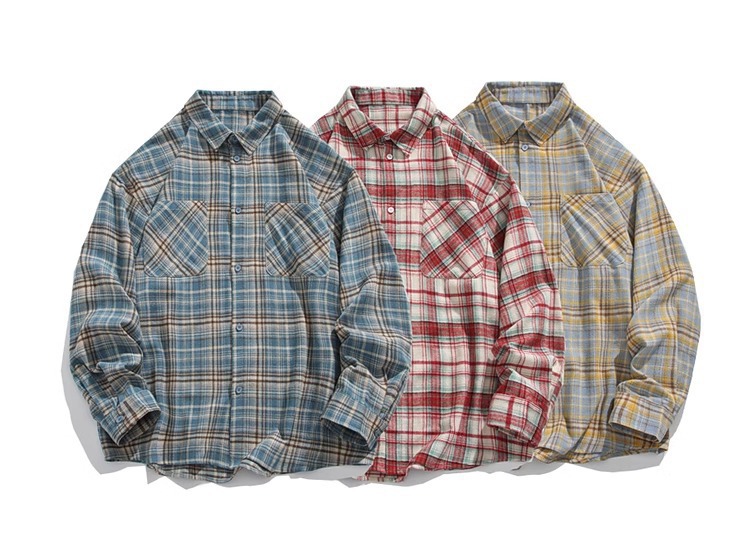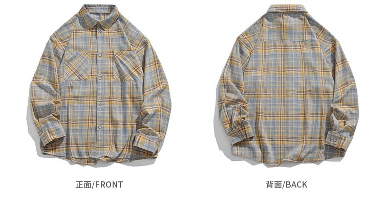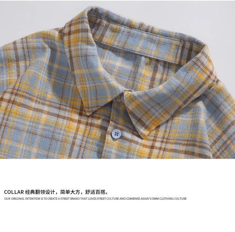 봄과 가을 2024 새로운 격자 무늬 긴 소매 셔츠 옷깃 레트로 느슨한 커플 캐주얼 셔츠 남성과 여성의 트렌드스토어 가기