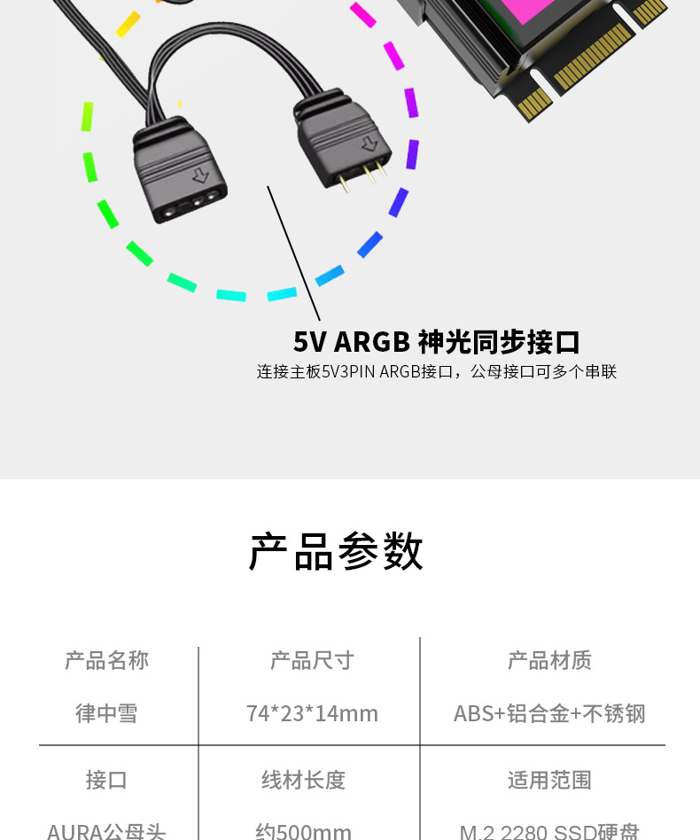 YICOBEILA 법 눈 m2 솔리드 스테이트 하드 디스크 냉각 조끼 ARGB 라이트 바 신 동기화 컴퓨터 액세서리