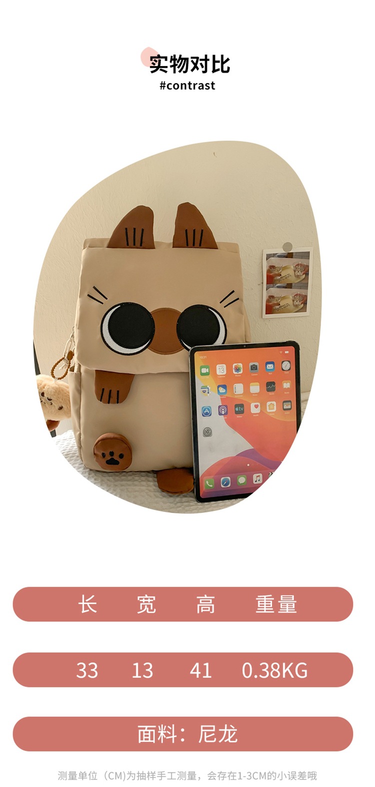 한국식 새 도착 스쿨백 초등학생용 경량 대용량 배낭 3 ~ 6 학년 못생긴 귀여운 고양이 배낭