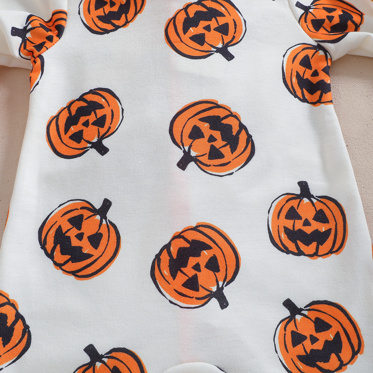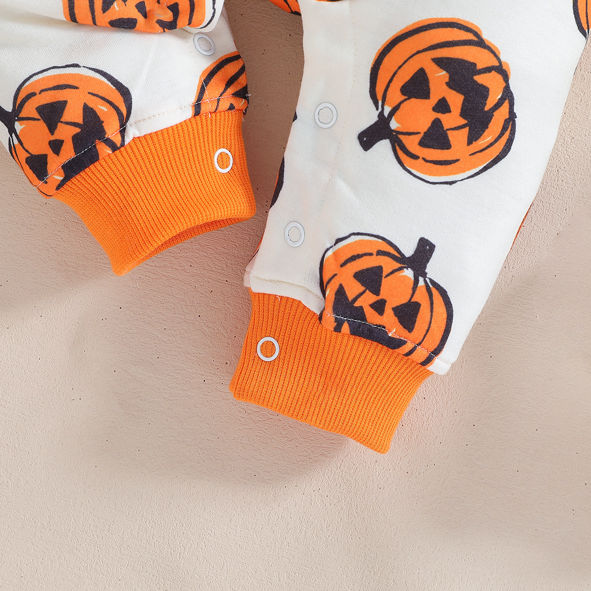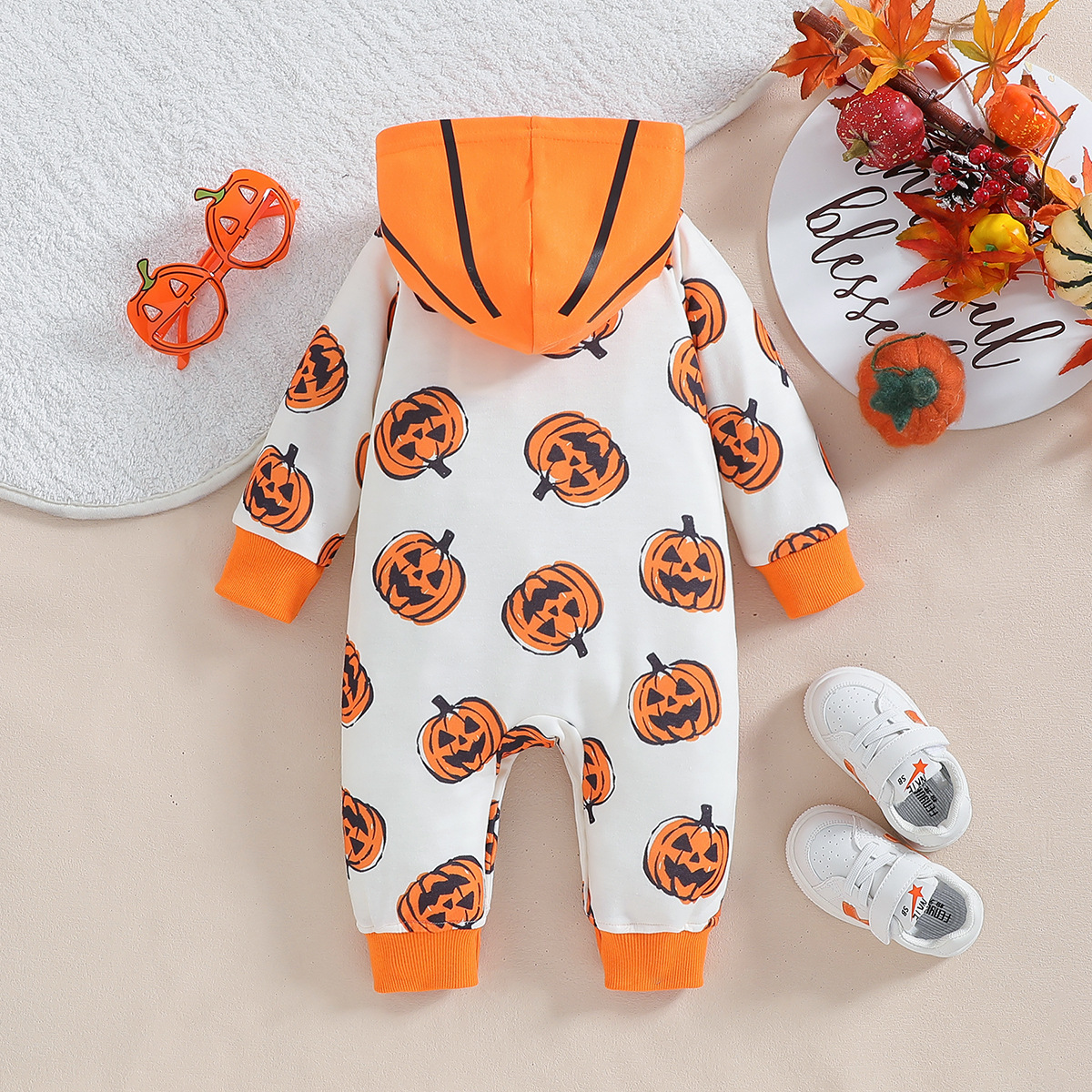 해외 무역 아동복 할로윈 아기 점프수트 가을 신상 호박 긴팔 후드 남아 롬퍼 유아복