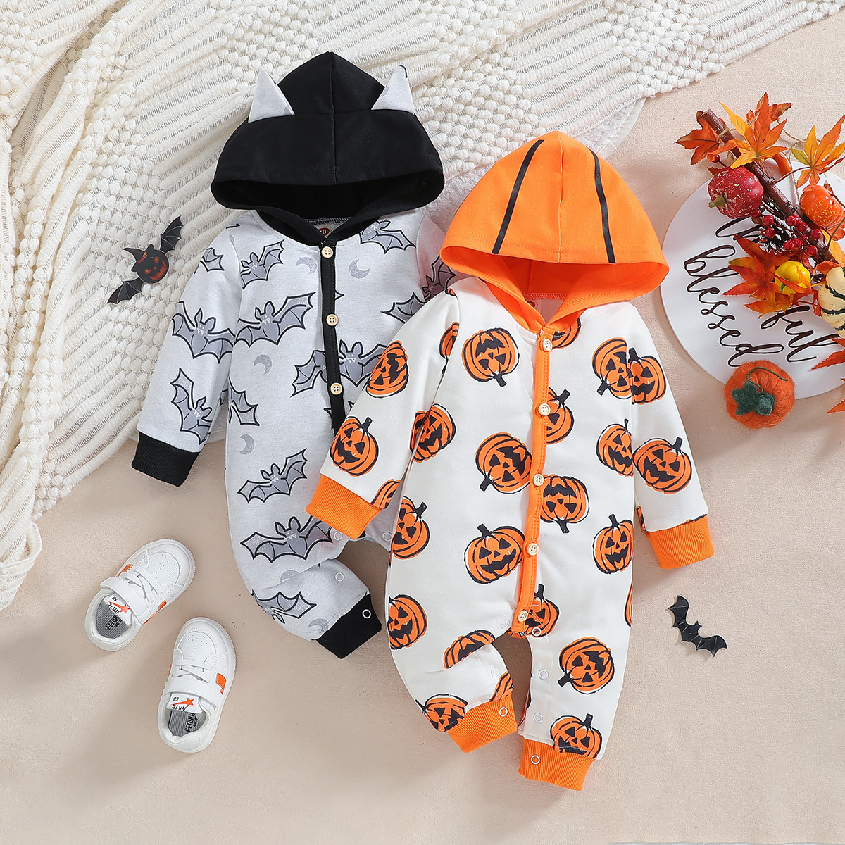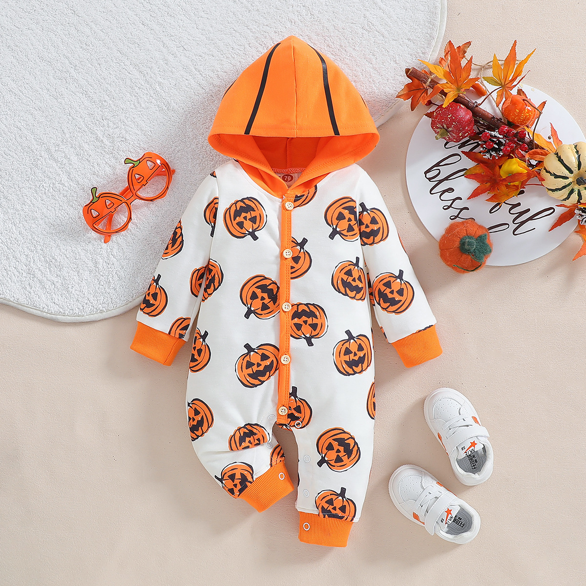 해외 무역 아동복 할로윈 아기 점프수트 가을 신상 호박 긴팔 후드 남아 롬퍼 유아복스토어 가기