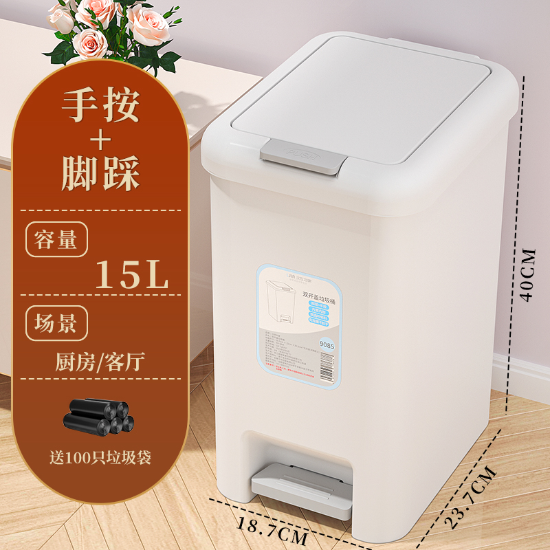 • 【15L灰】脚踩+手按【厨房/客厅】+100只垃圾袋✦