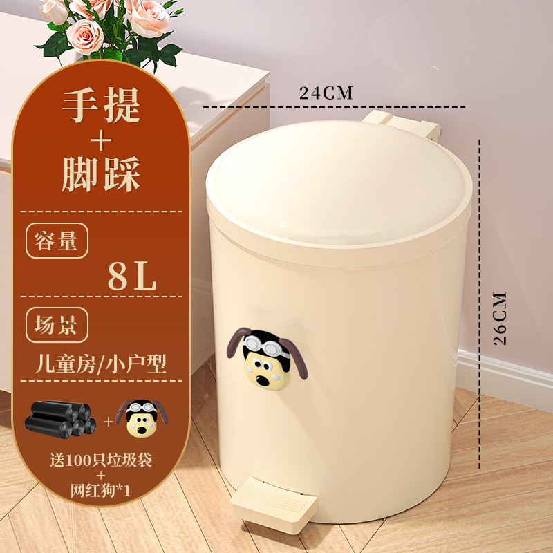 • 8L奶油白【脚踩+手提】含内桶【儿童房/小户型】+100只✦