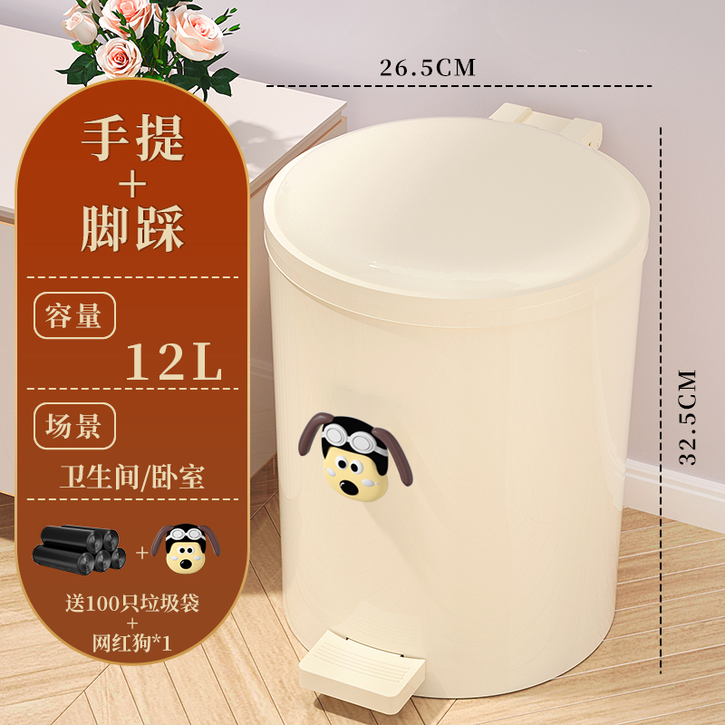 • 12L奶油白【脚踩+手提】含内桶【卫生间/卧室】+100只✦