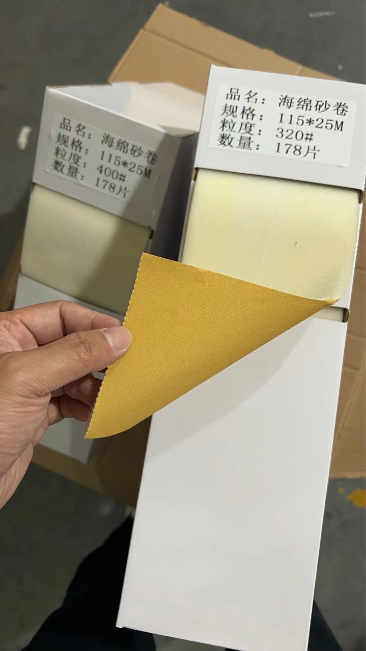 국경 중립 손으로 찢어진 스폰지 사포 롤 115mm x 25m 자동차 드라이 그라인딩 뷰티 부착 광택 페인트