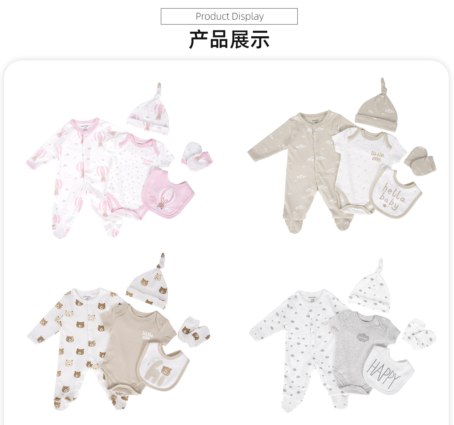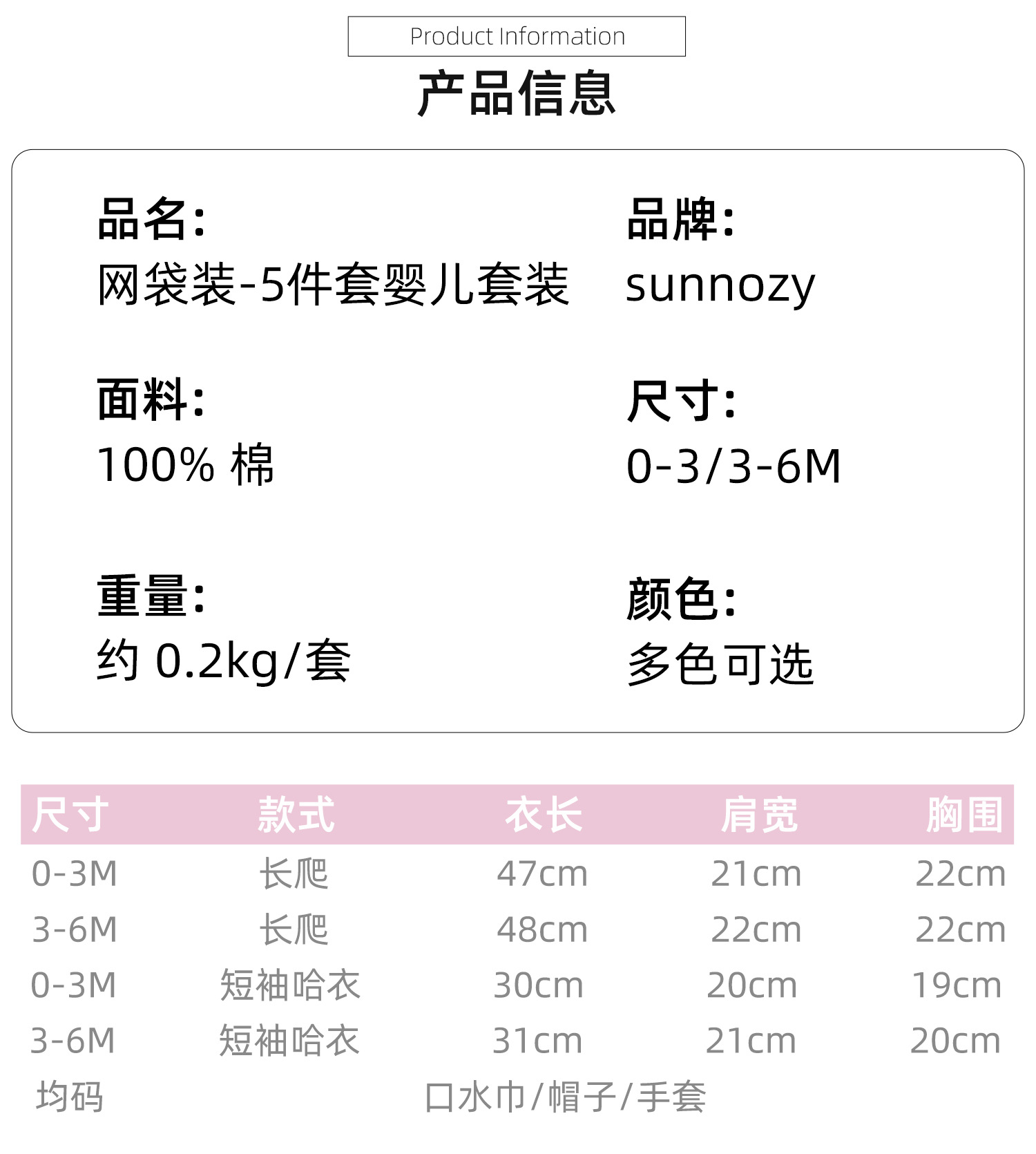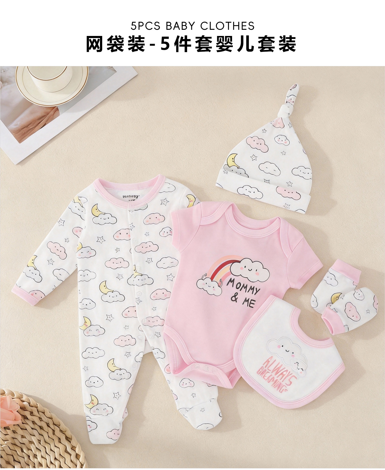 100% 순면 아기옷 메쉬백 5종 세트 신생아 만월 아기 선물 바디슈트 반바지 세트