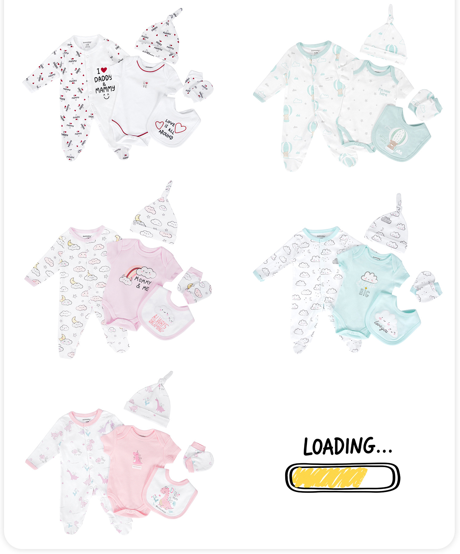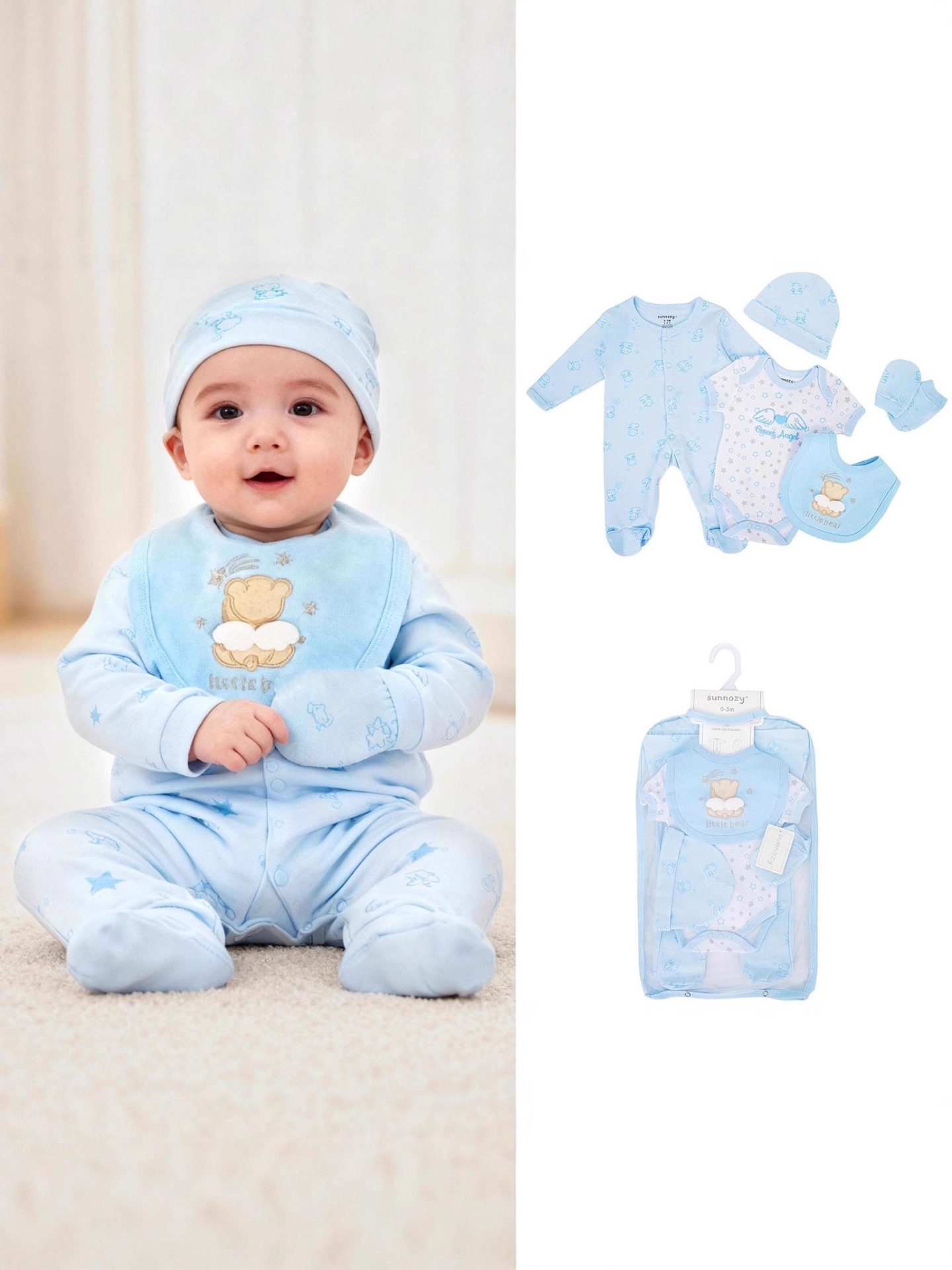 100% 순면 아기옷 메쉬백 5종 세트 신생아 만월 아기 선물 바디슈트 반바지 세트스토어 가기